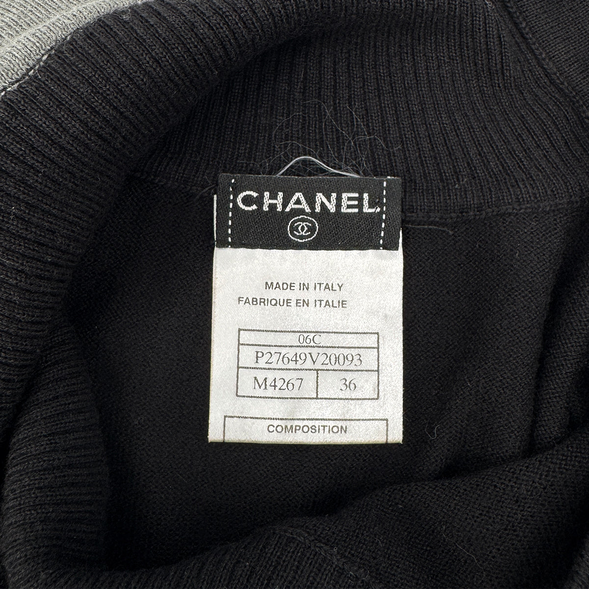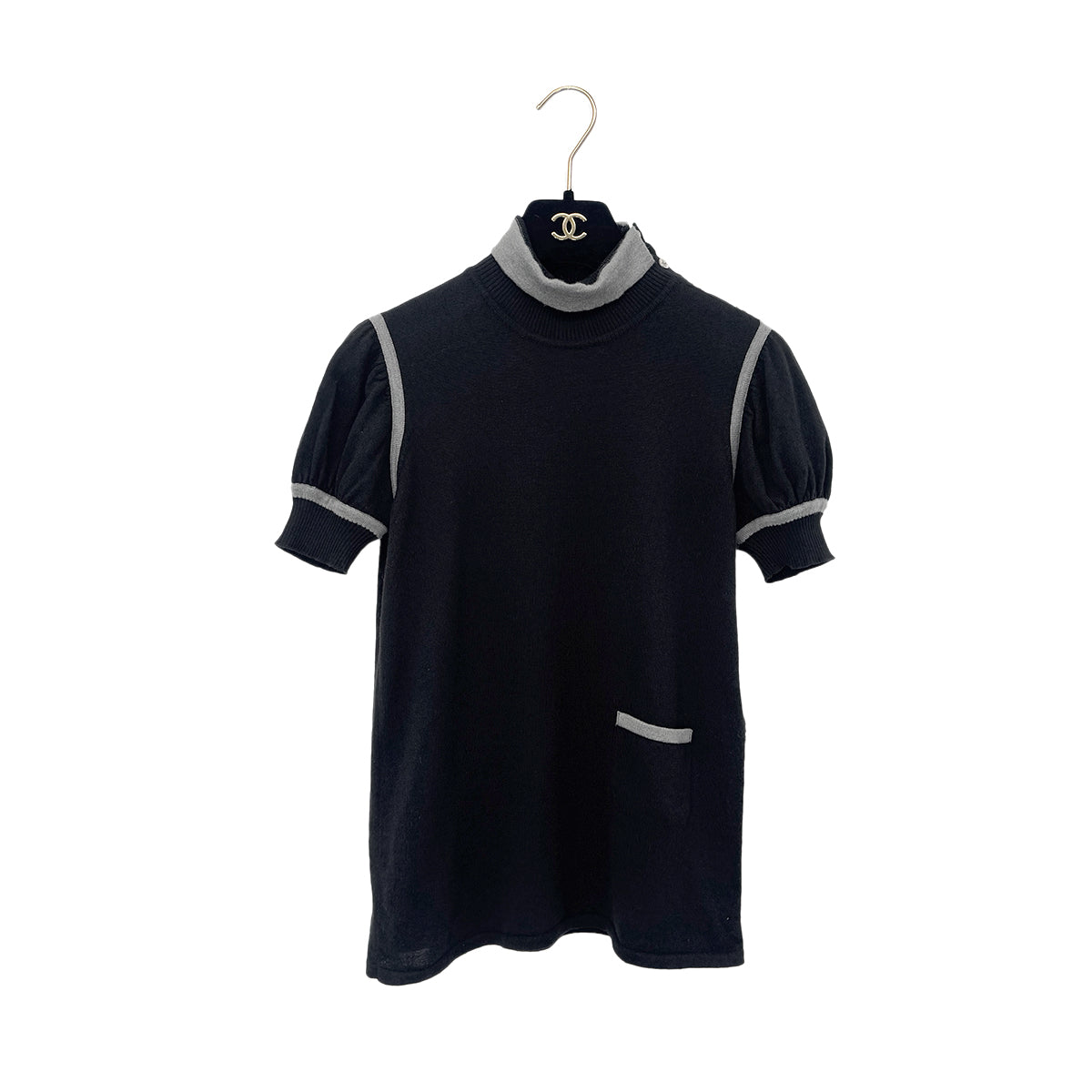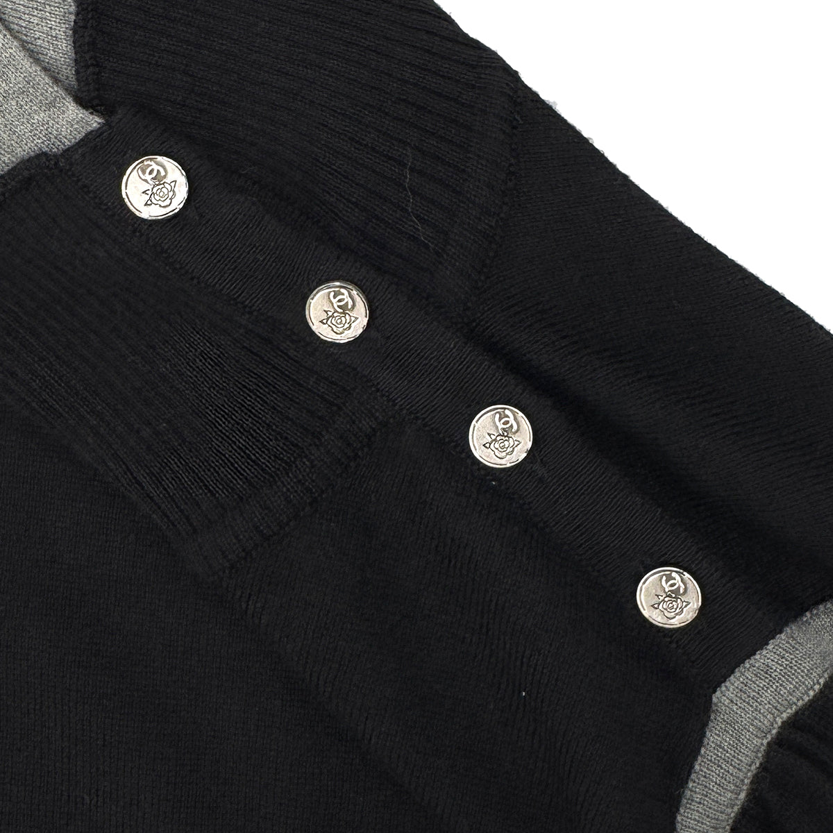 CHANEL TURTLENECK TOPS COCO CAMELLIA BUTTON BLACK CASHMERE 36 06C RTW 90284584