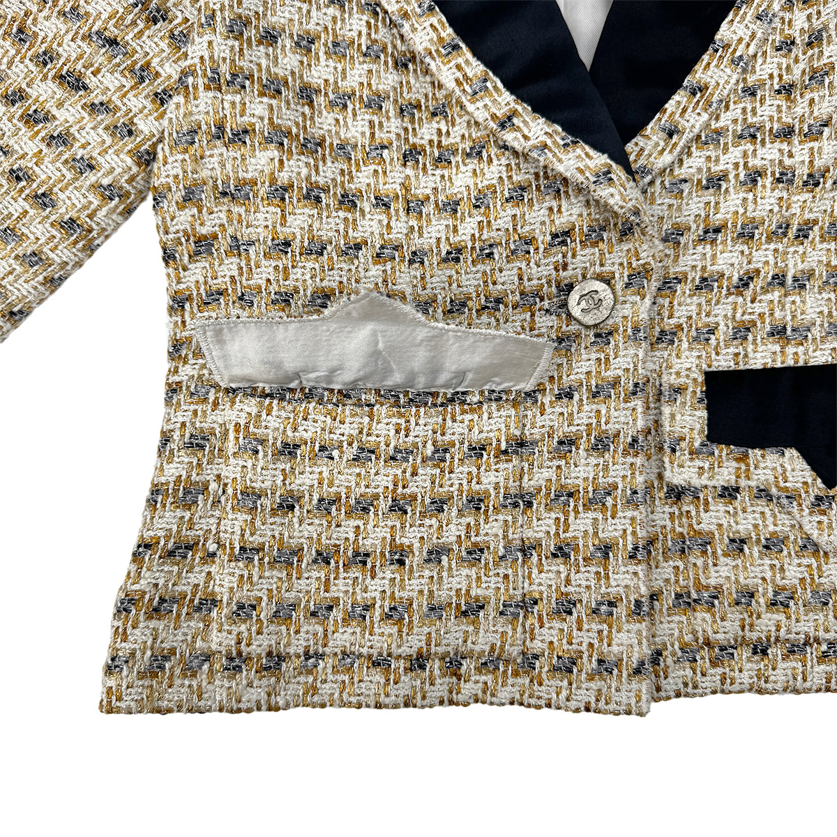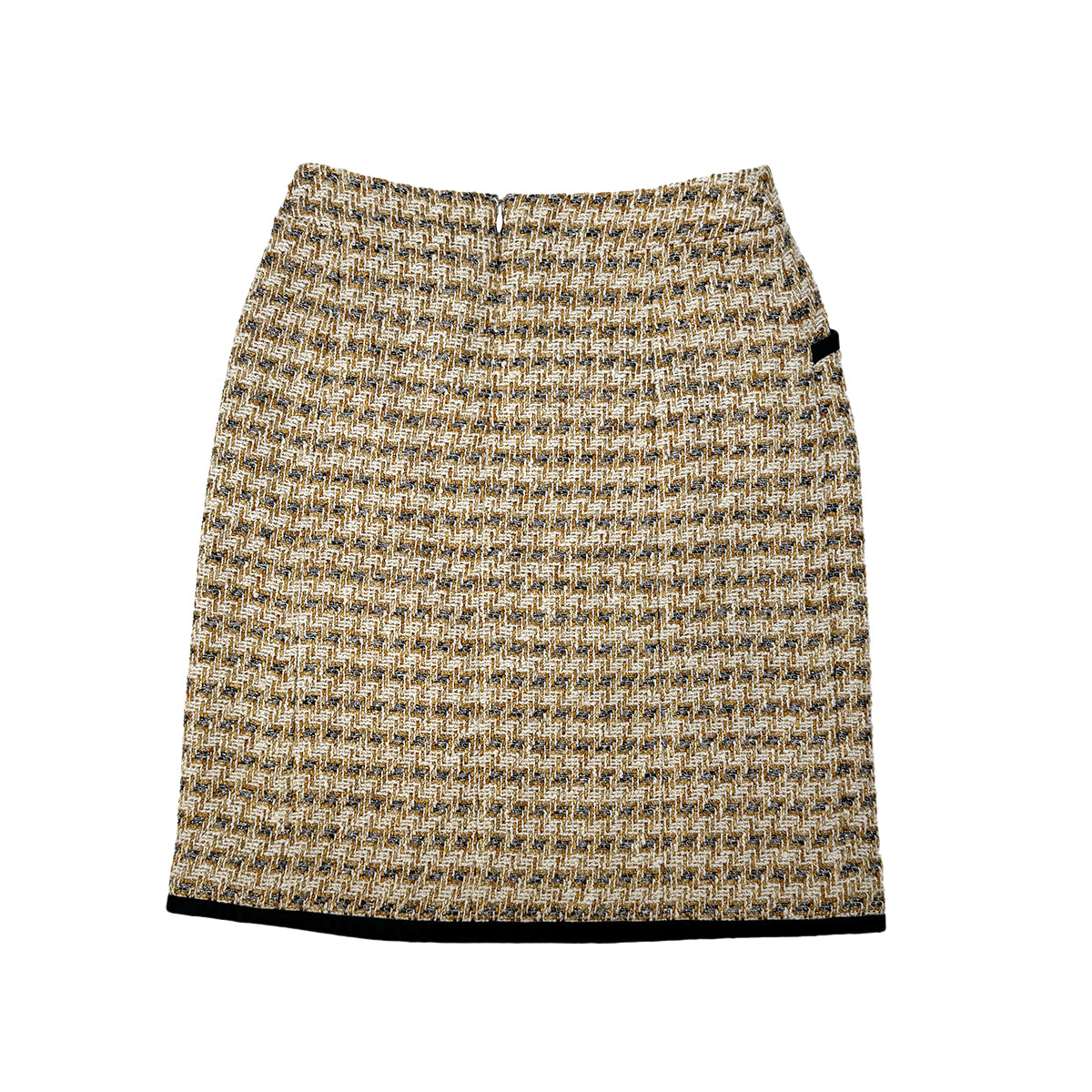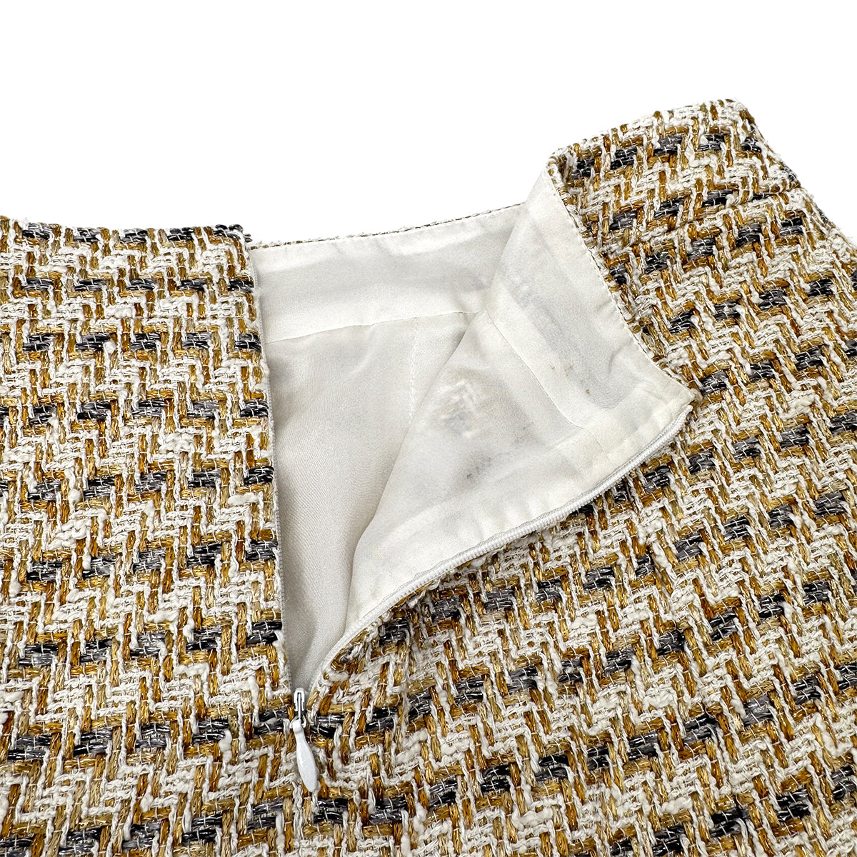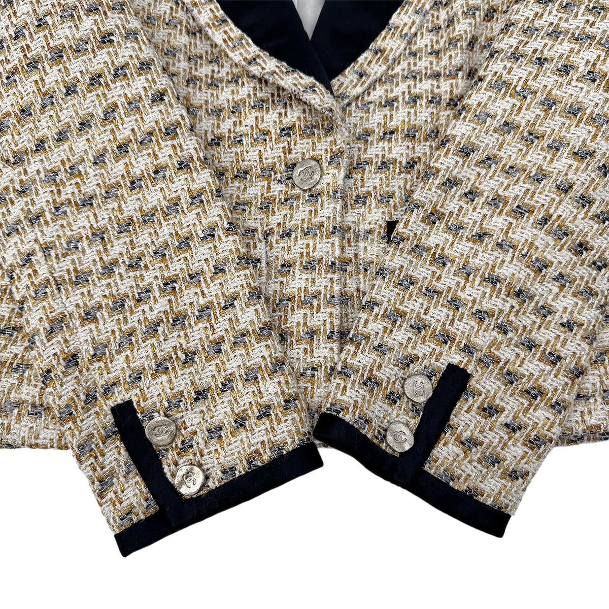 CHANEL TWEED JACKET SKIRT SET COCO BUTTON BEIGE WHITE VISCOSE 34 06P RTW 90284579