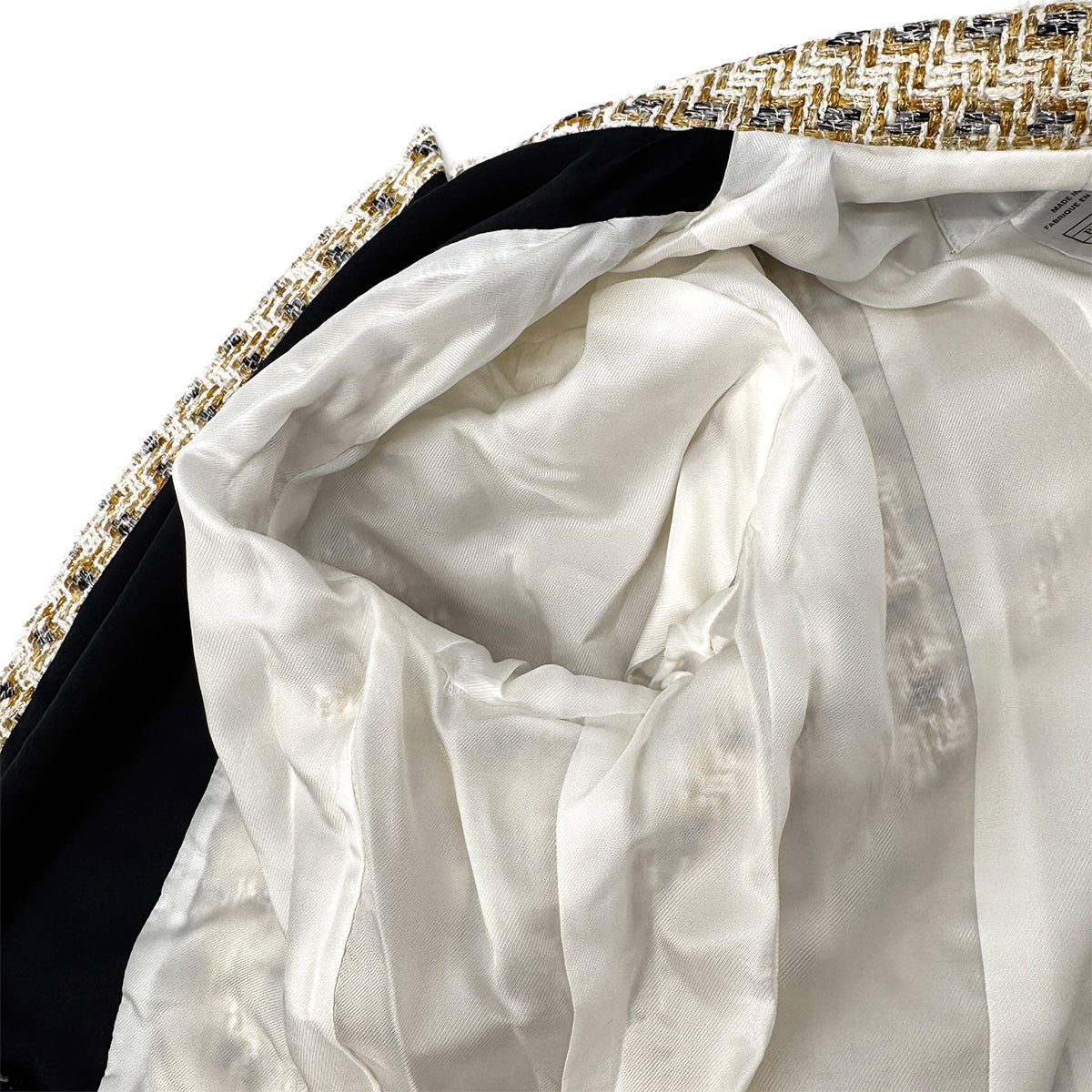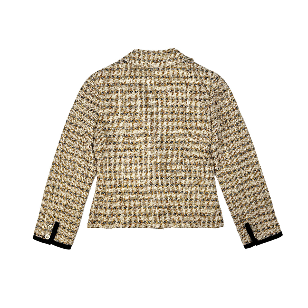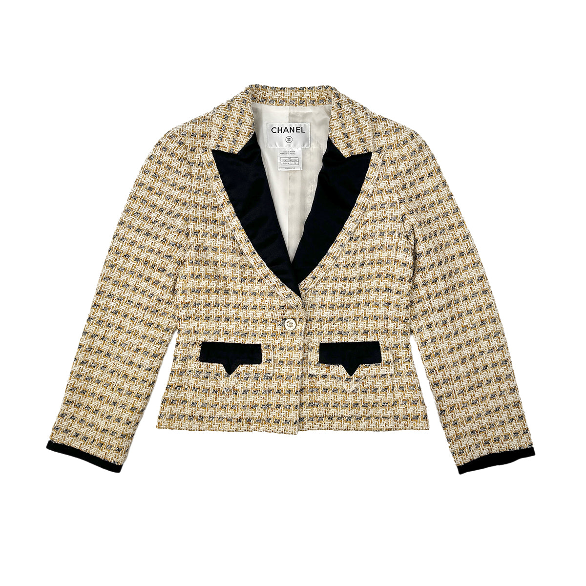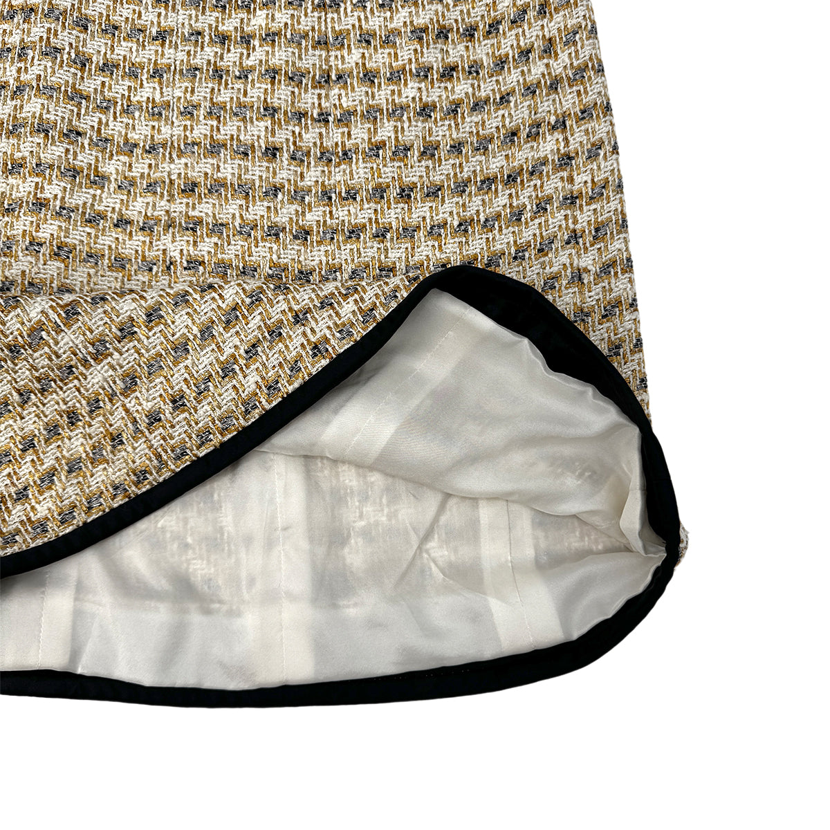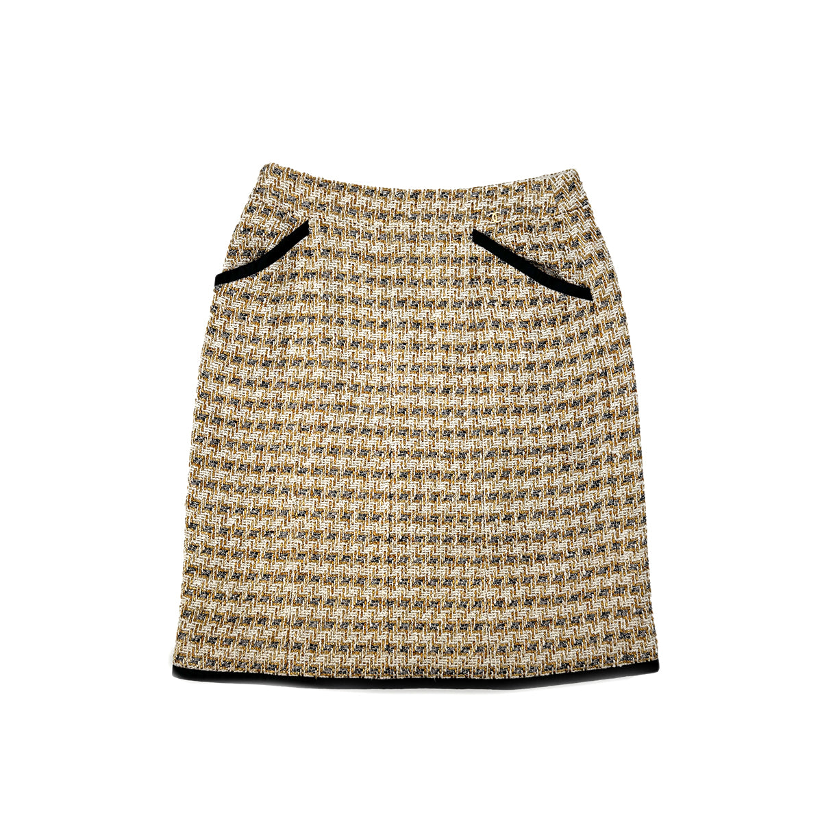 CHANEL TWEED JACKET SKIRT SET COCO BUTTON BEIGE WHITE VISCOSE 34 06P RTW 90284579