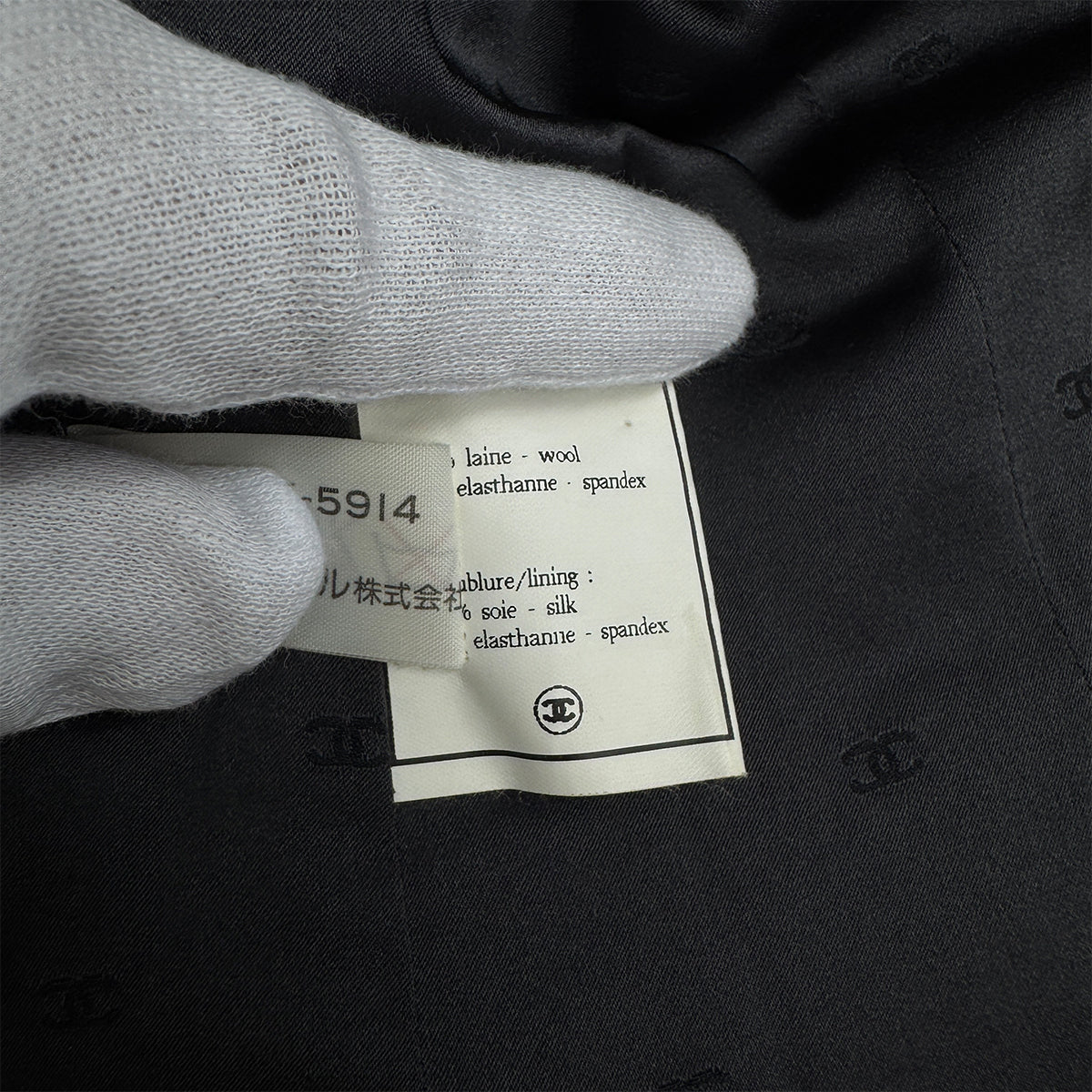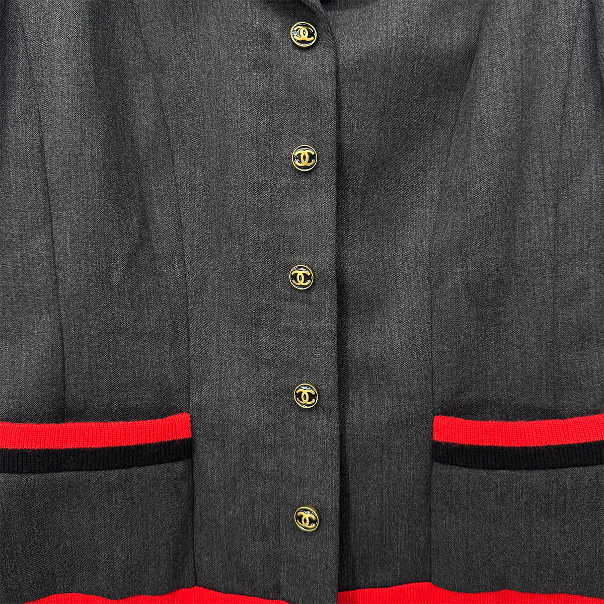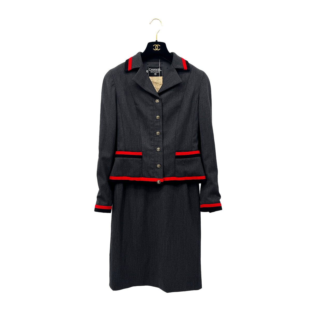 CHANEL VINTAGE COCO BUTTON JACKET SKIRT SET GRAY RED WOOL 40 94A RTW 90283647