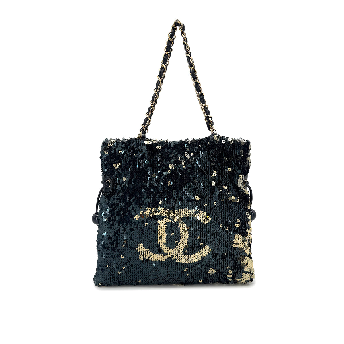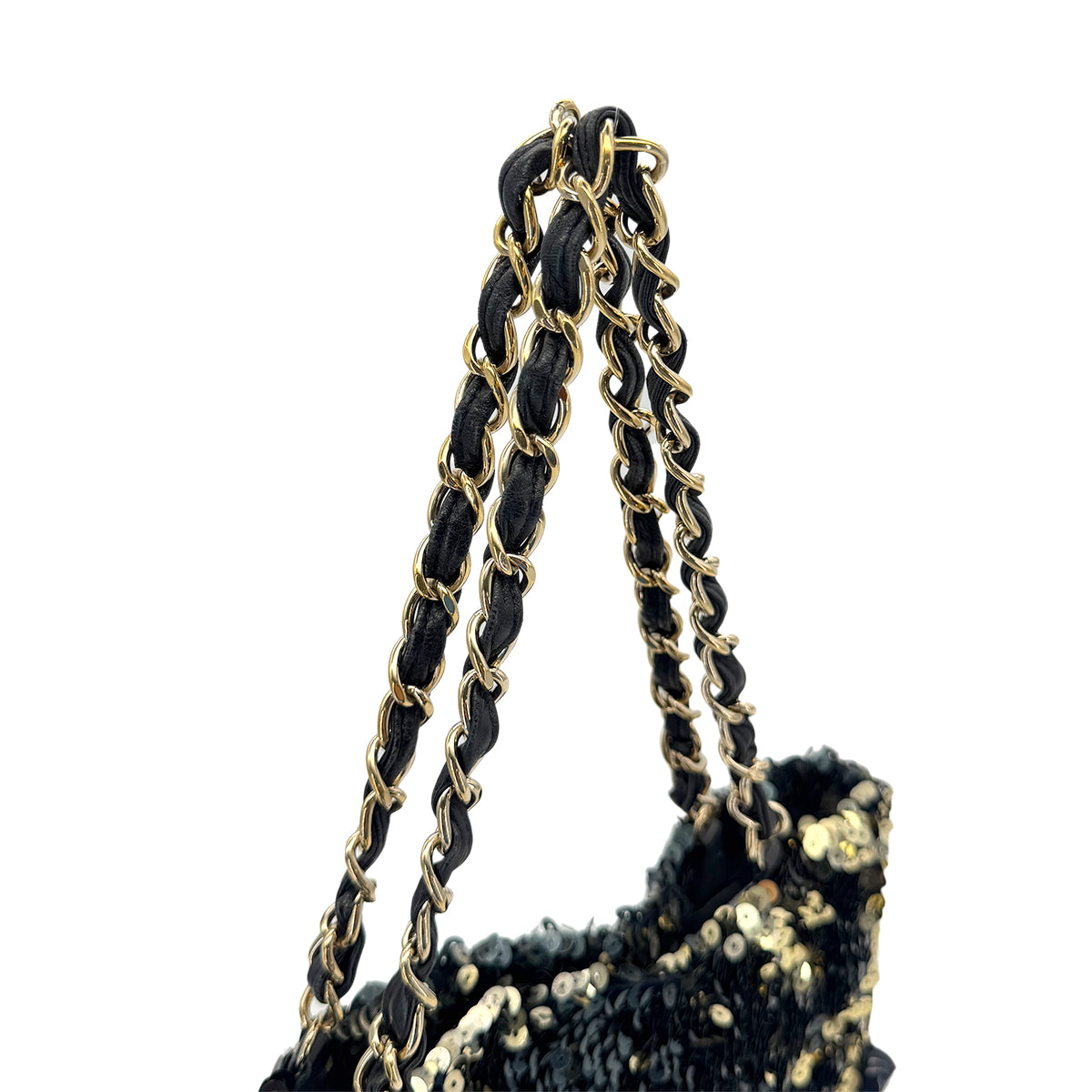 CHANEL VINTAGE COCOMARK CHAIN TOTE BAG BLACK GOLD SEQUINS 90280533