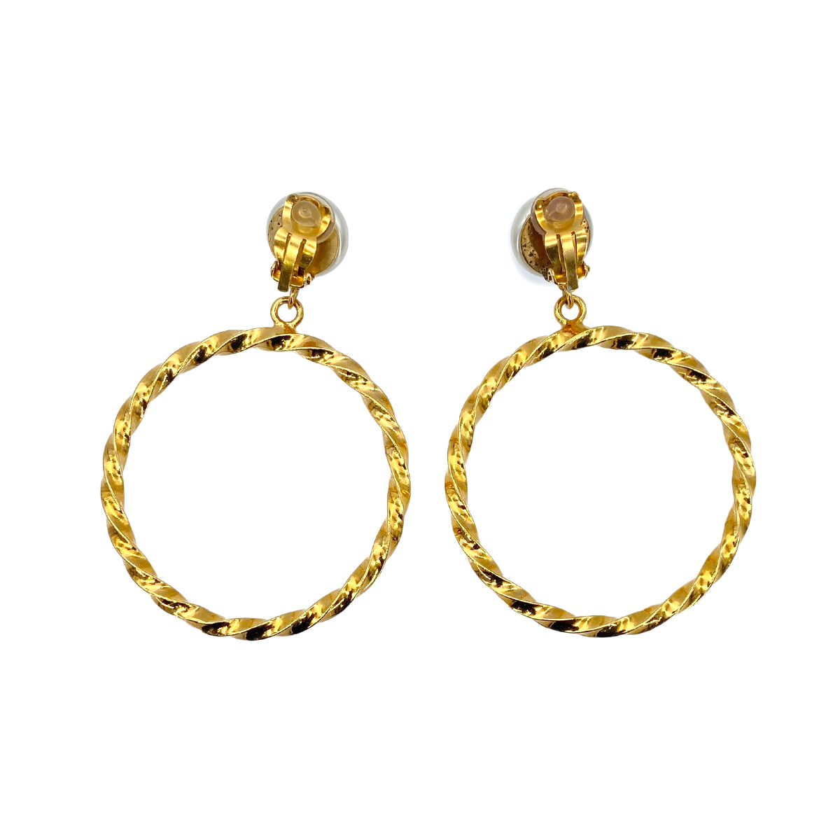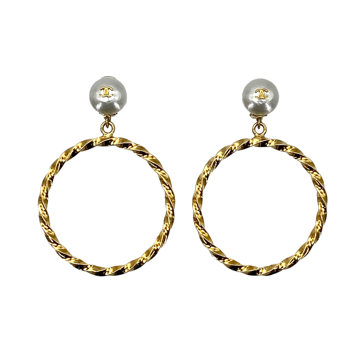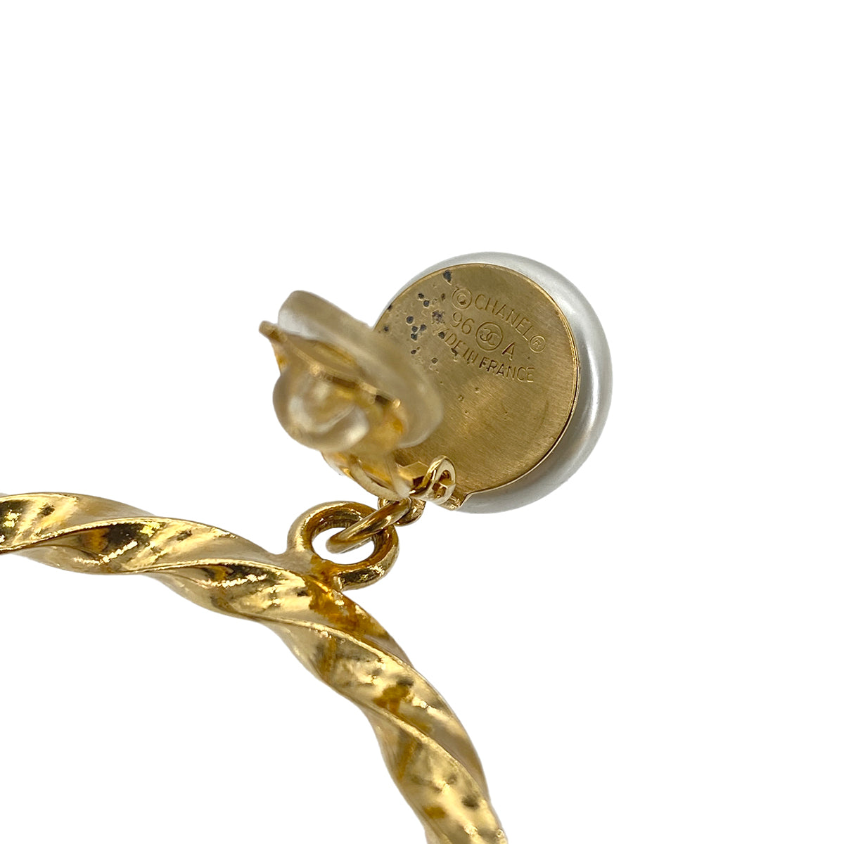 CHANEL VINTAGE EARRINGS COCOMARK FAUX PEARL HOOP ACCESSORY 96A 90275821