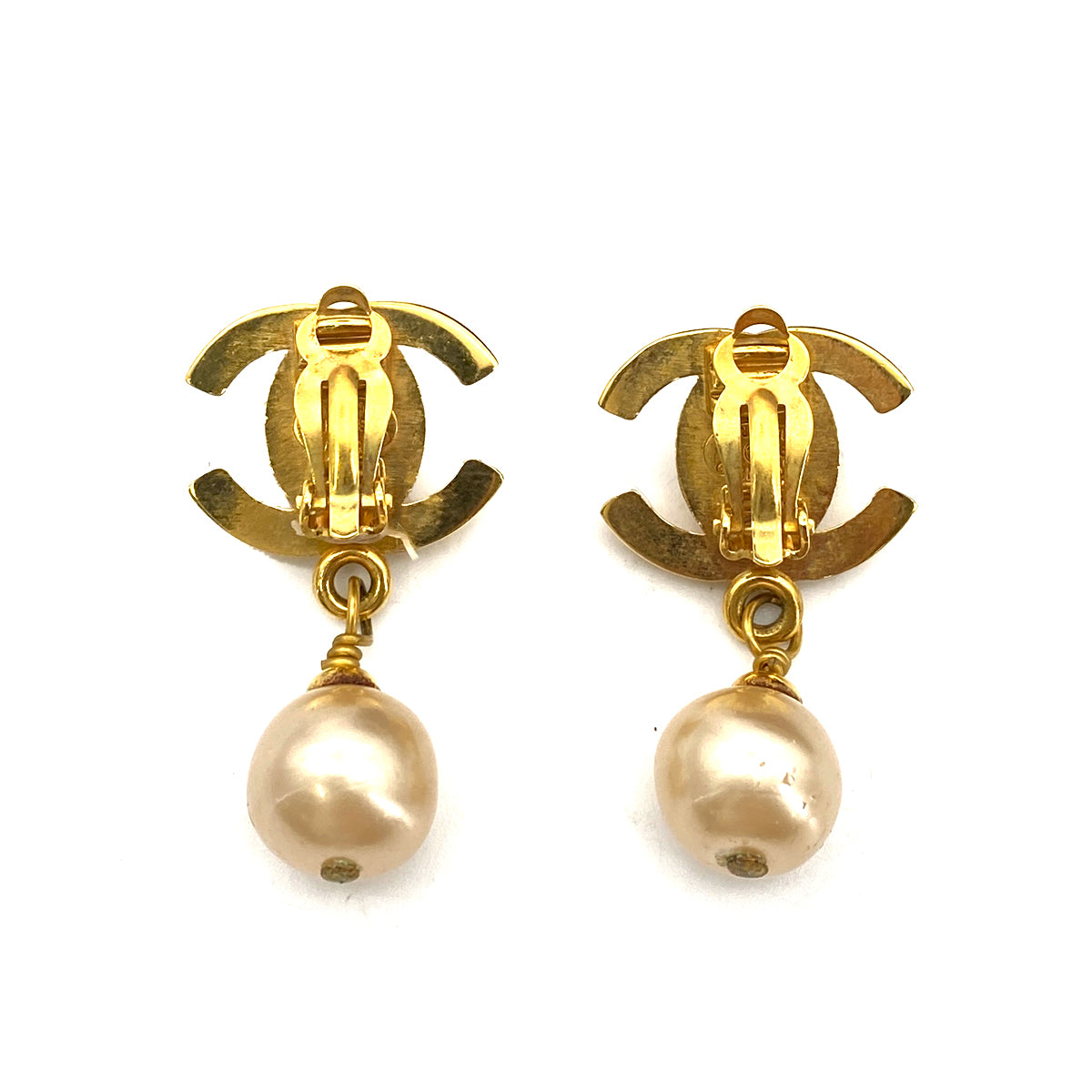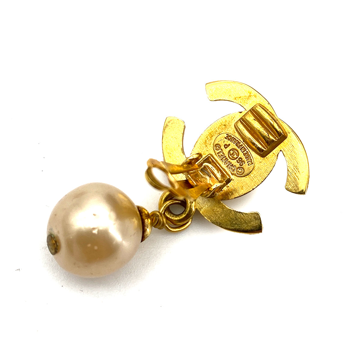 CHANEL VINTAGE EARRINGS TURN LOCK SWING PEARL ACCESSORY 96A 90256938