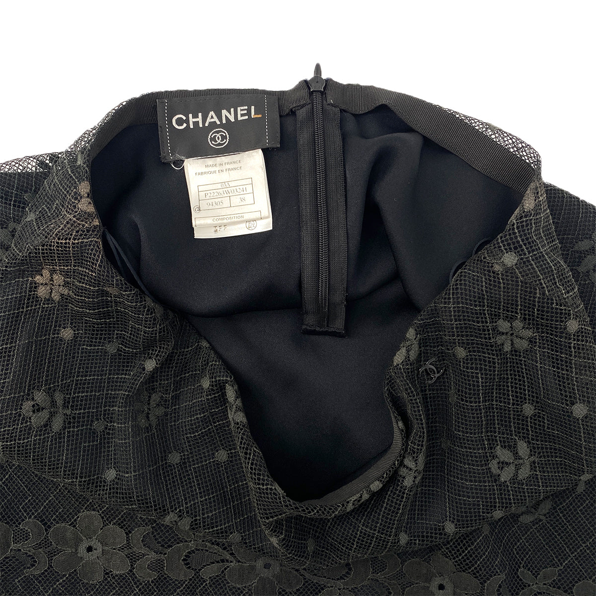 CHANEL LACE SKIRT BLACK COTTON 38 03A RTW 90287811