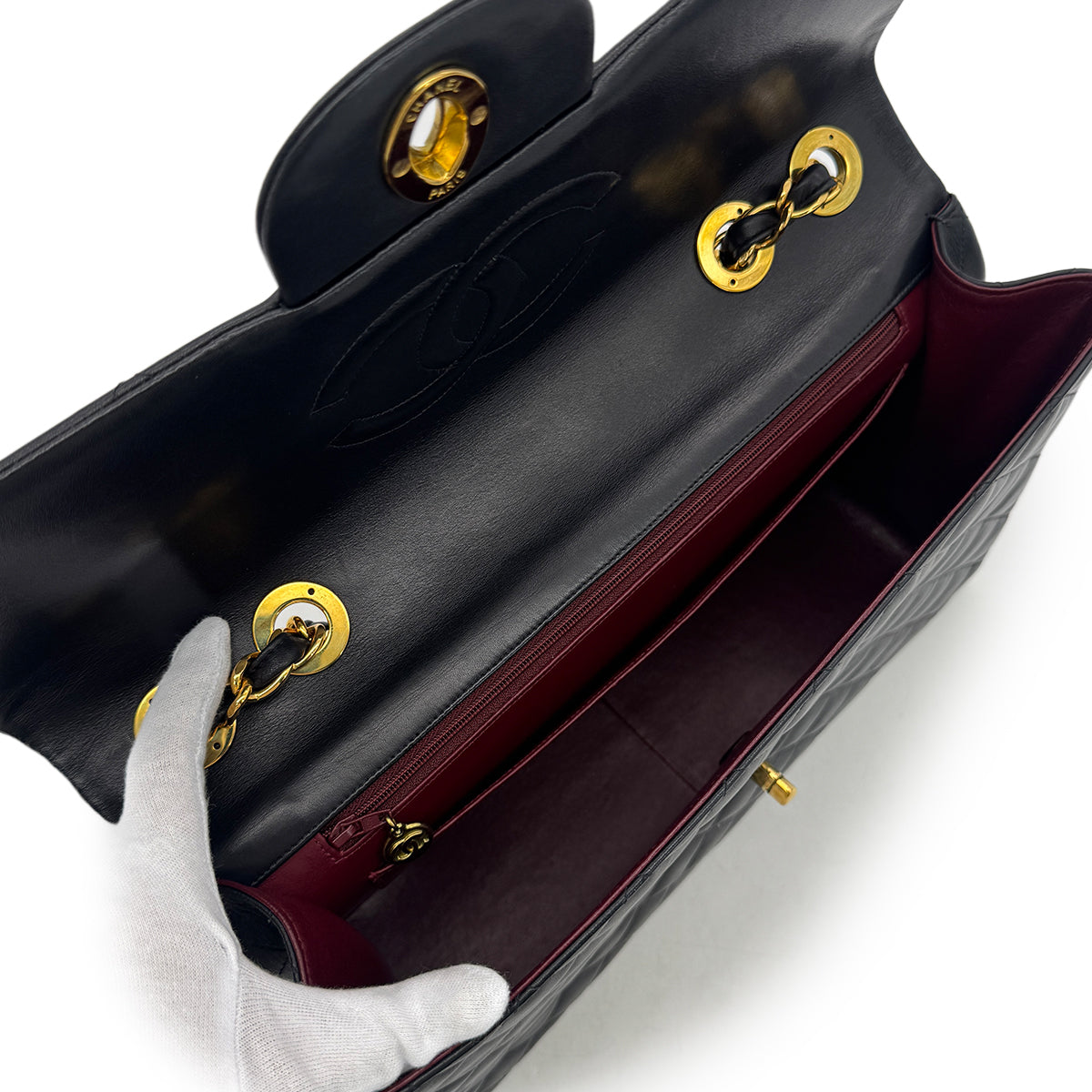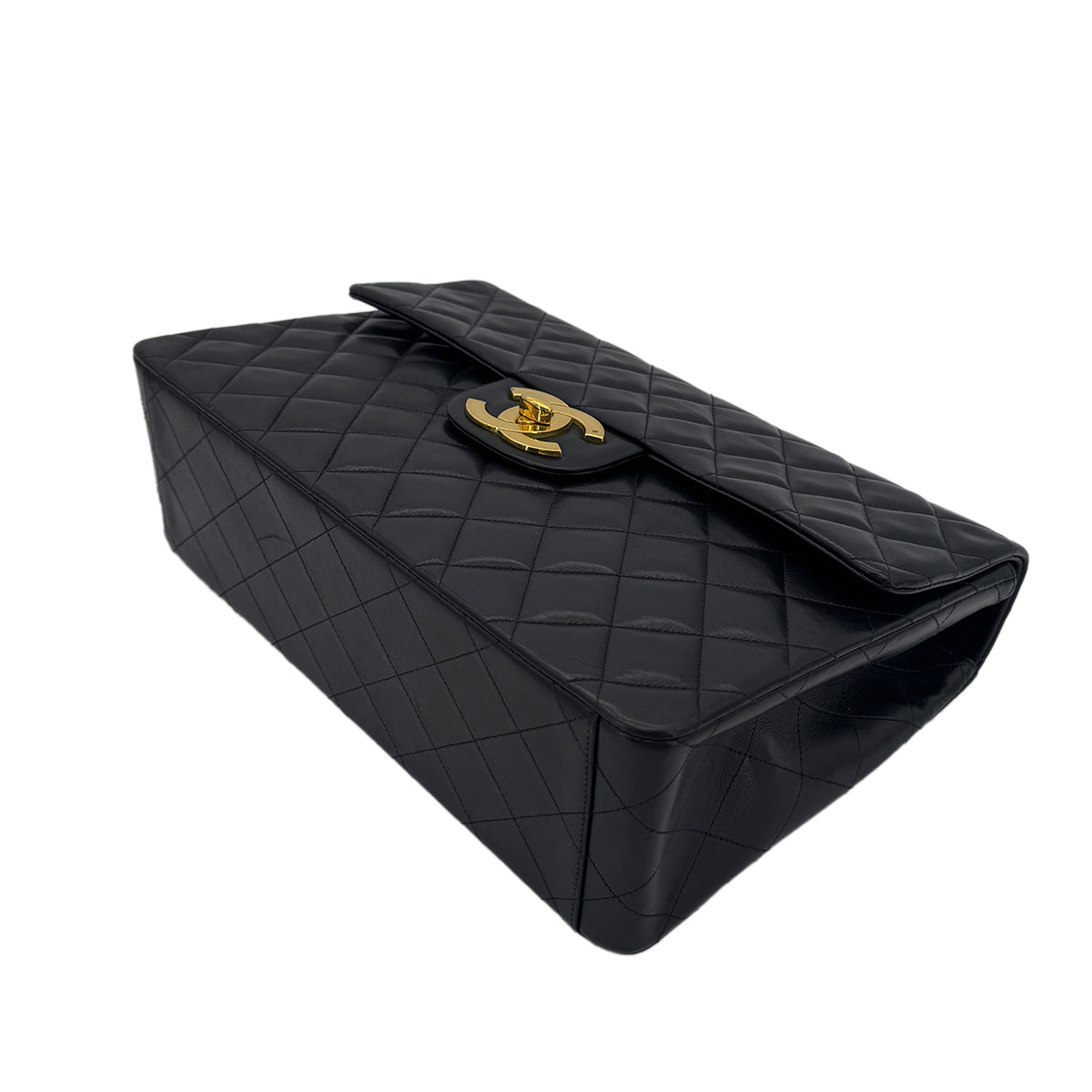 CHANEL VINTAGE MAXI MATELASSE 34 CHAIN SHOULDER BAG BLACK LAMB SKIN 90298163