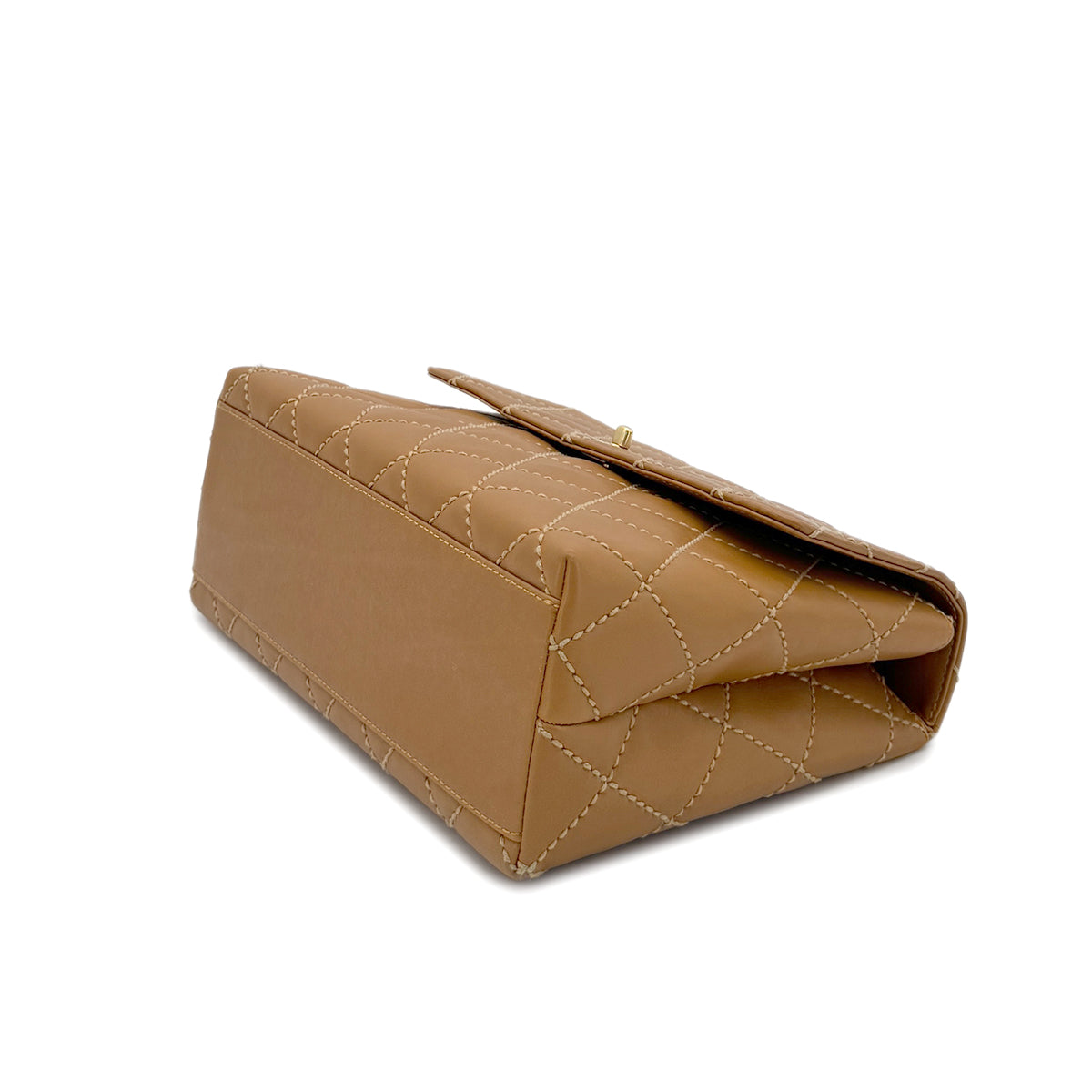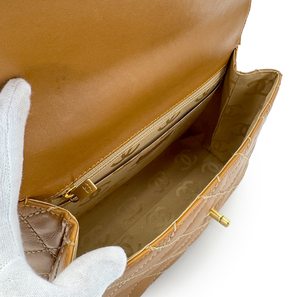 CHANEL VINTAGE WILD STITCH MATELASSE HAND BAG BROWN LEATHER 90280306
