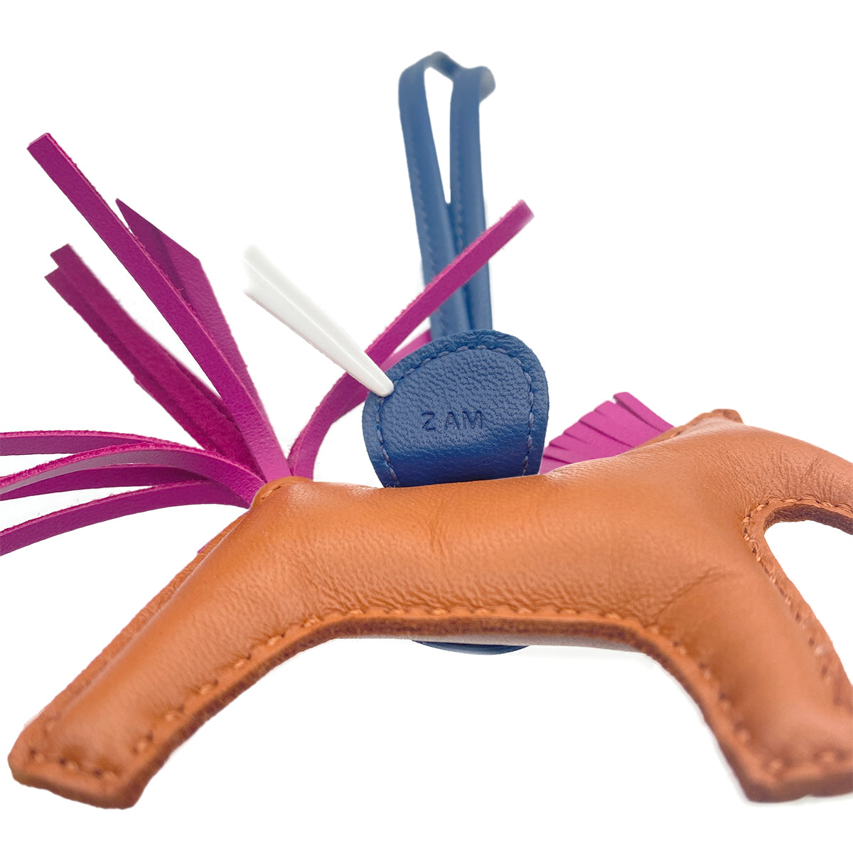 HERMES BAG CHARM RODEO PM FAUVE ROSE PURPLE BLUE DE MALTE AGNEAU MILO Z 90279745