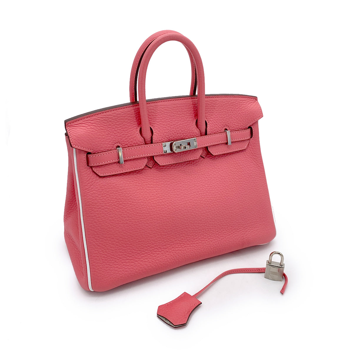 HERMES BIRKIN 25 ROSE LIPSTICK WHITE TAURILLON CLEMENCE HAND BAG D SHW SPO 90255927