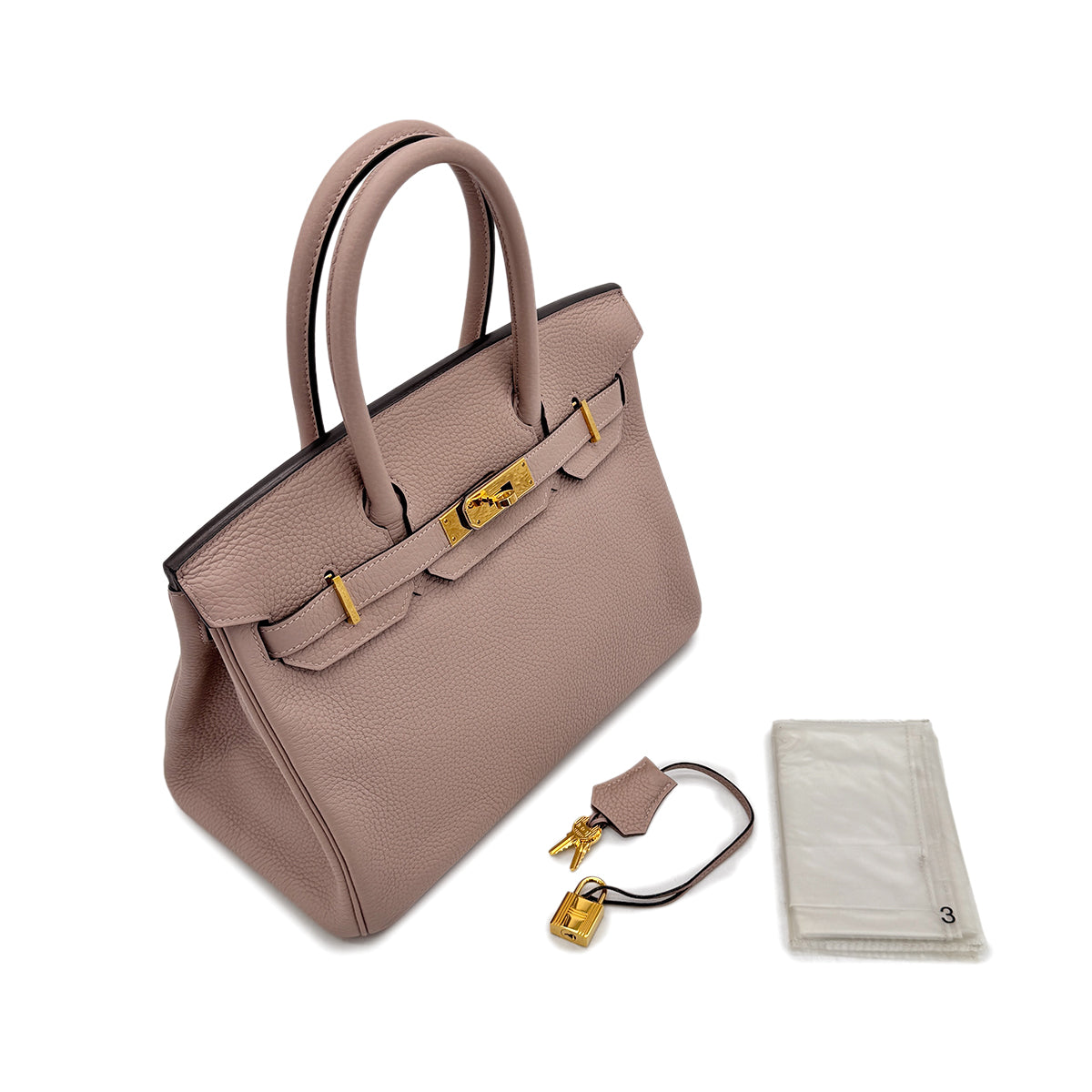 HERMES BIRKIN 30 GLYCINE TAURILLON CLEMENCE HAND BAG T GHW 90294142