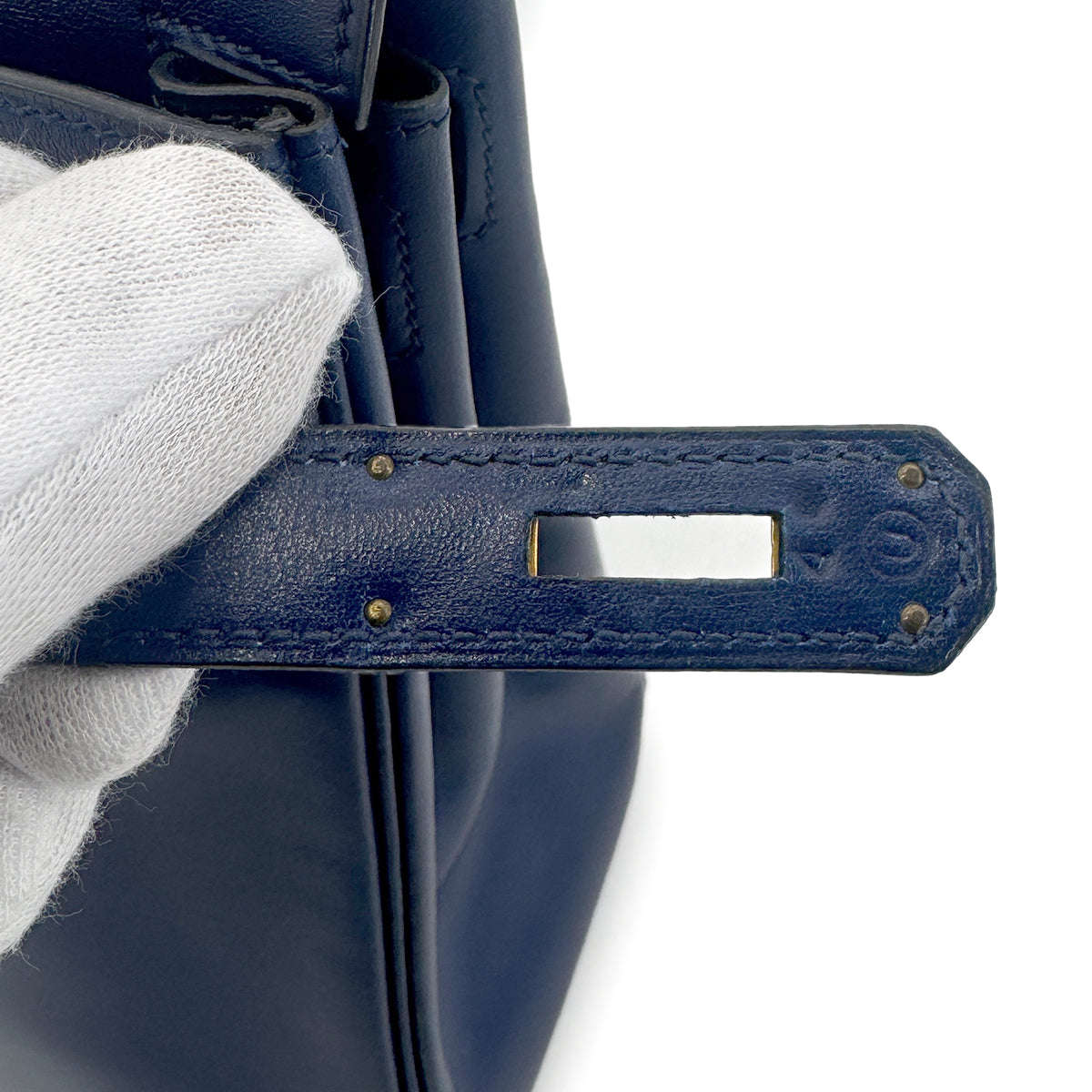 HERMES KELLY 28 RETOURNE BLUE BOX CALF HAND SHOULDER BAG 〇U GHW 90272852