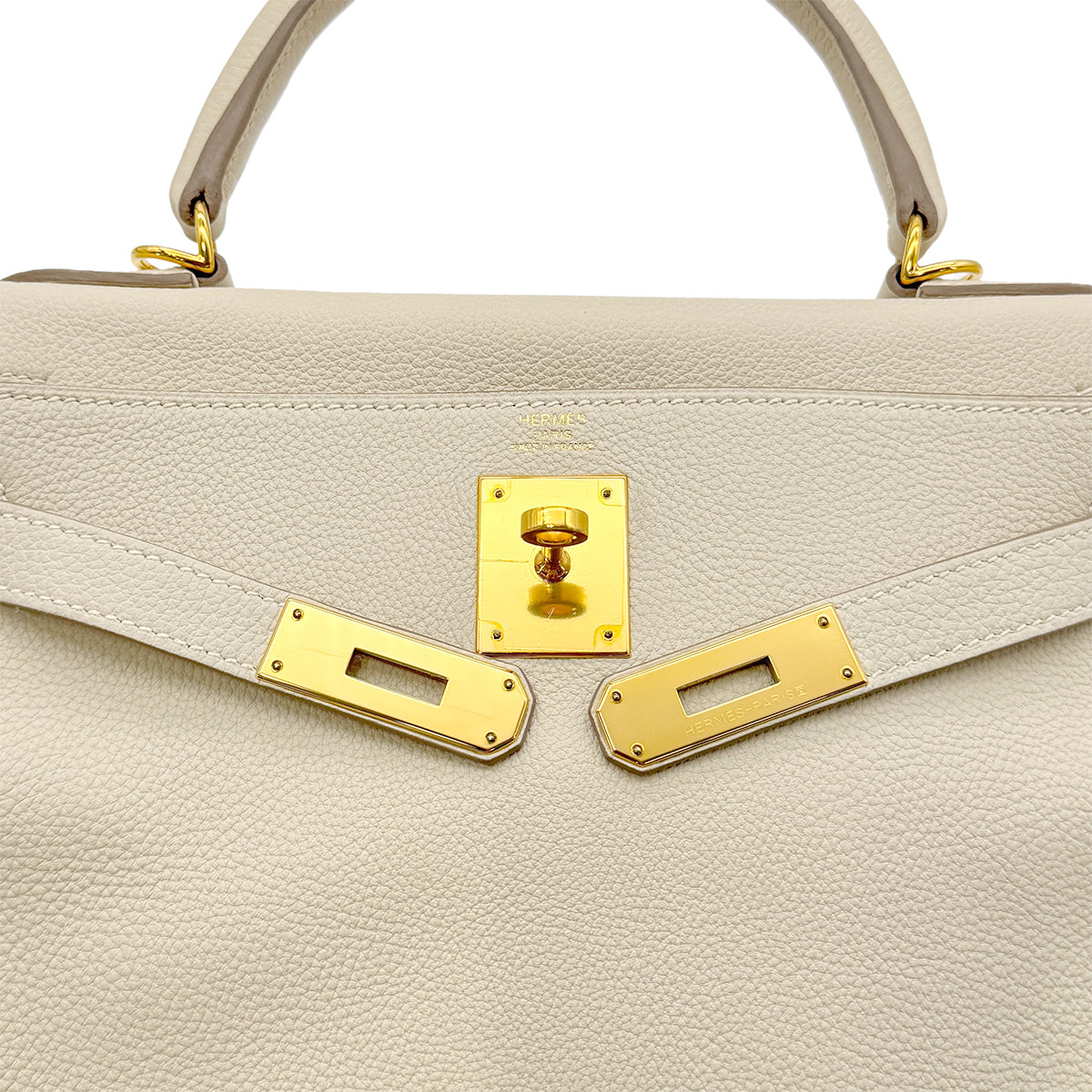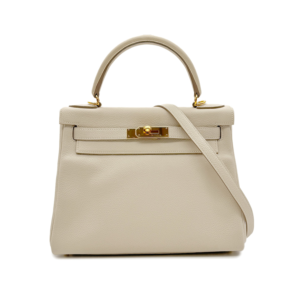 HERMES KELLY 28 RETOURNE CRAIE TAURILLON NOVILLO HAND SHOULDER BAG X GHW 90294143