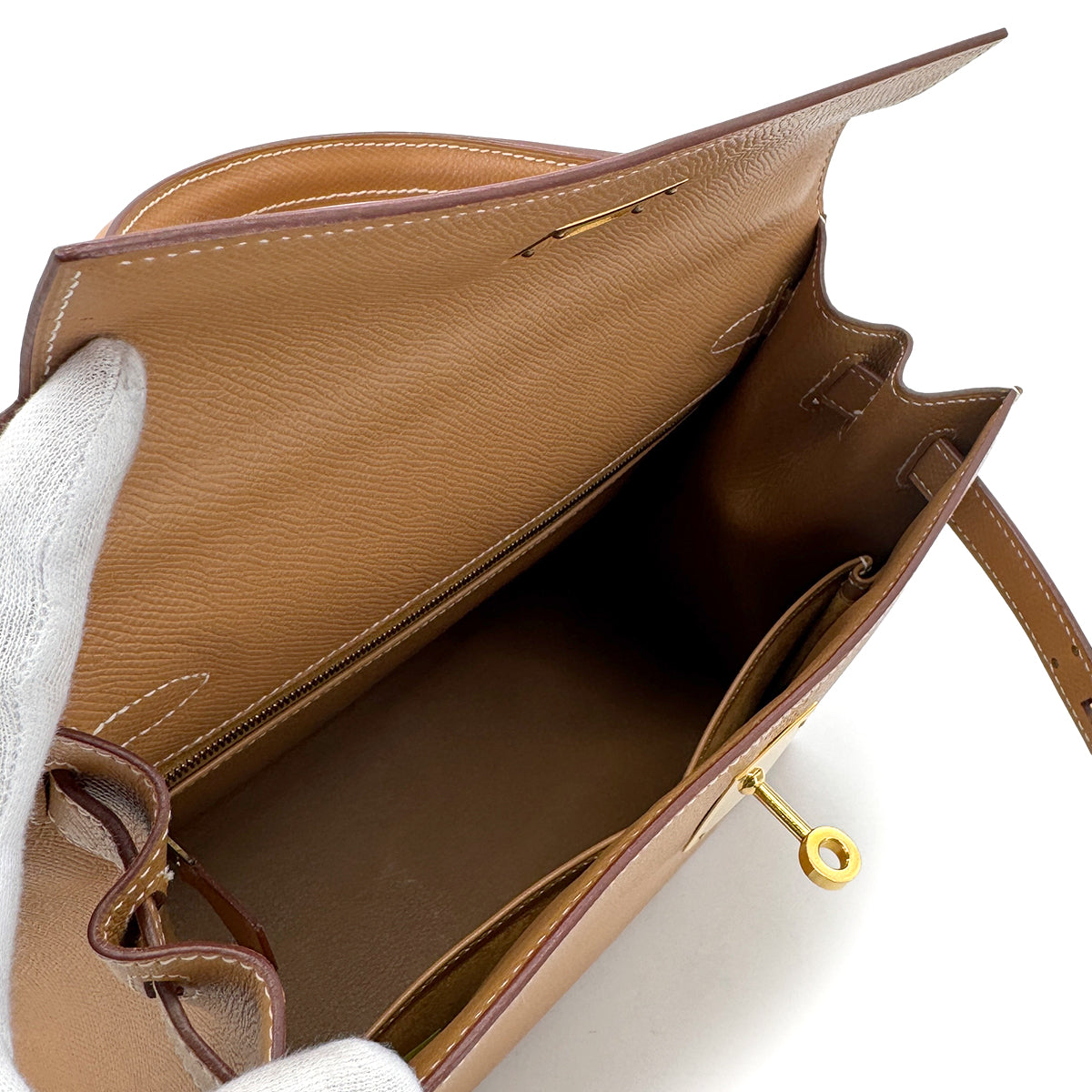 HERMES KELLY 28 SELLIER NATURAL COUCHEVEL HAND SHOULDER BAG □B GHW 90279729