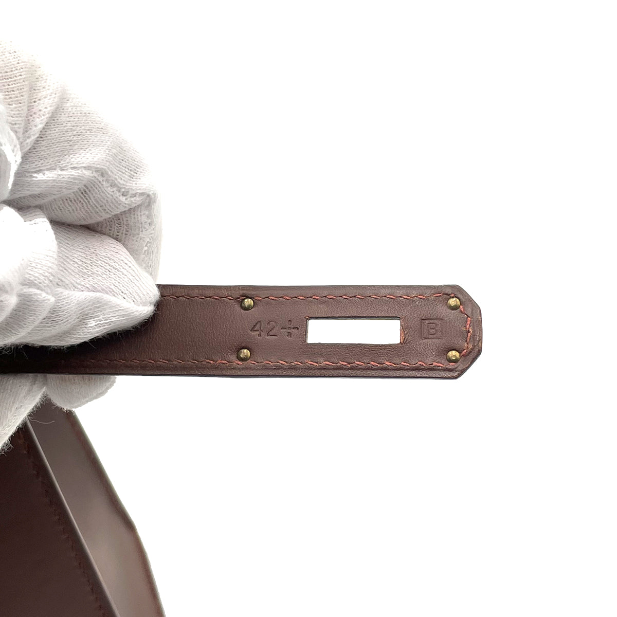 HERMES KELLY 32 SELLIER BROWN BOX CALF HAND SHOULDER BAG □B 90263223
