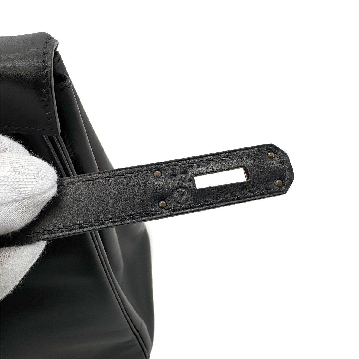 HERMES KELLY 35 RETOURNE BLACK BOXCALF HAND SHOULDER BAG 〇V GHW 90279734
