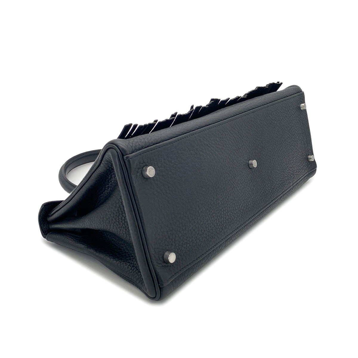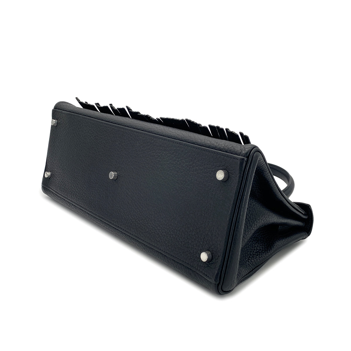HERMES KELLY FRINGE RETOURNE BLACK TAURILLON CLEMENCE HAND BAG □M SHW 90275039