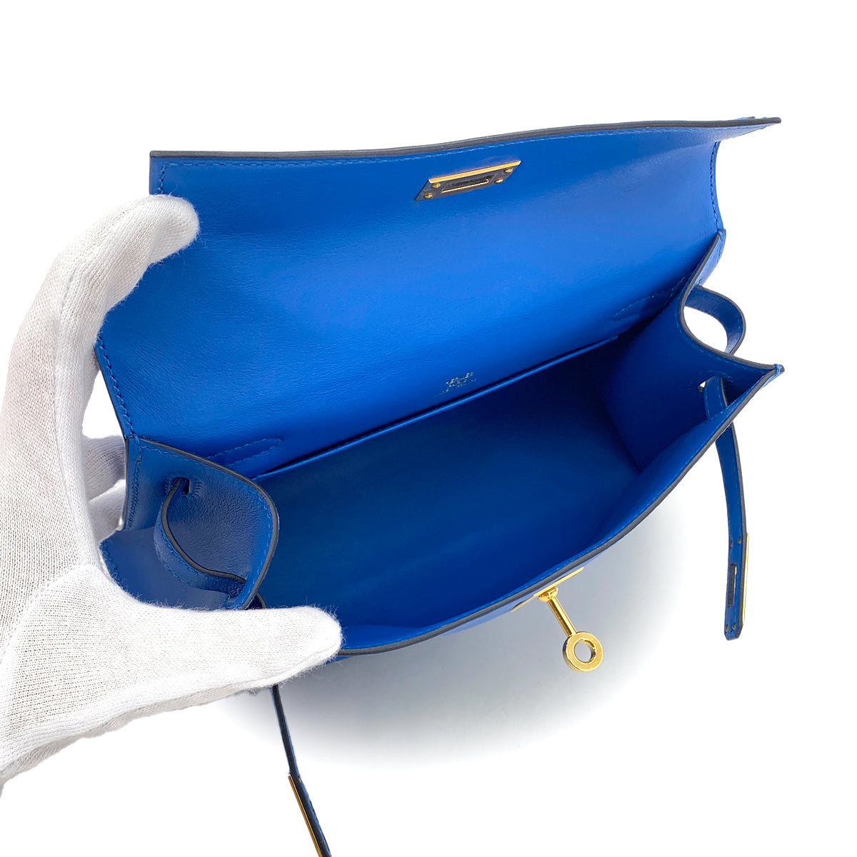 HERMES KELLY POCHETTE SELLIER BLUE ZELLIGE SWIFT HAND BAG C GHW 90284558