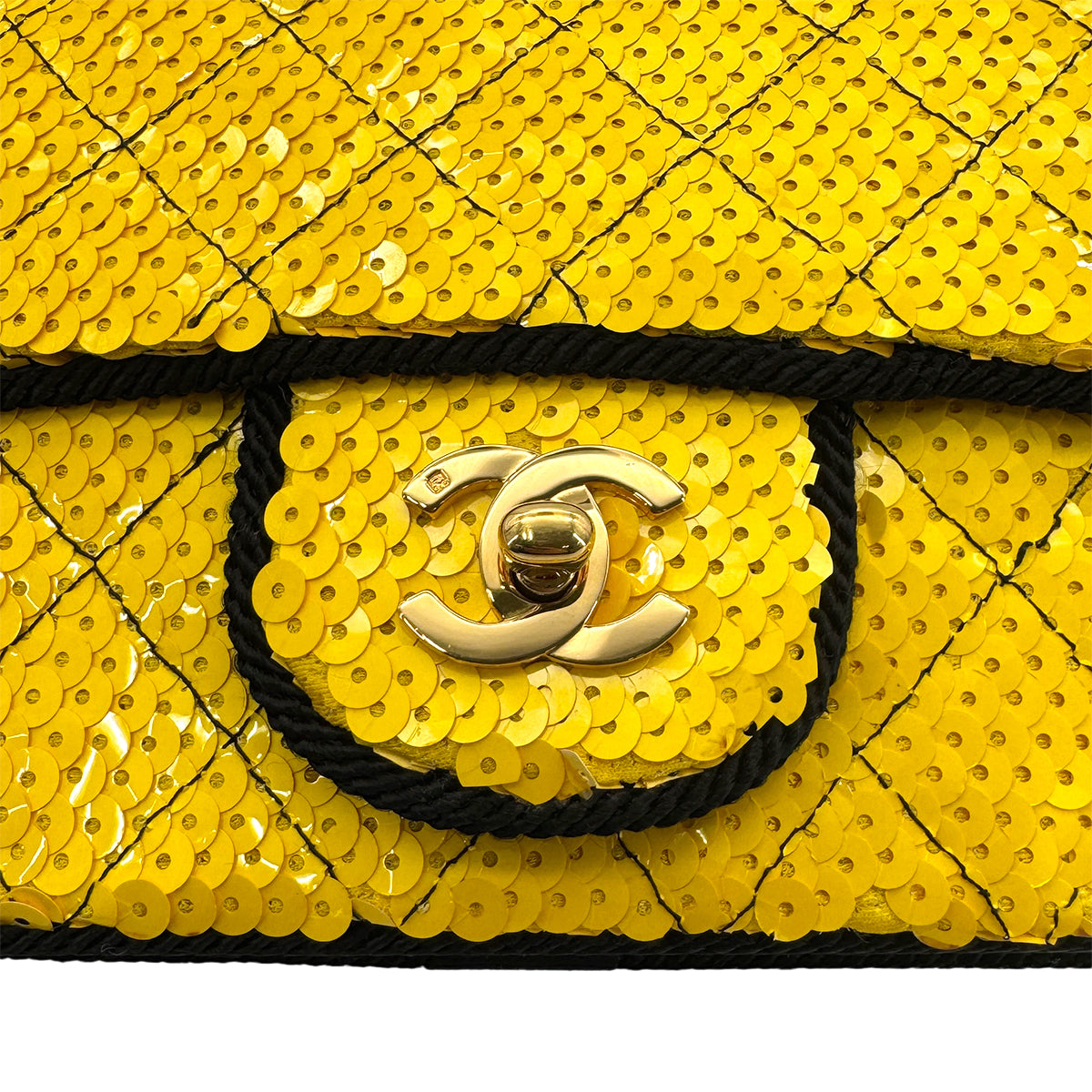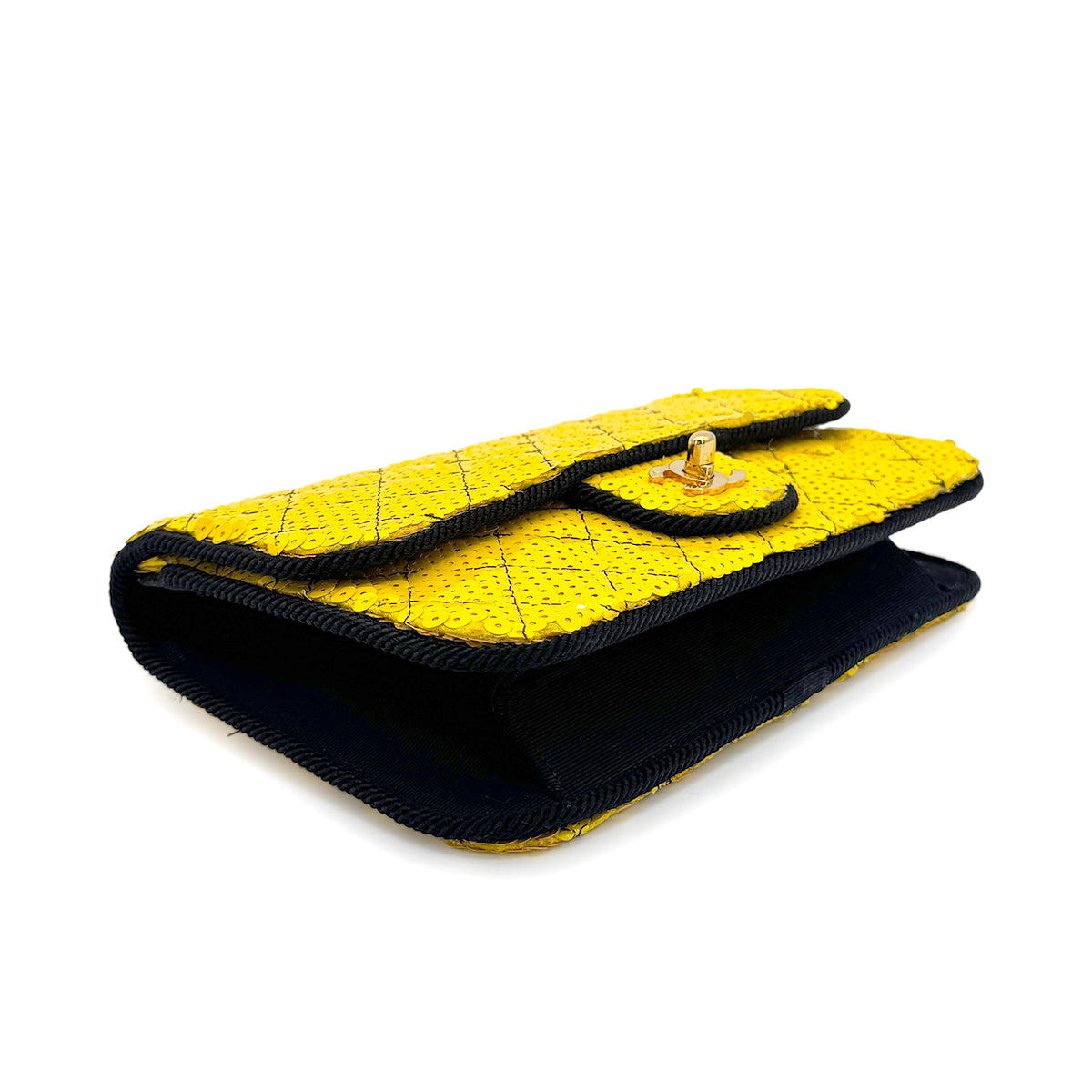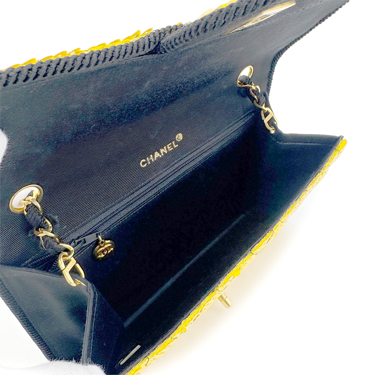 CHANEL VINTAGE CHAIN SHUOLDER BAG BYCOLOR YELLOW BLACK SEQUINS CANVAS 90201185