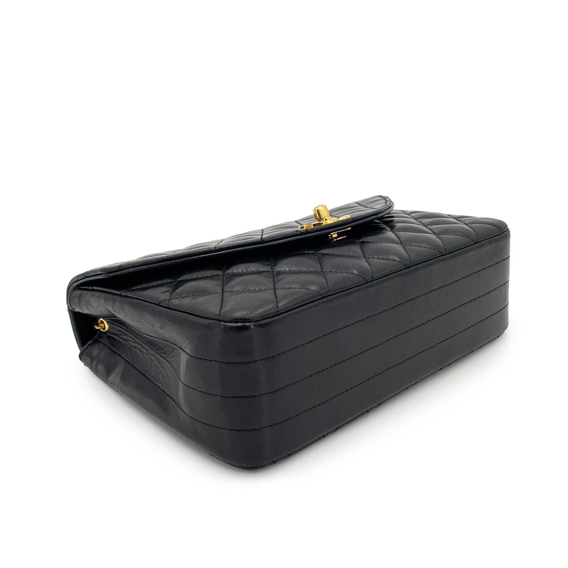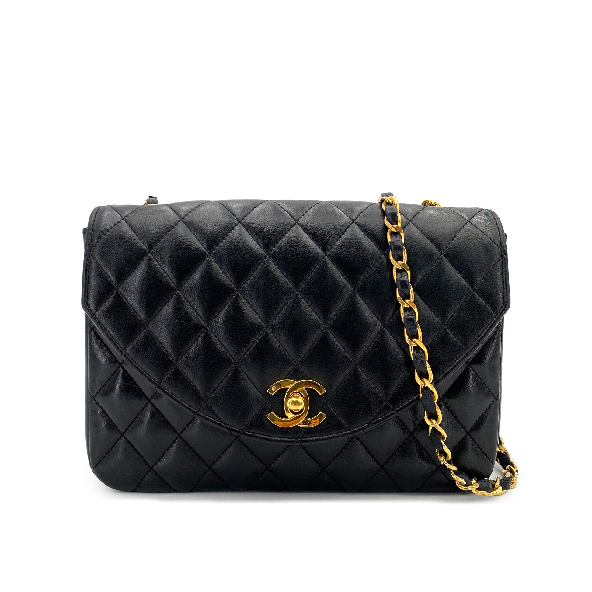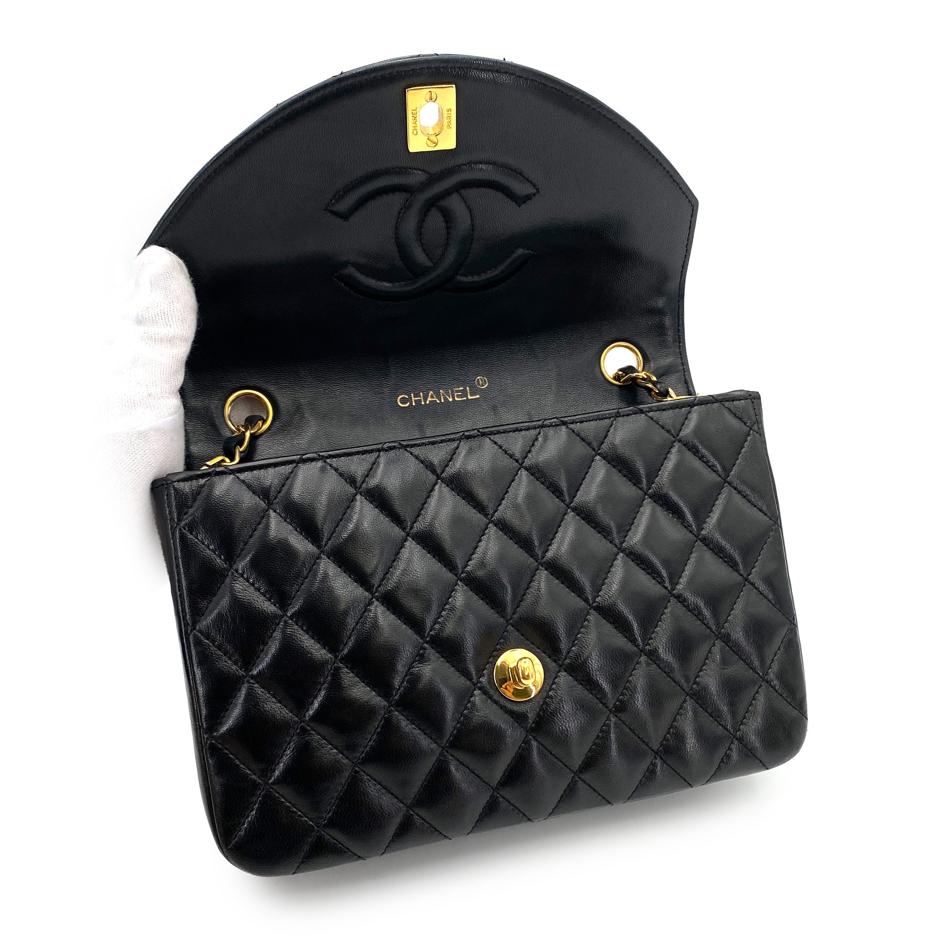 CHANEL VINTAGE HALF MOON CHAIN SHOULDER BAG BLACK LAMB SKIN 90241650