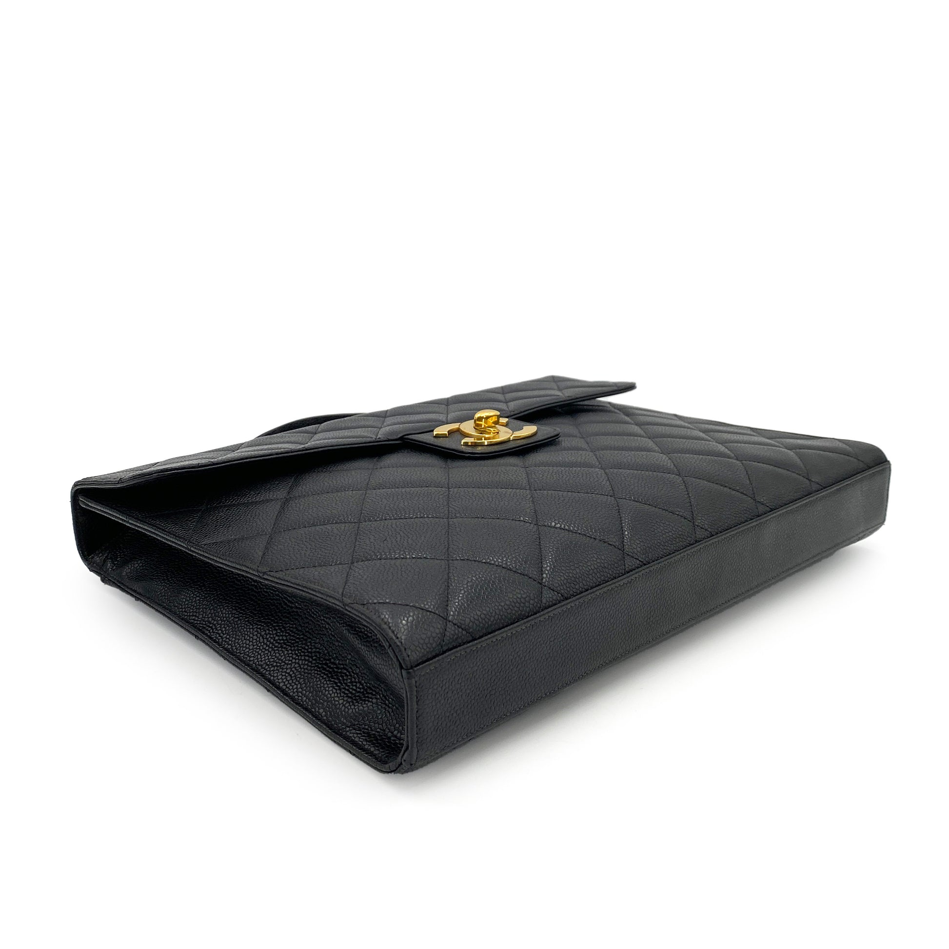 CHANEL VINTAGE BIG COCO BRIEF HAND BAG BLACK CAVIAR SKIN 90241707