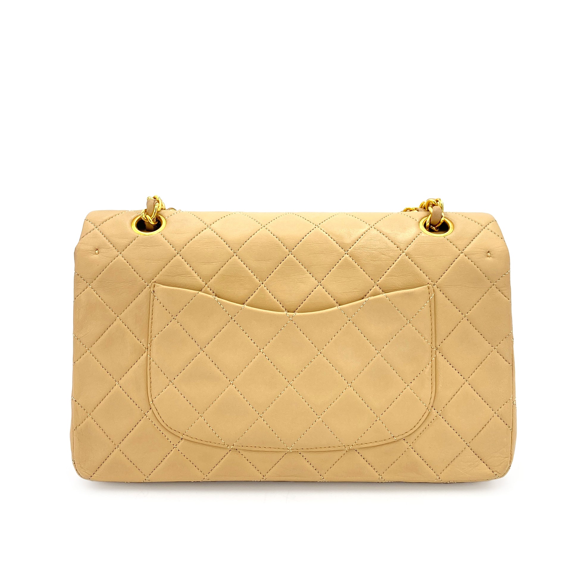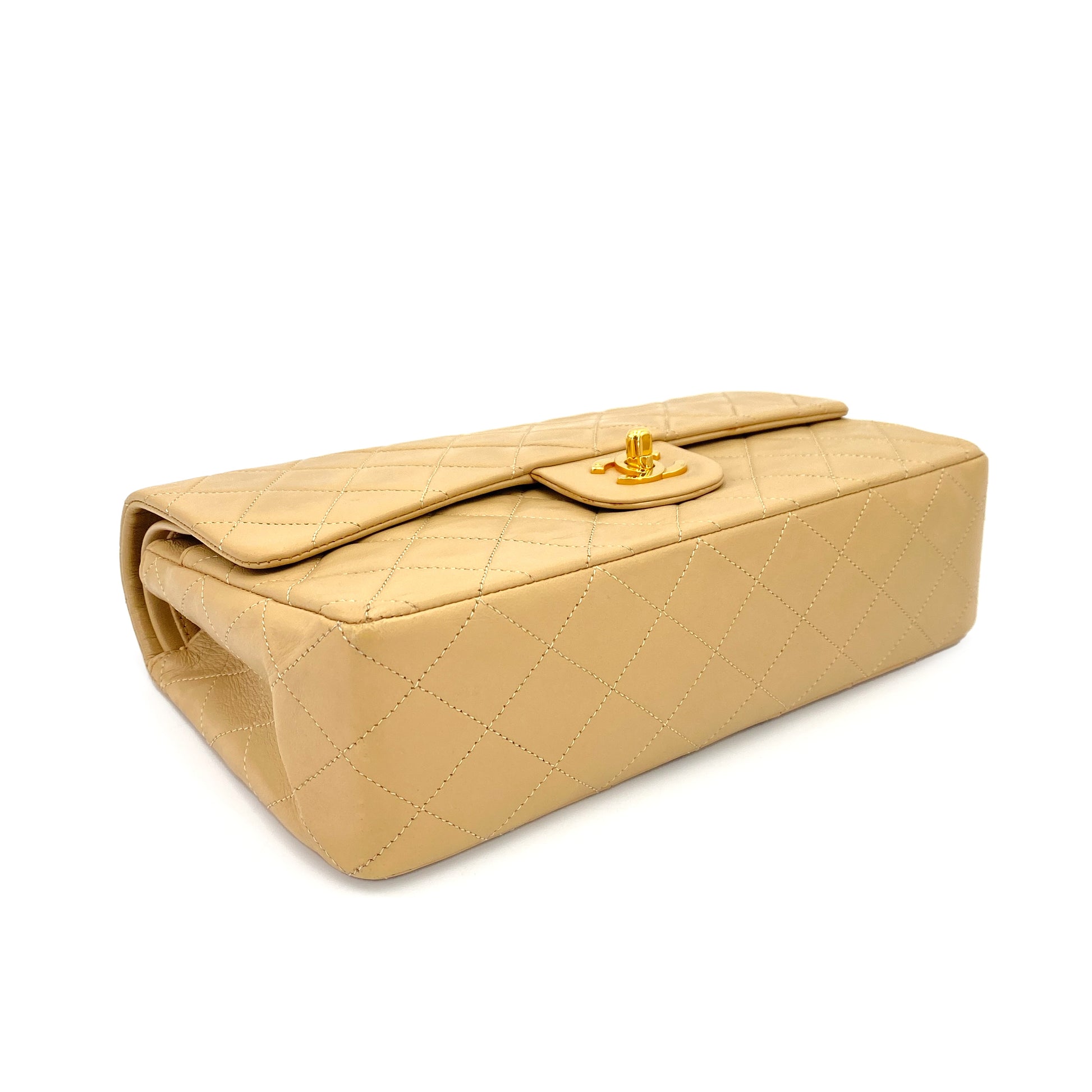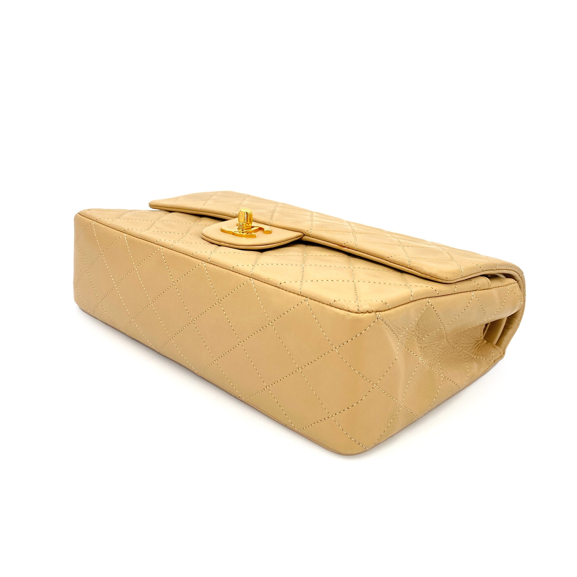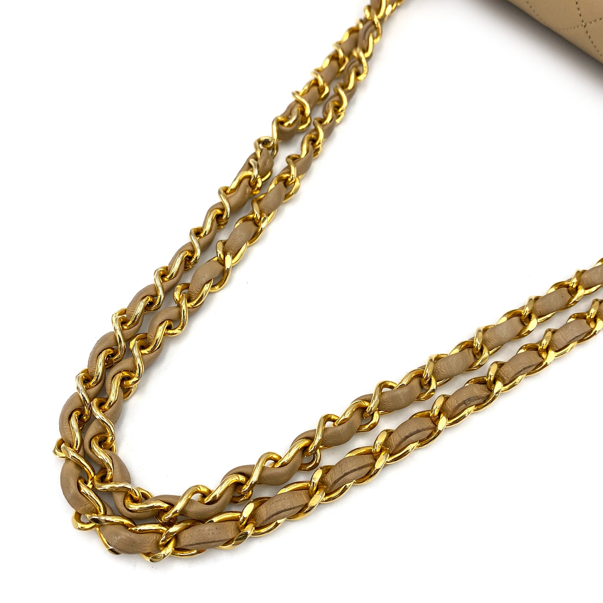CHANEL VINTAGE CLASSIC FLAP MEDIUM CHAIN SHOULDER BAG BEIGE LAMB SKIN 90242660