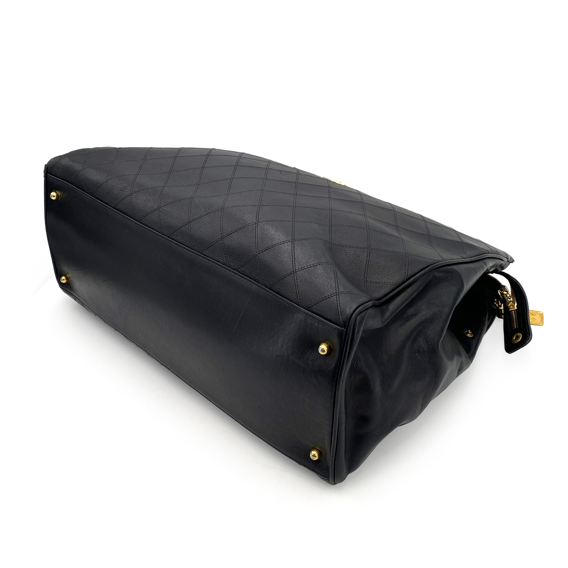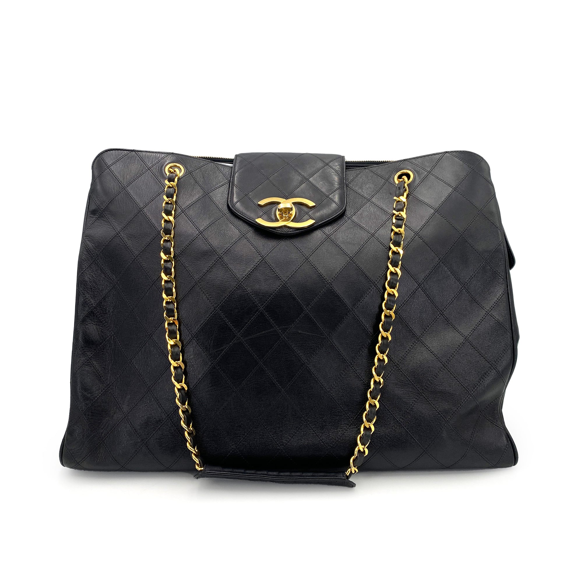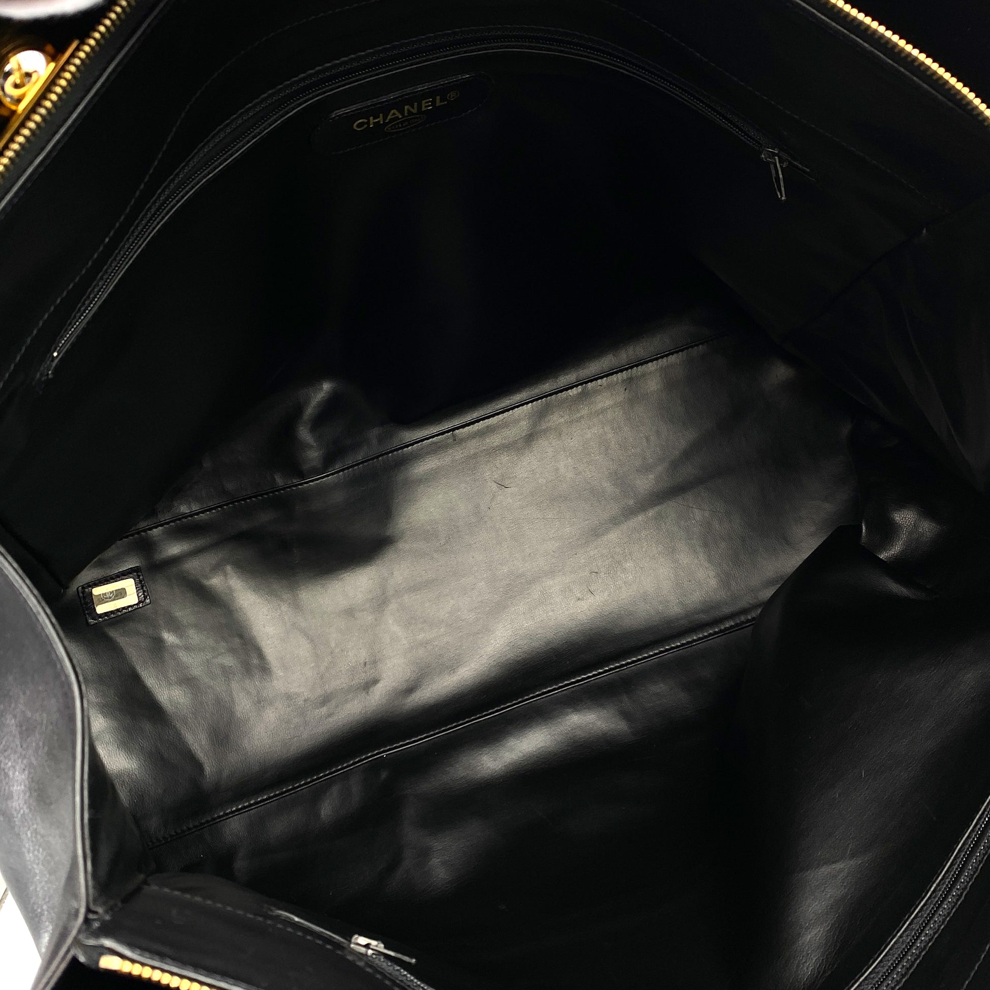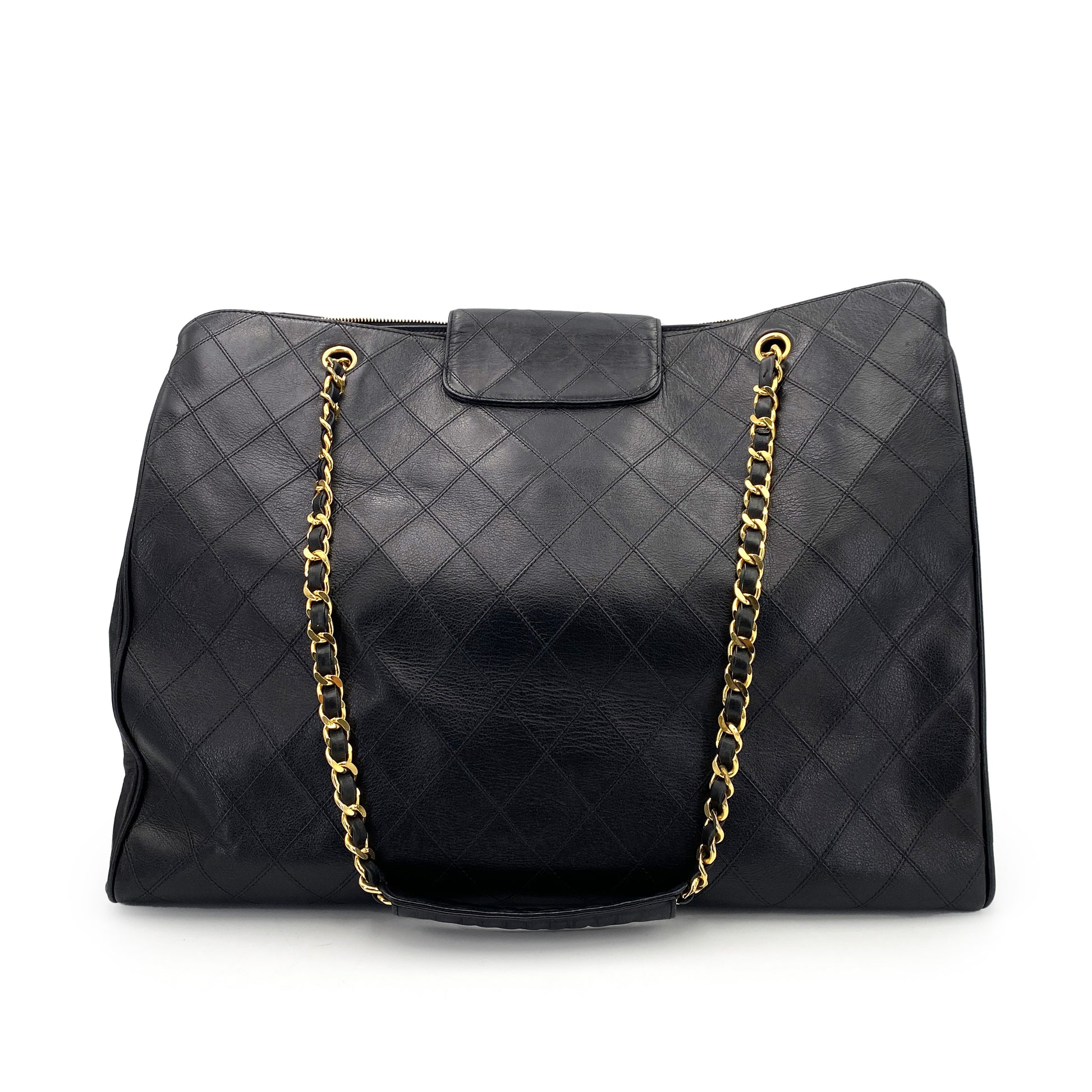 CHANEL VINTAGE SUPER MODEL BICOLORE CHAIN TOTE BAG BLACK LAMB SKIN 90242956