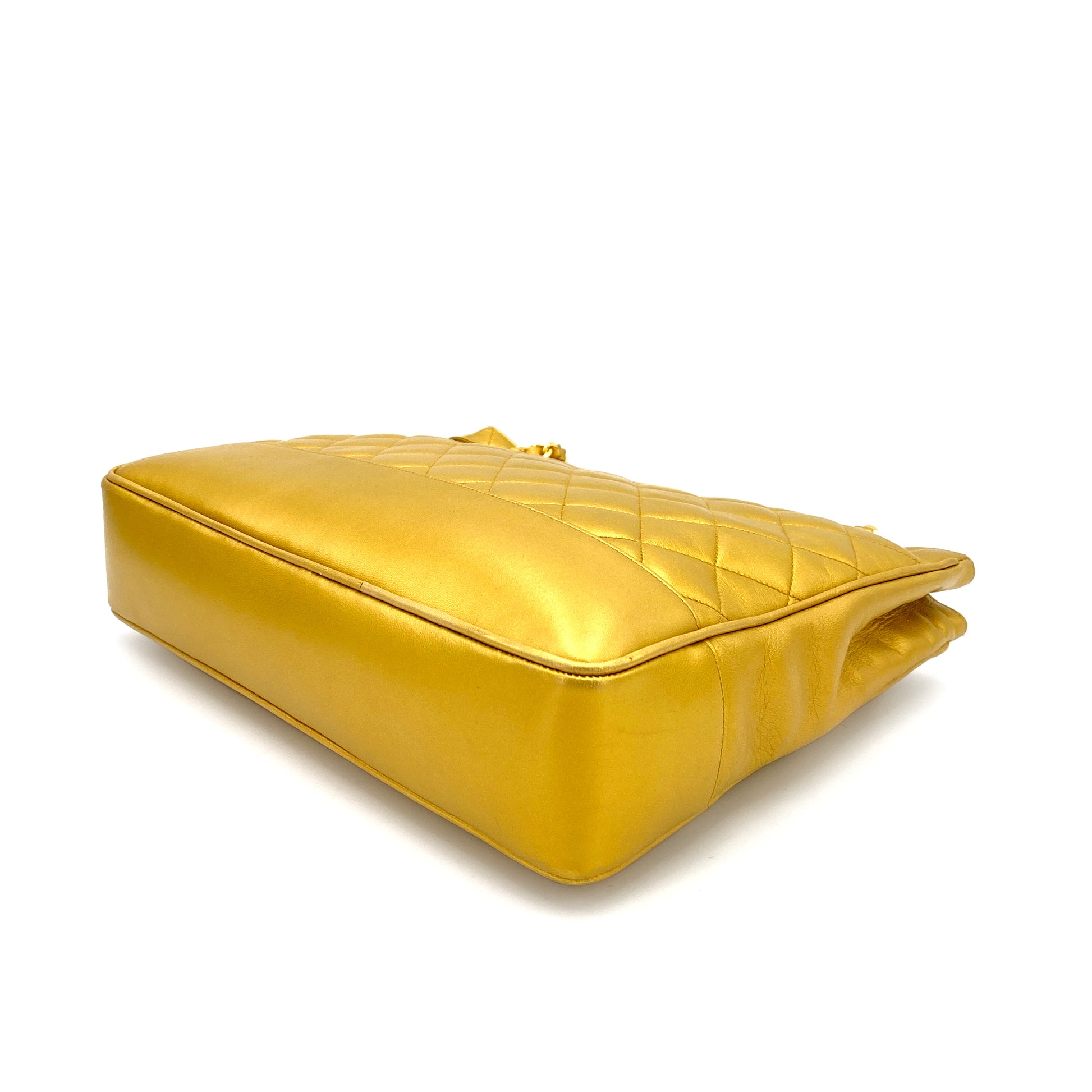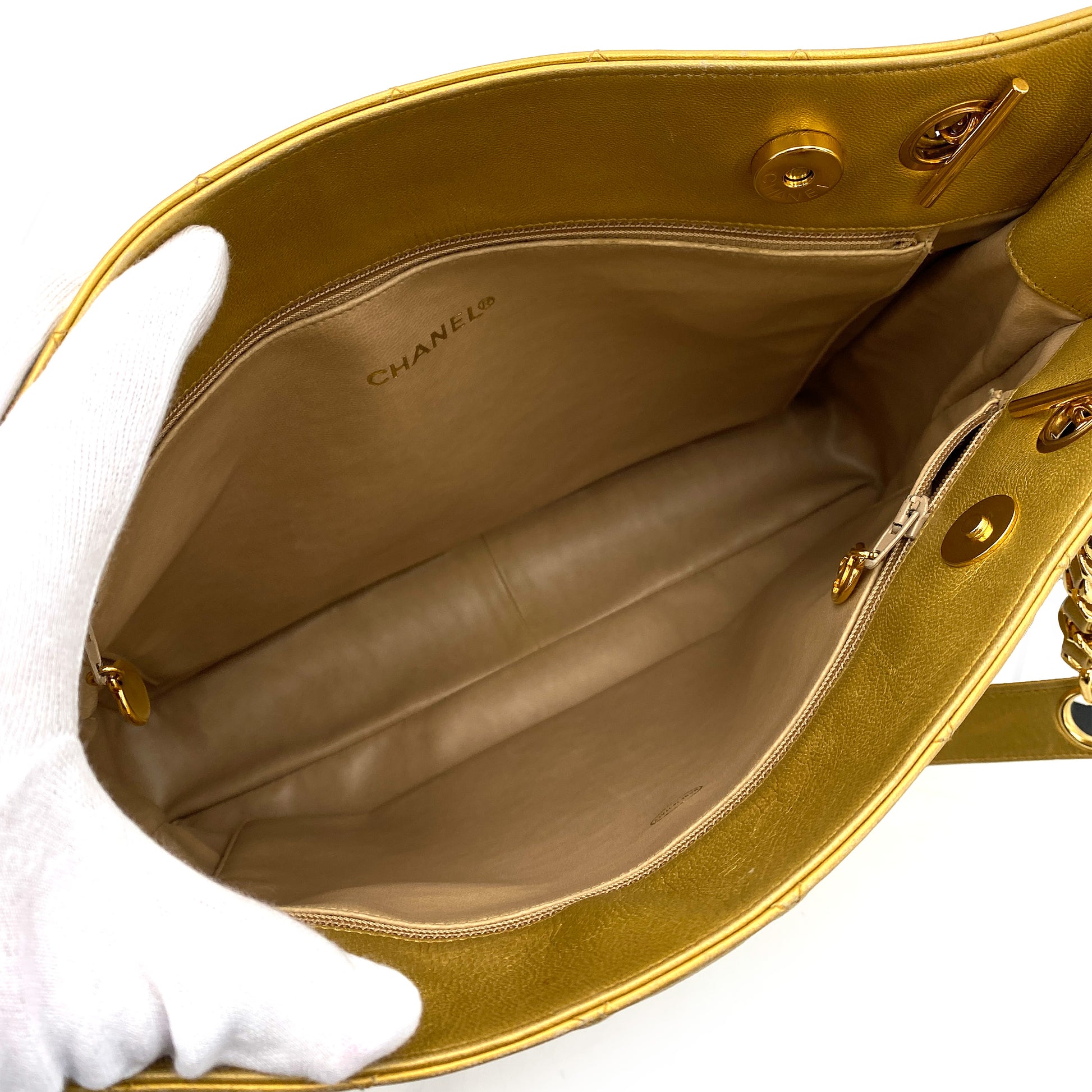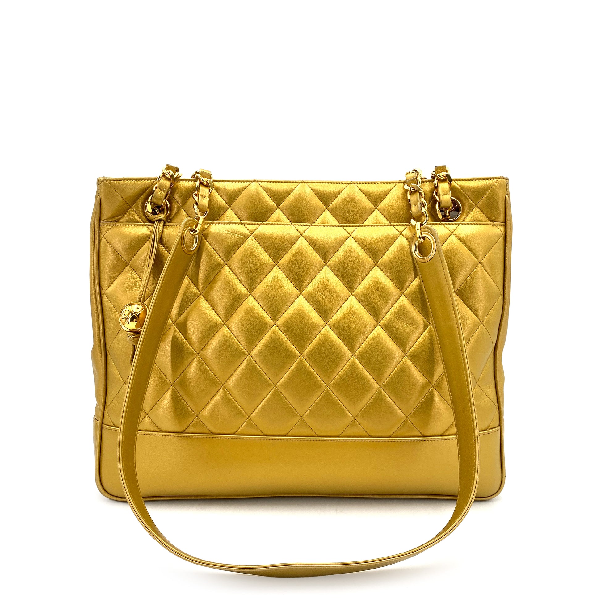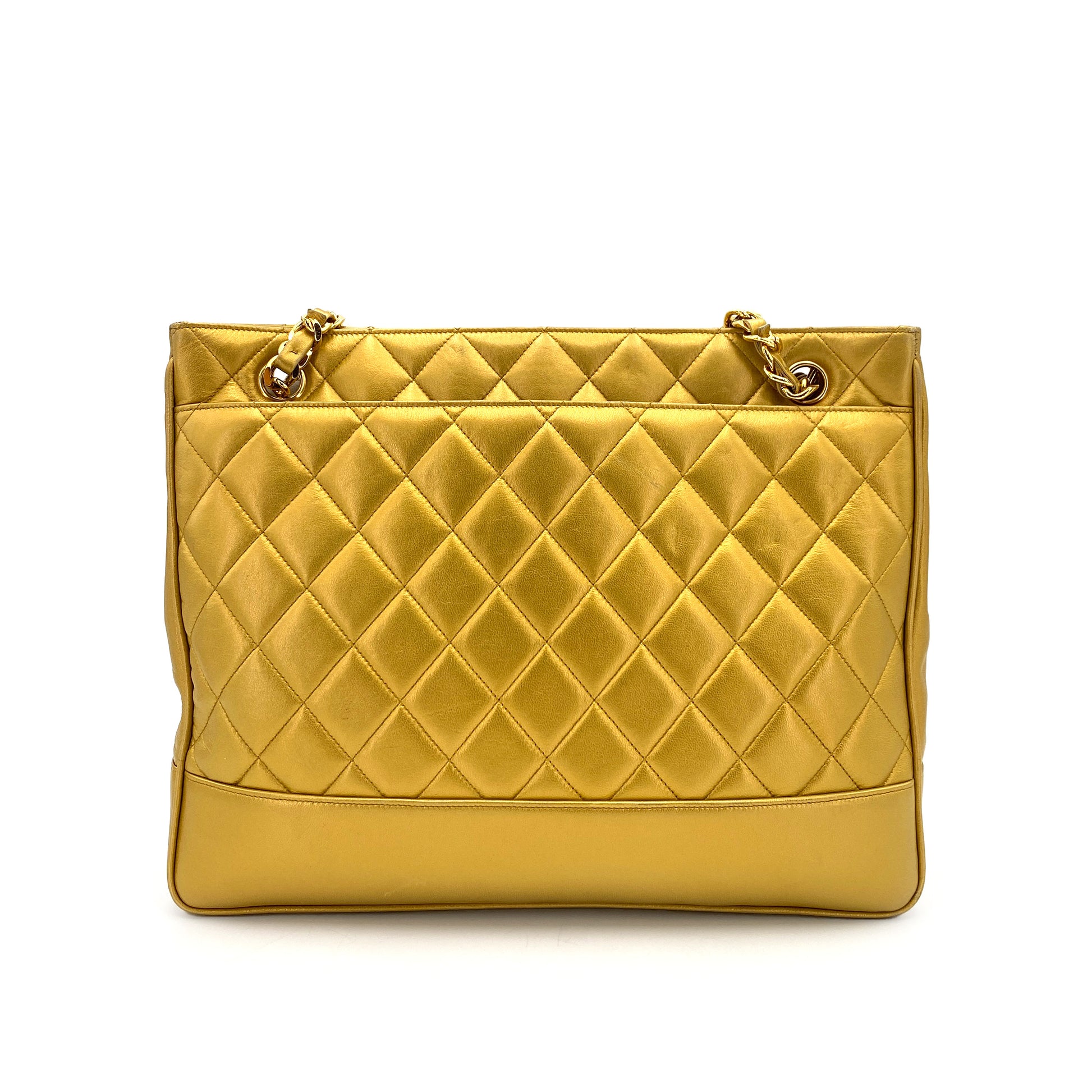 CHANEL VINTAGE MATELASSE CHAIN TOTE BAG GOLD LAMB SKIN 90243554