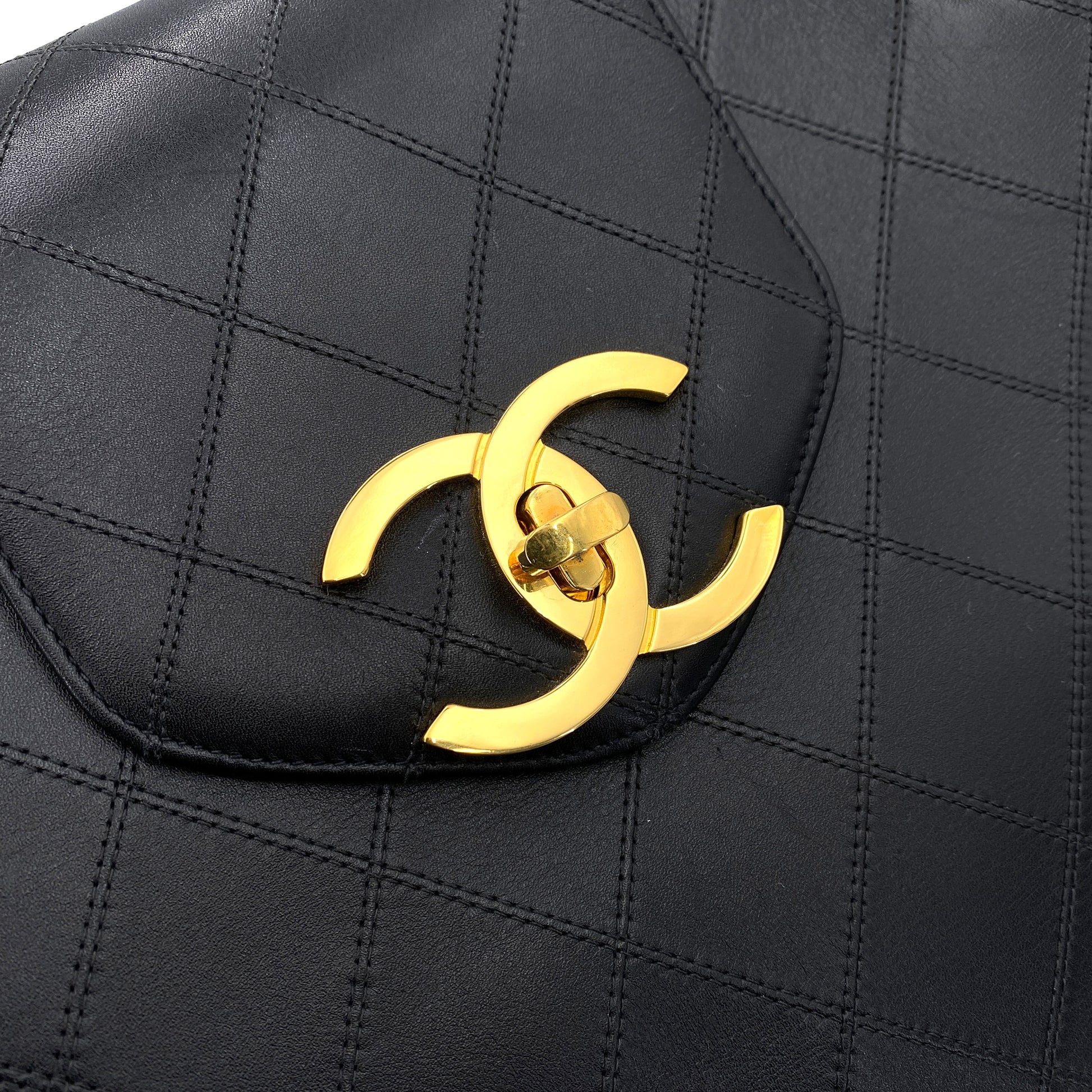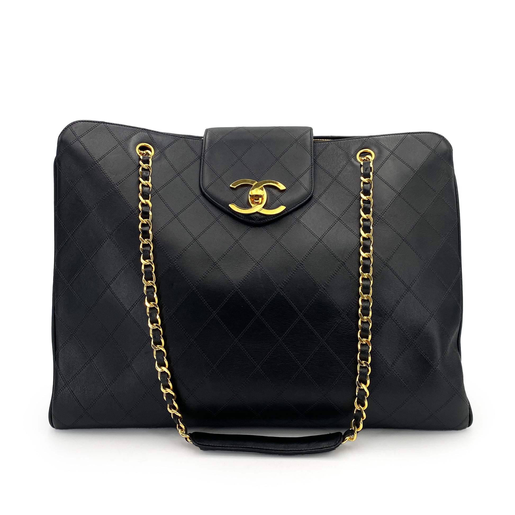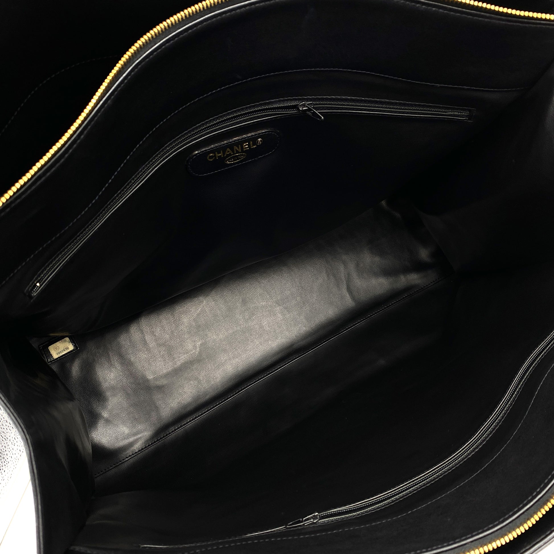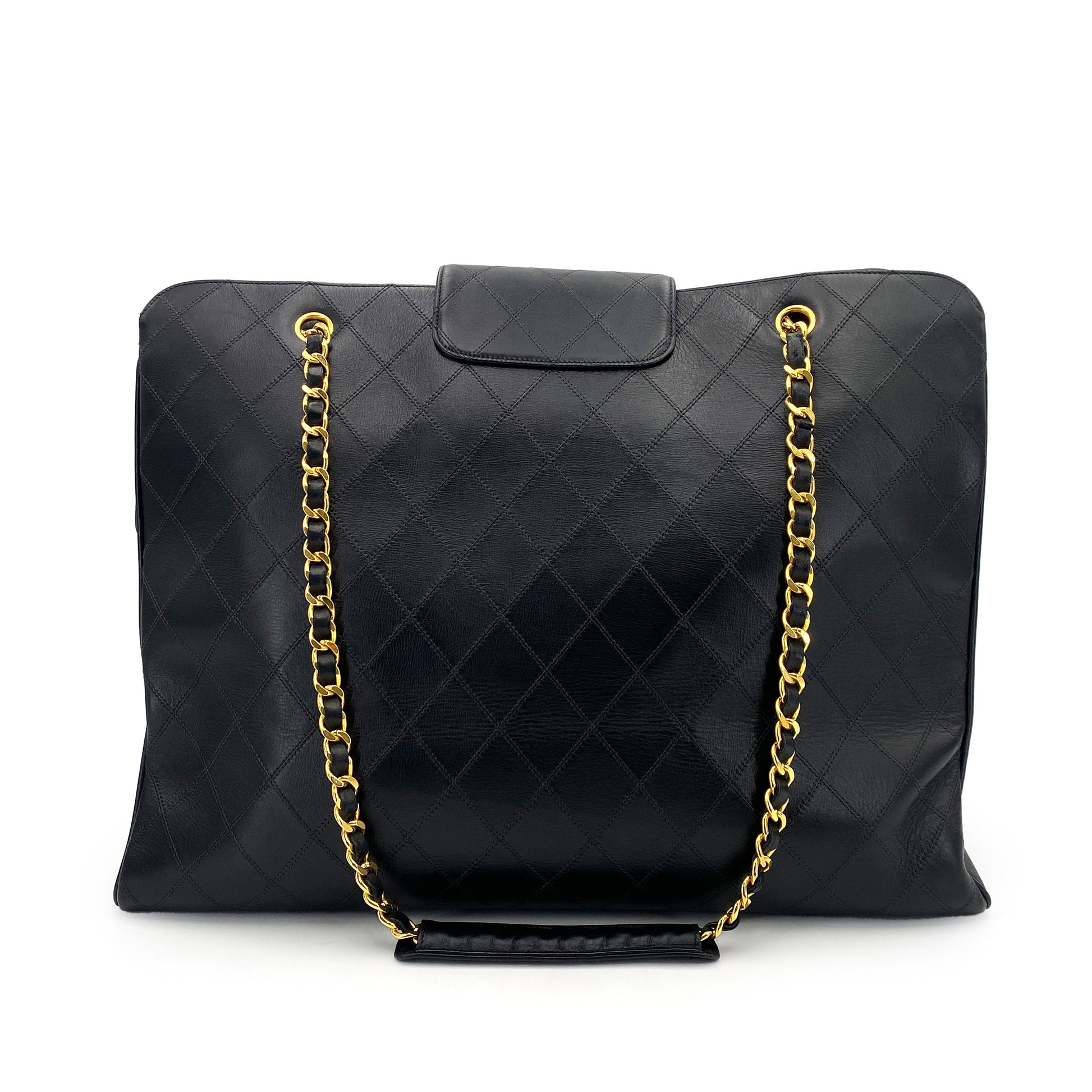 CHANEL VINTAGE SUPER MODEL BICOLORE CHAIN TOTE BAG BLACK LAMB SKIN 90243559