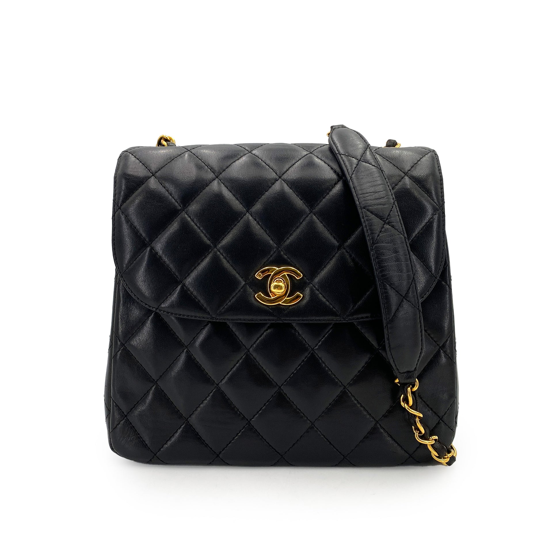 CHANEL VINTAGE MATELASSE CHAIN SHOULDER BAG BLACK LAMB SKIN 90244696