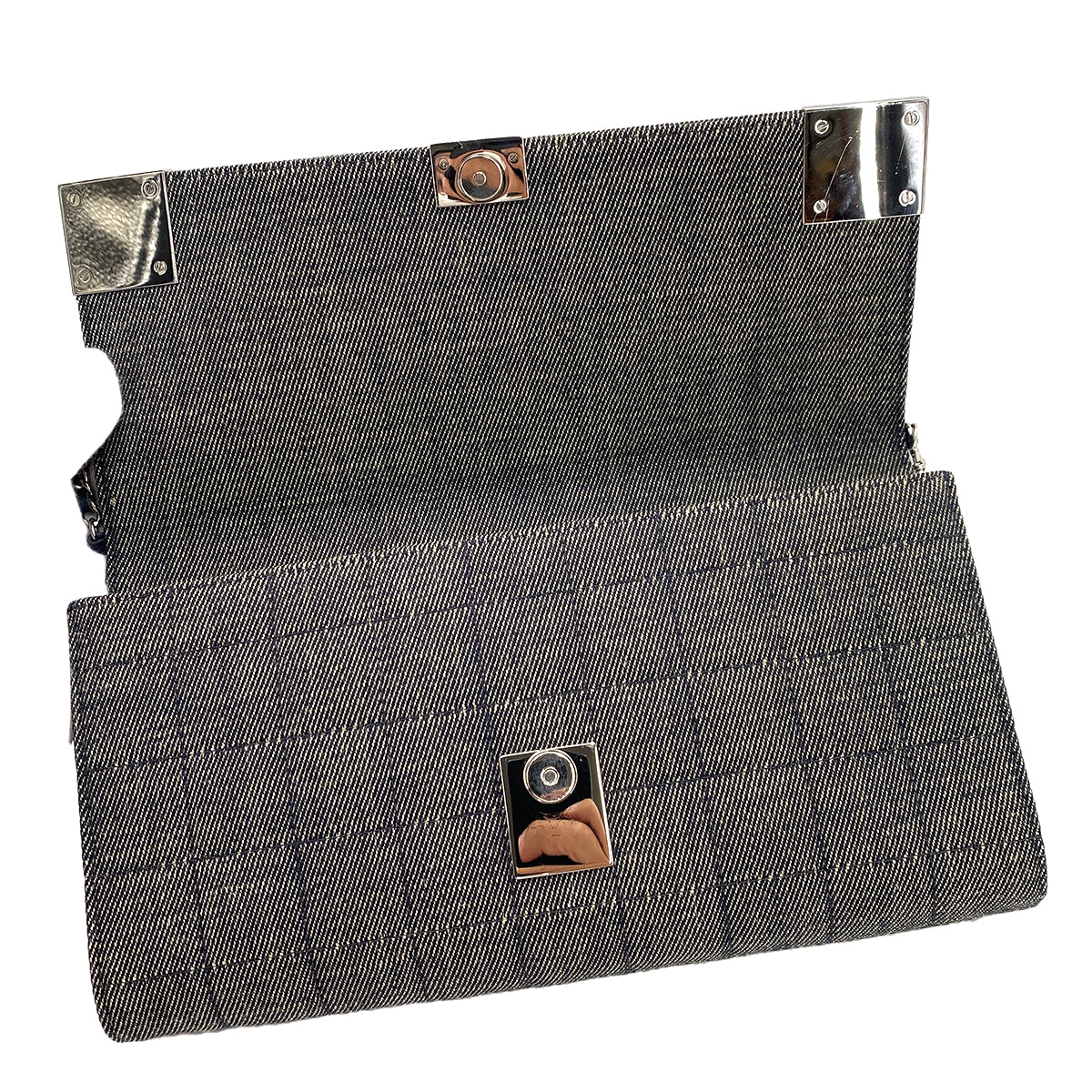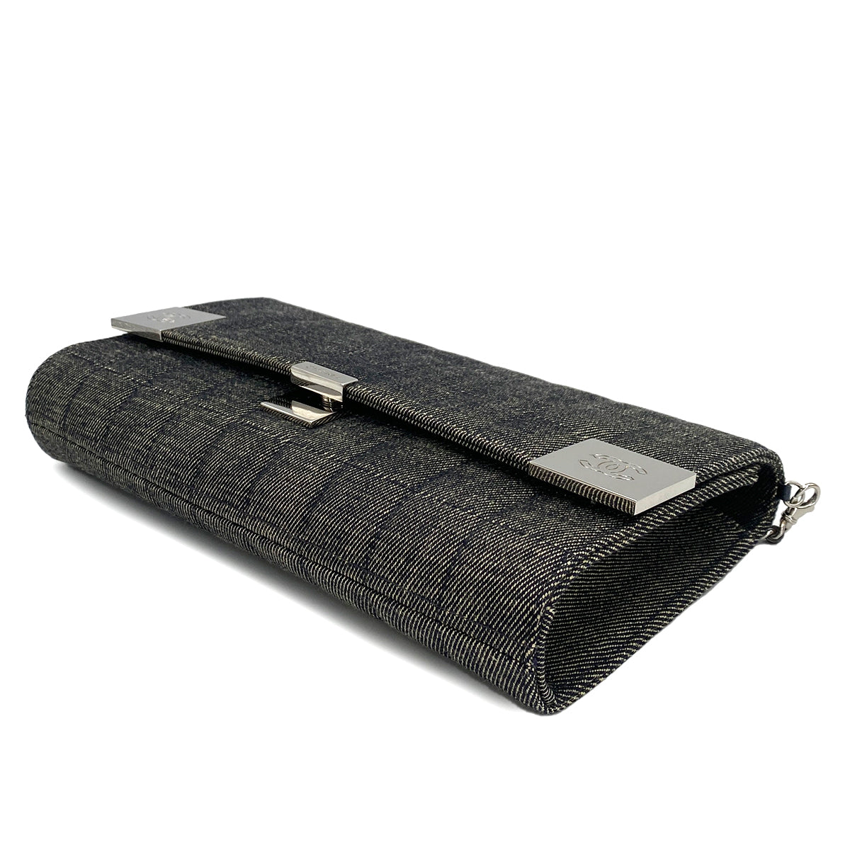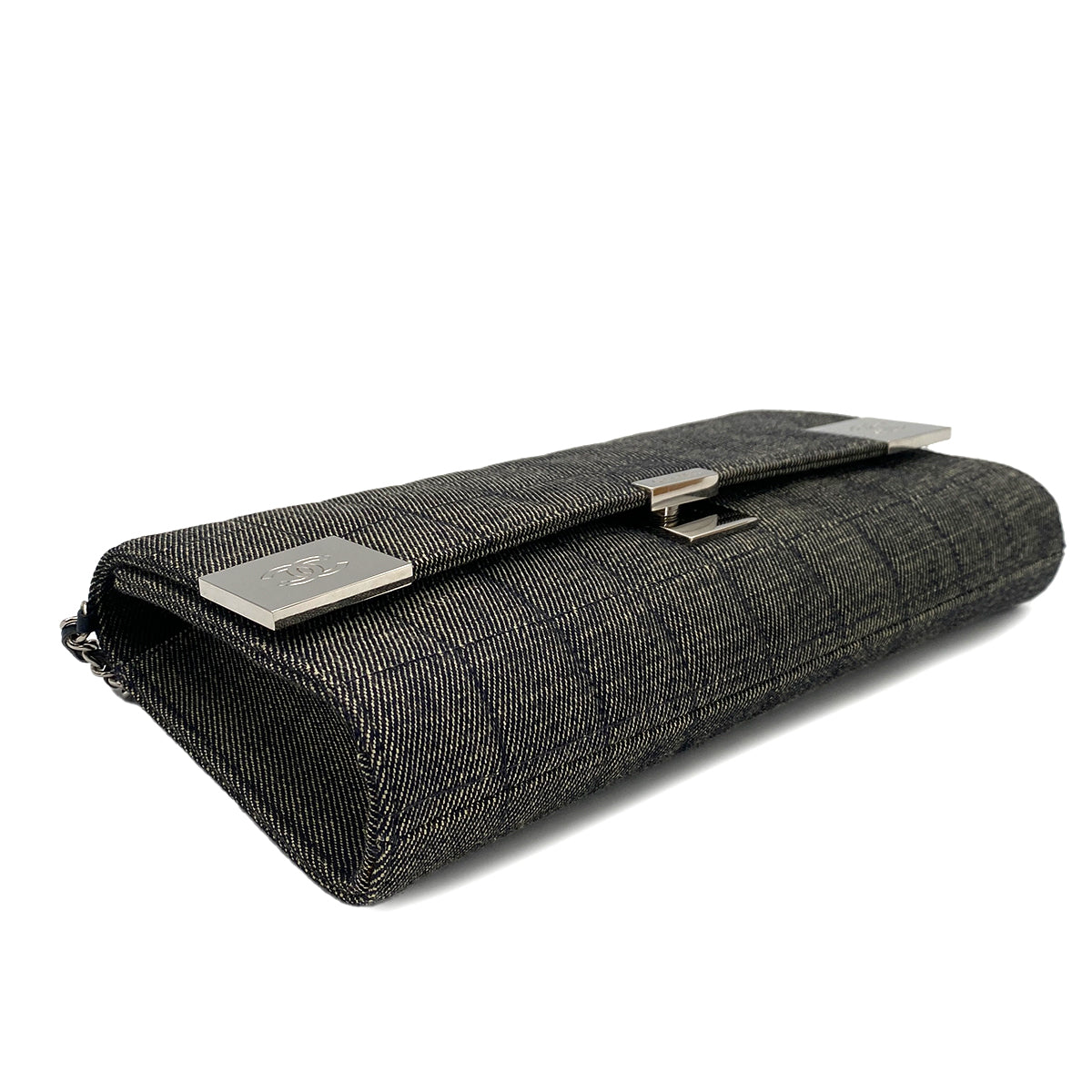 CHANEL VINTAGE CHOCOLATE BAR CHAIN SHOULDER BAG BLACK DENIM 90245044