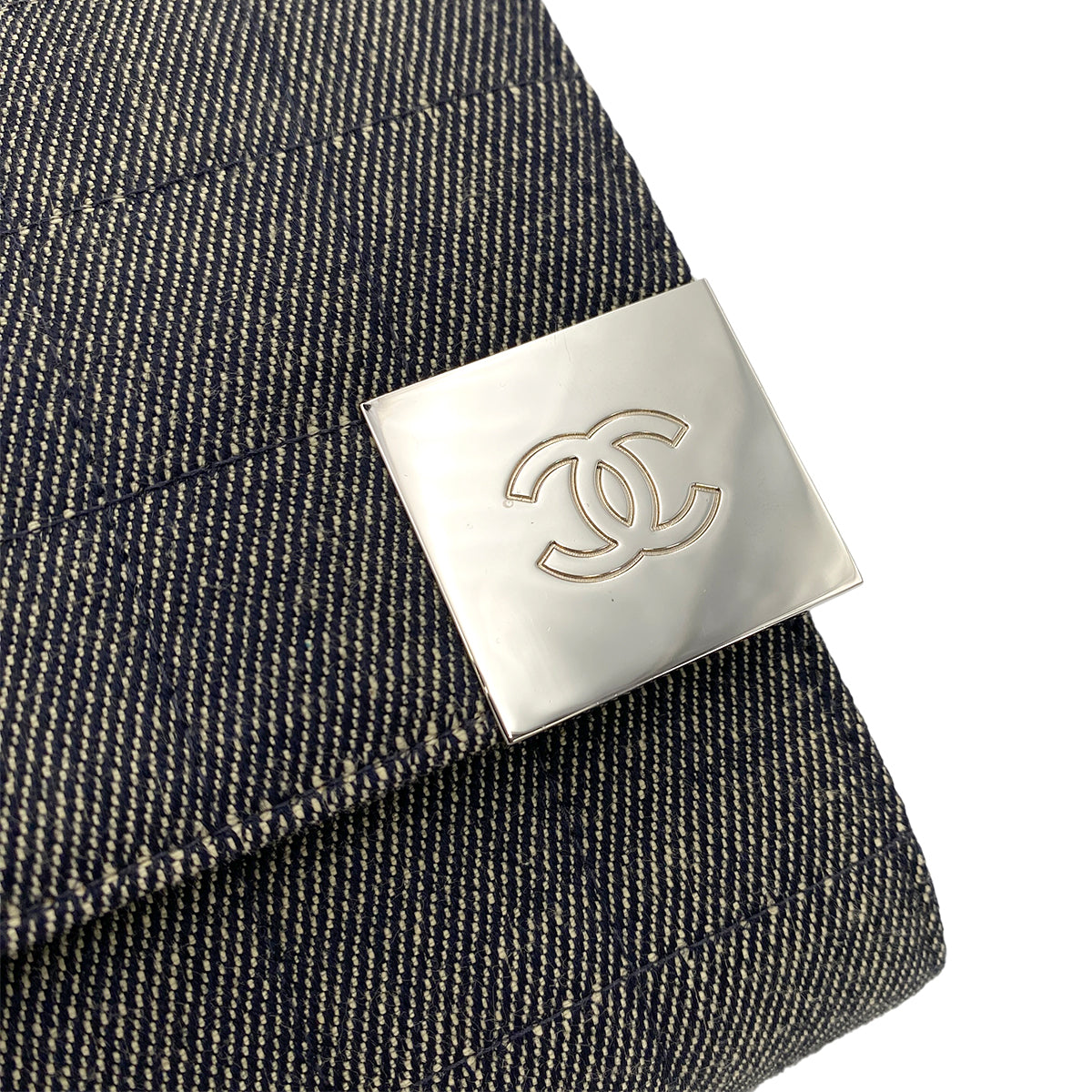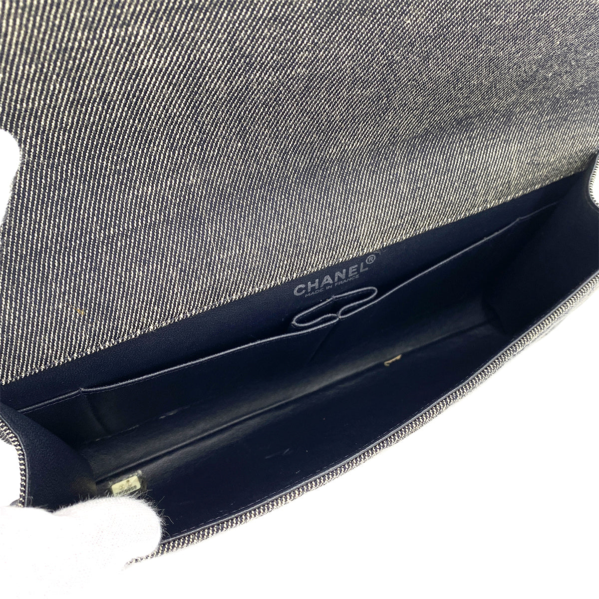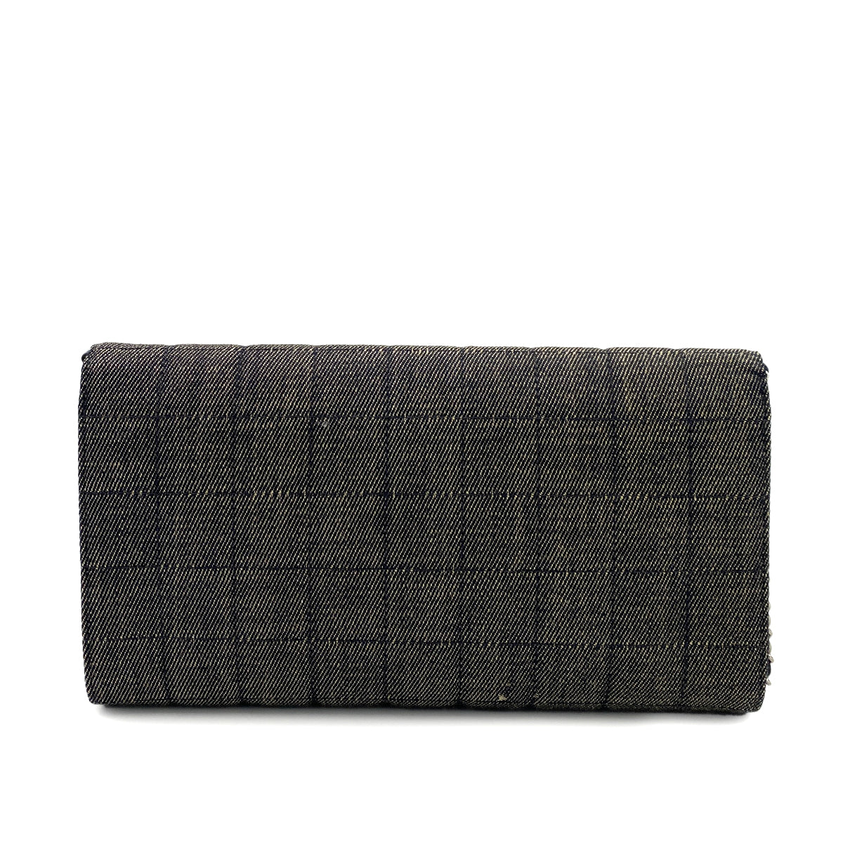 CHANEL VINTAGE CHOCOLATE BAR CHAIN SHOULDER BAG BLACK DENIM 90245044
