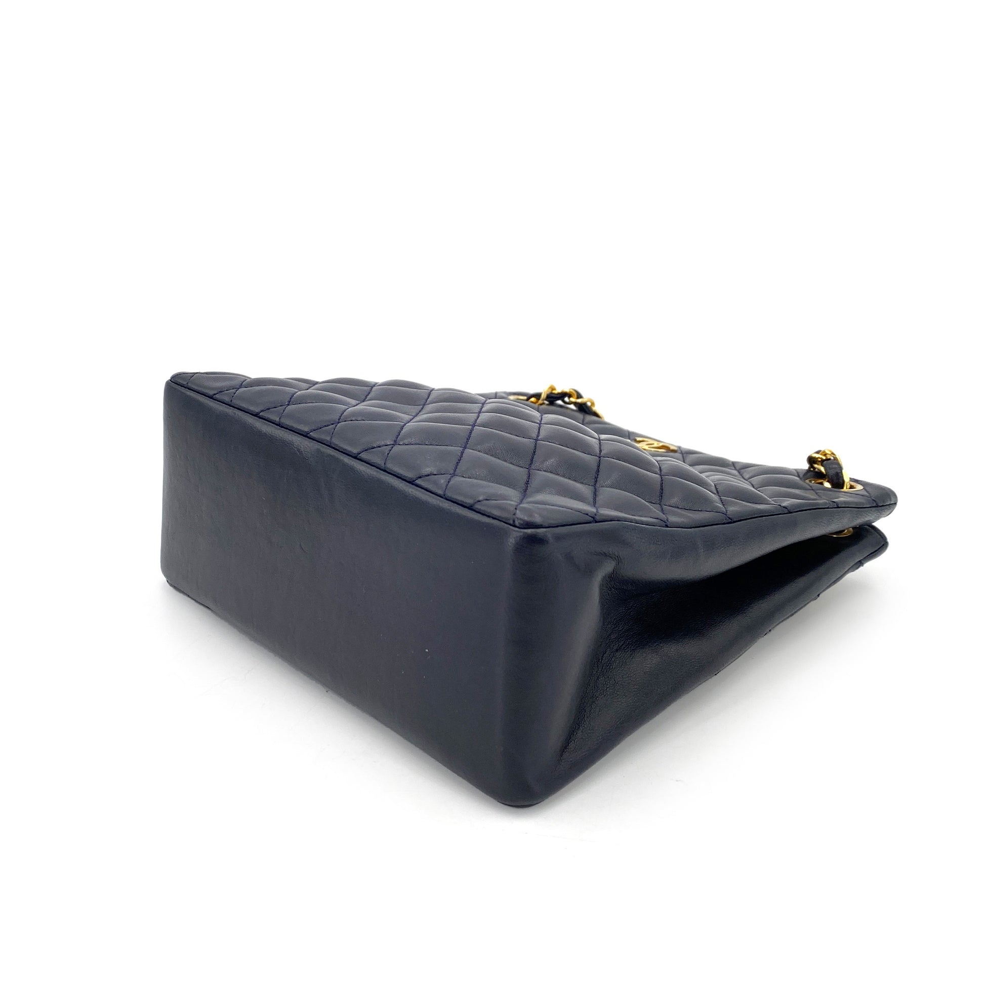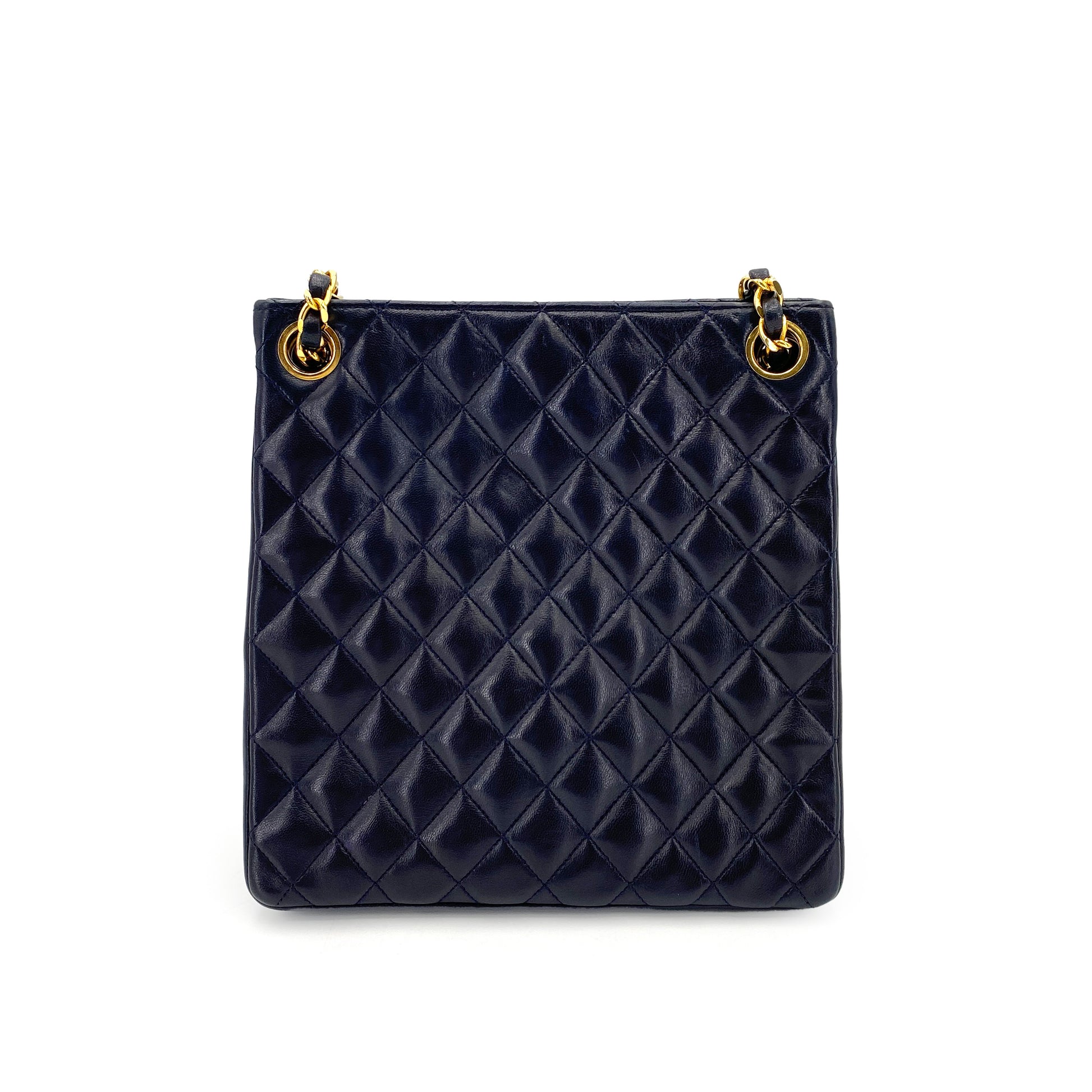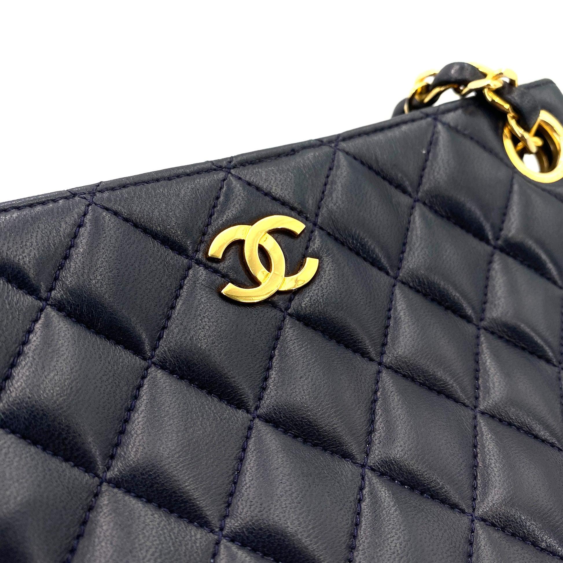 CHANEL VINTAGE MATELASSE CHAIN TOTE BAG NAVY LAMB SKIN 90245061