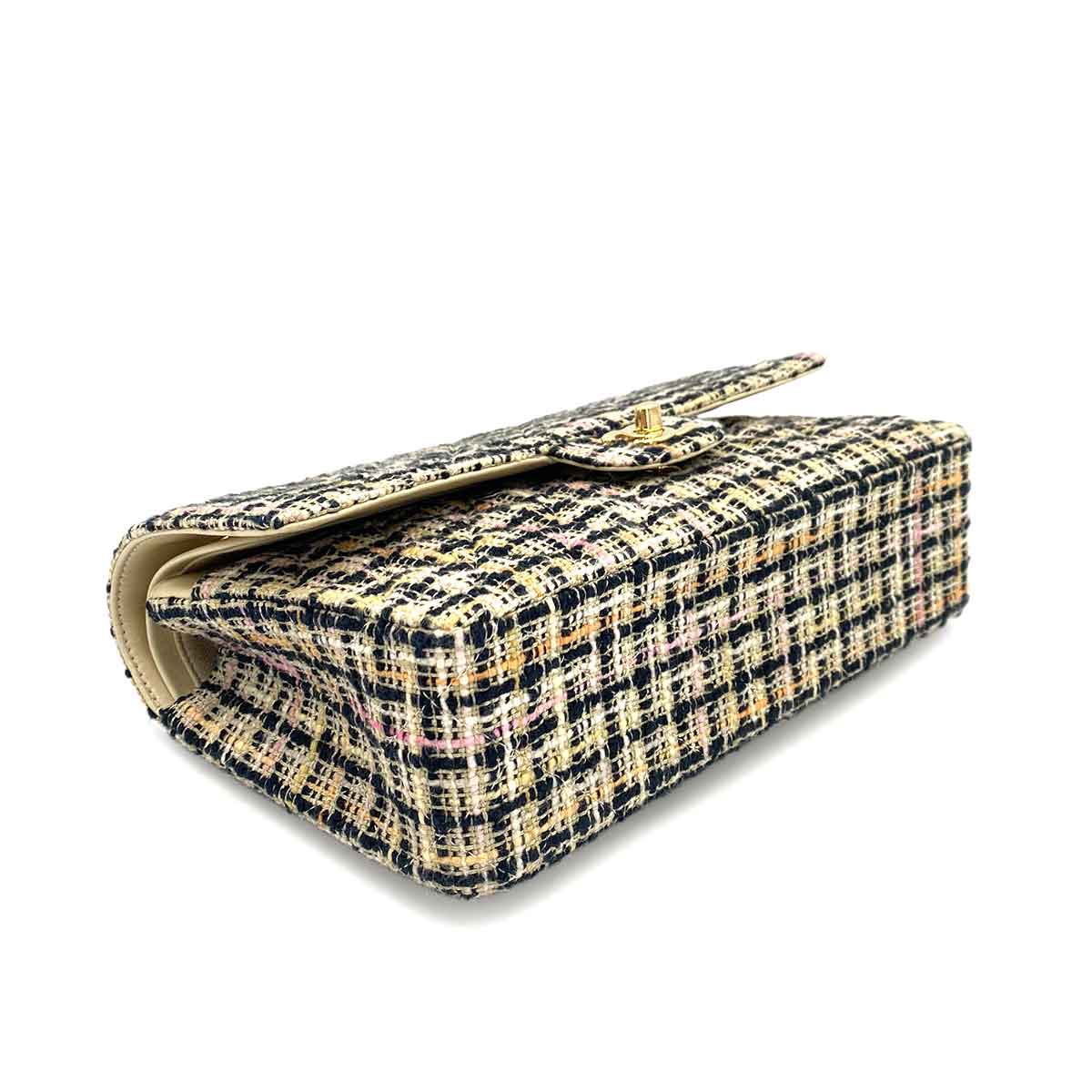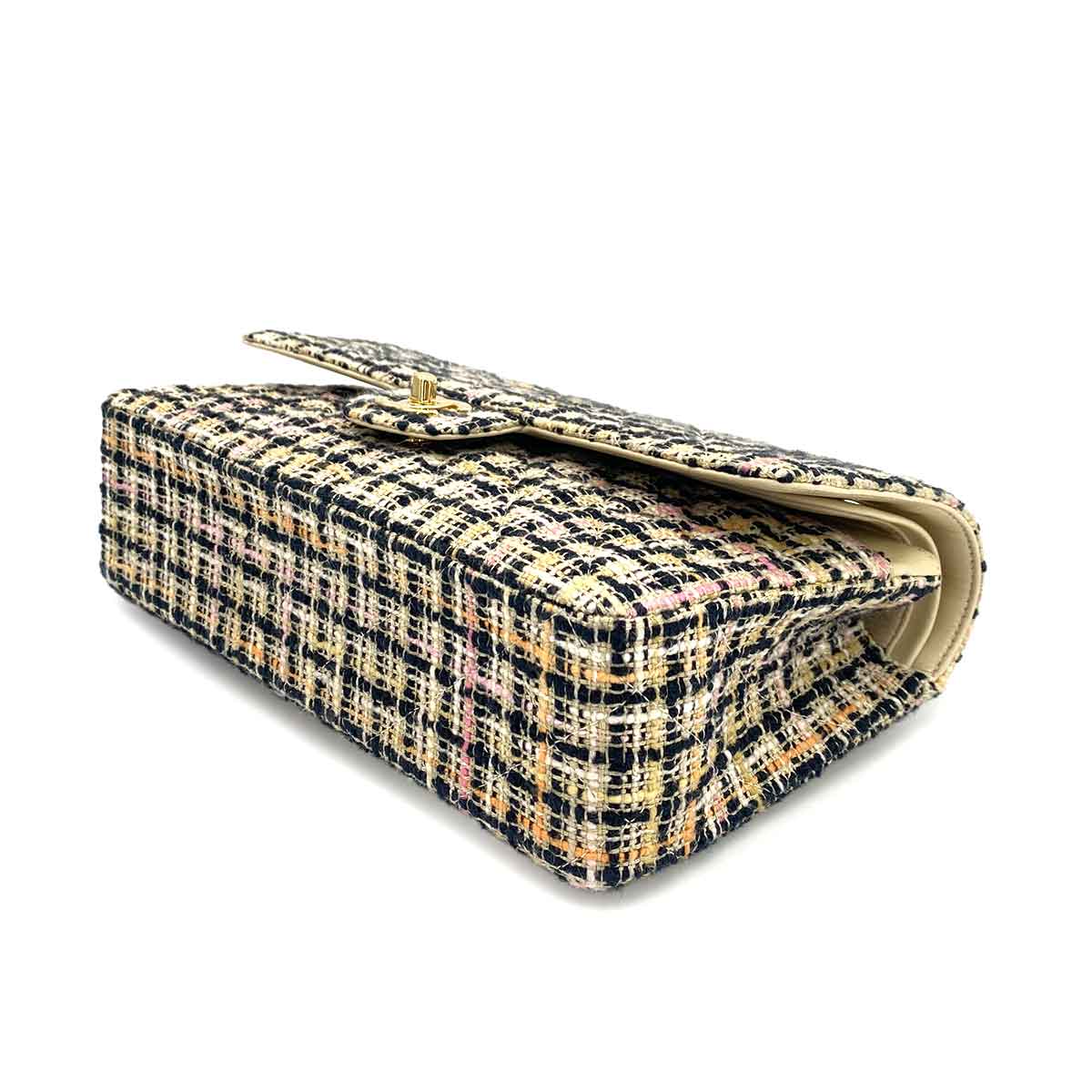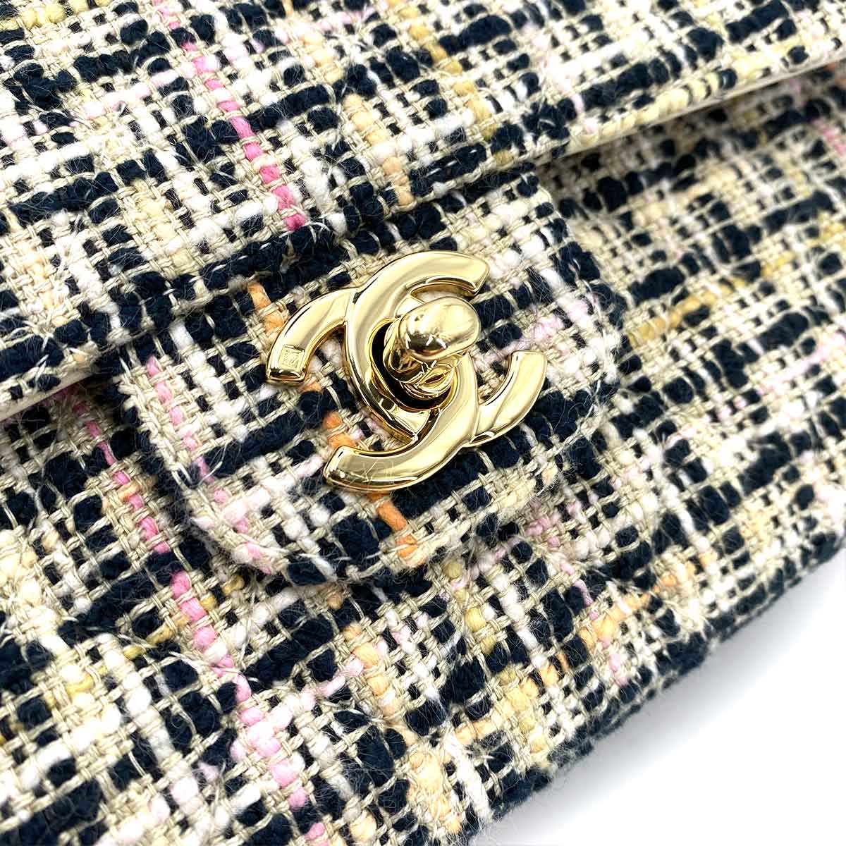 CHANEL VINTAGE CLASSIC FLAP MEDIUM CHAIN SHOULDER BAG BLACK WHITE TWEED 90245645
