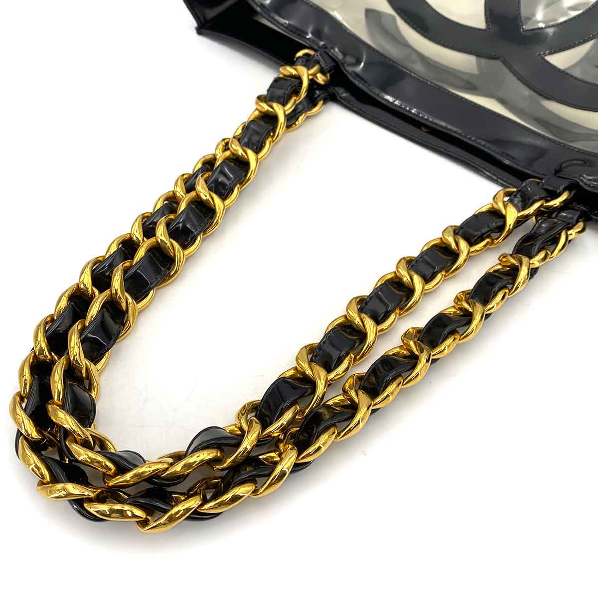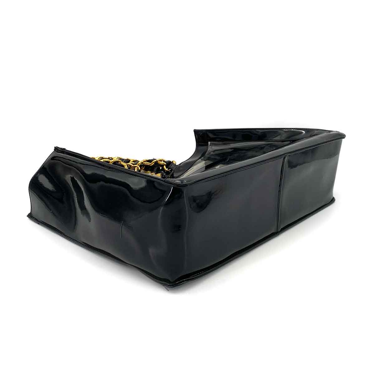 CHANEL VINTAGE COCO CLEAR CHAIN SHOULDER BAG BLACK VINYL 90245666