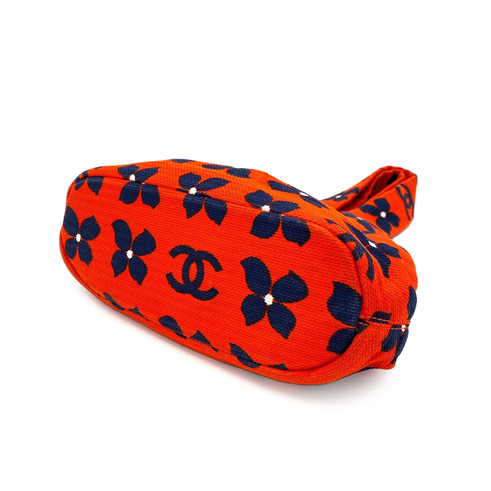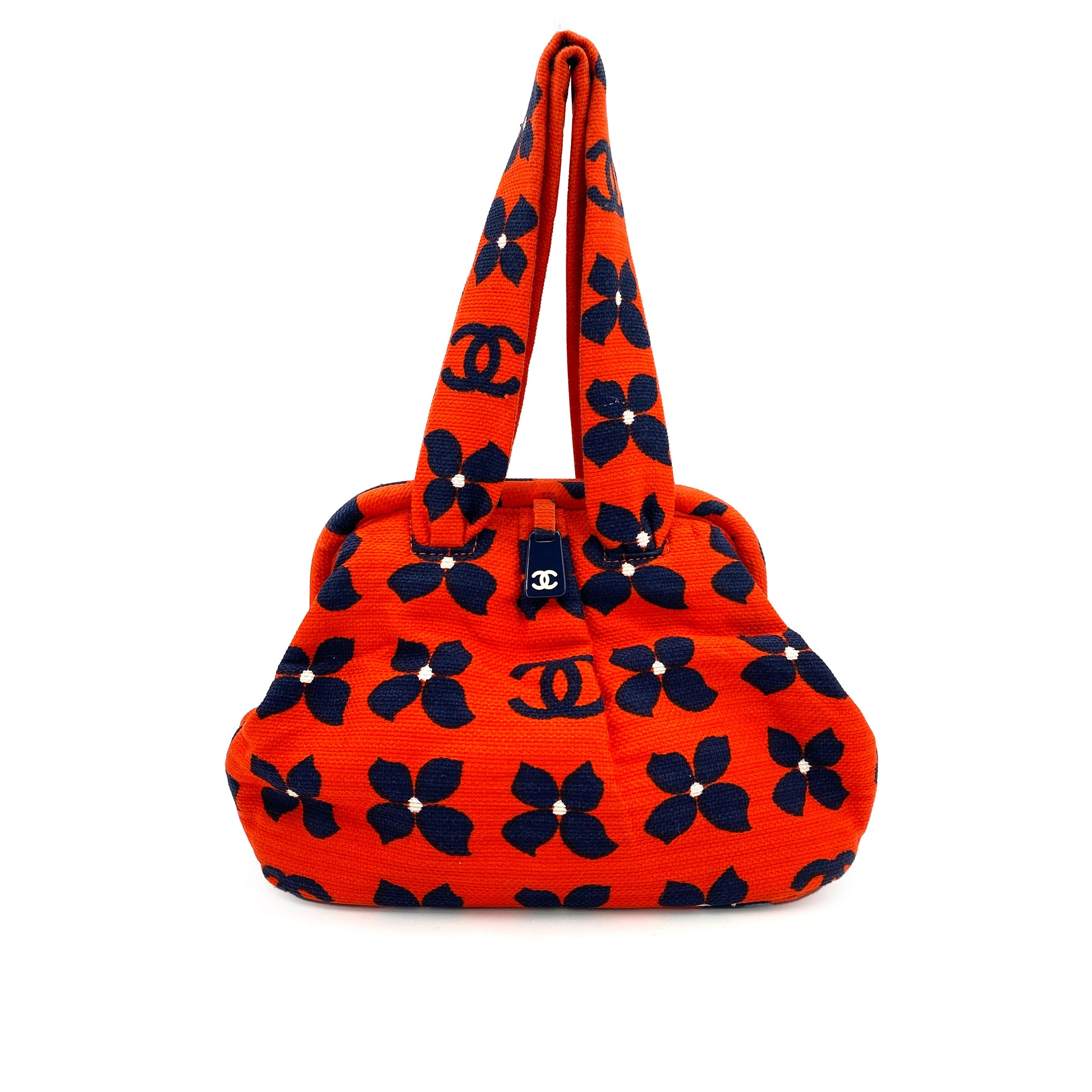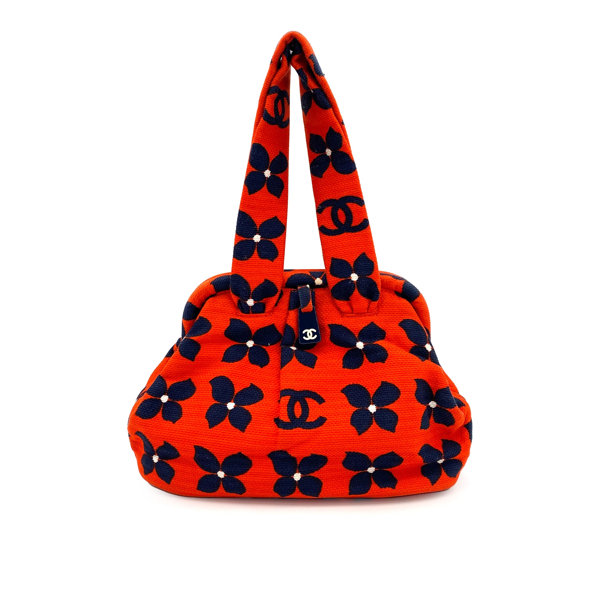 CHANEL VINTAGE FLOWER COCOMARK HAND BAG RED NAVY CANVAS 90245786