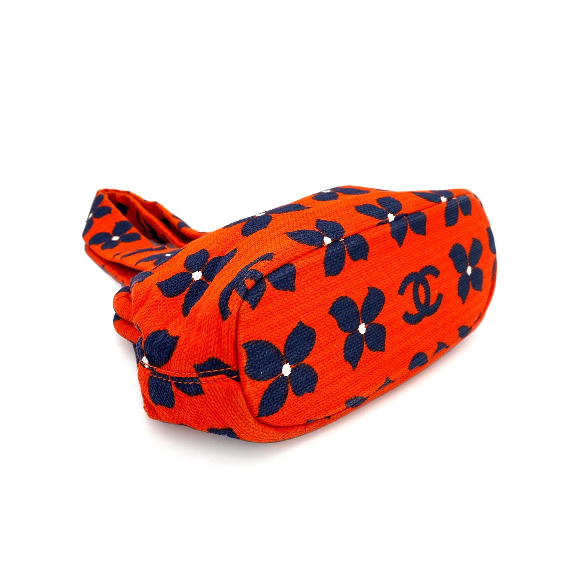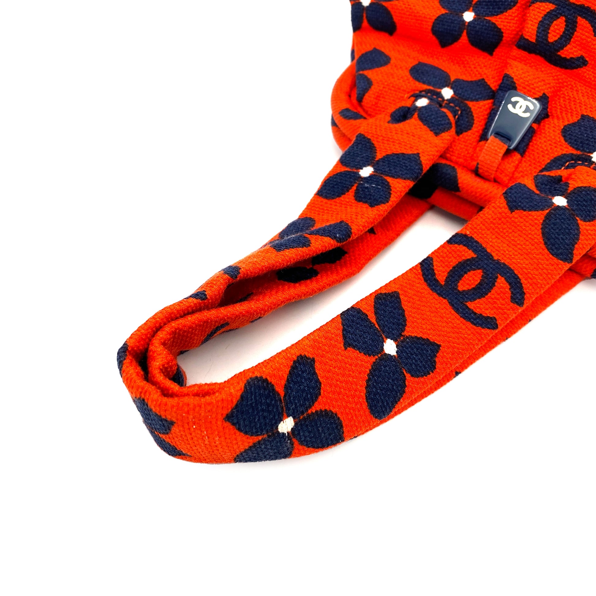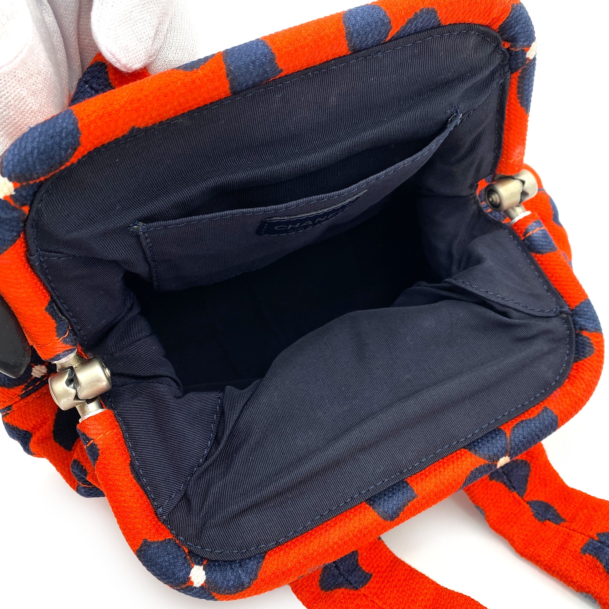 CHANEL VINTAGE FLOWER COCOMARK HAND BAG RED NAVY CANVAS 90245786