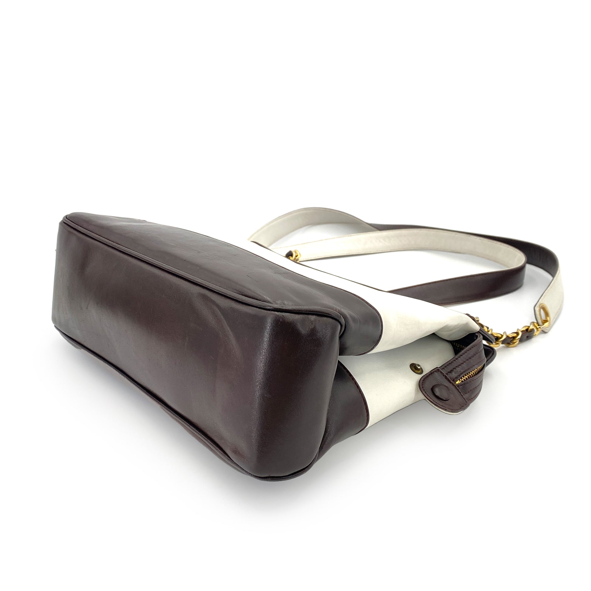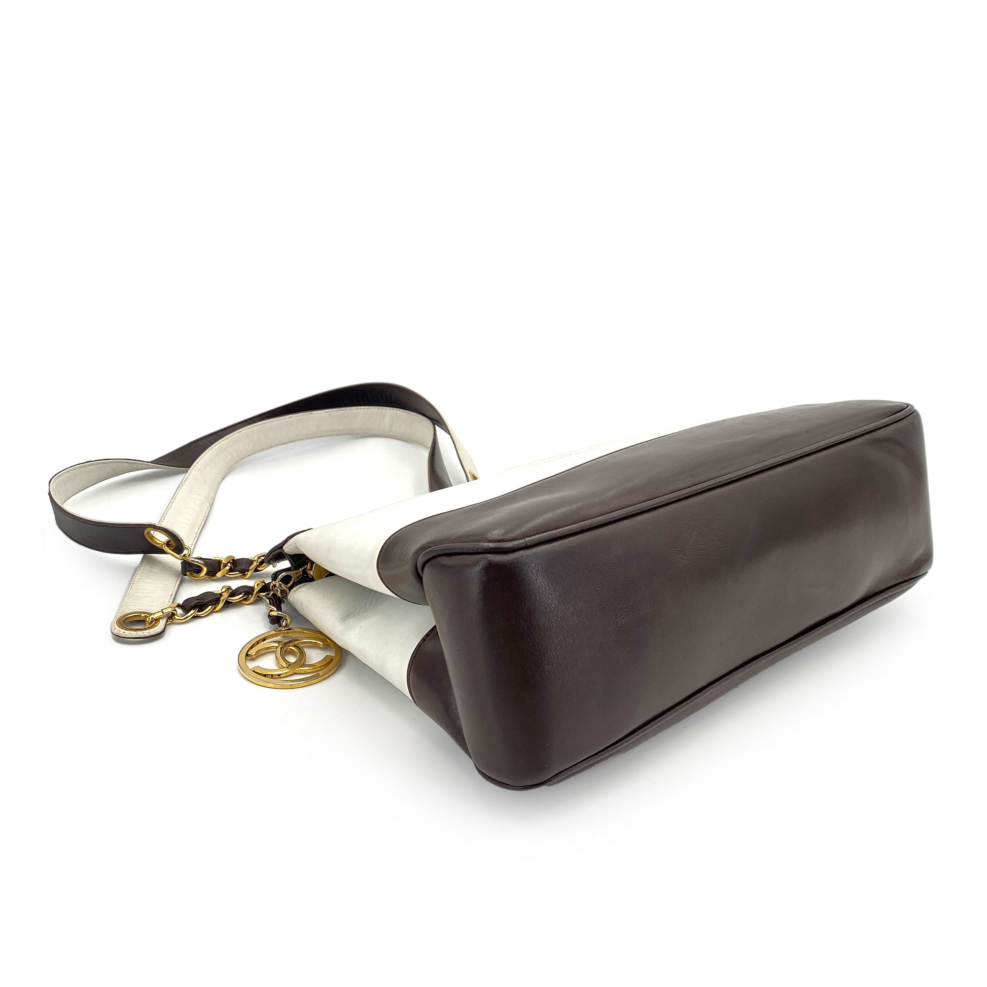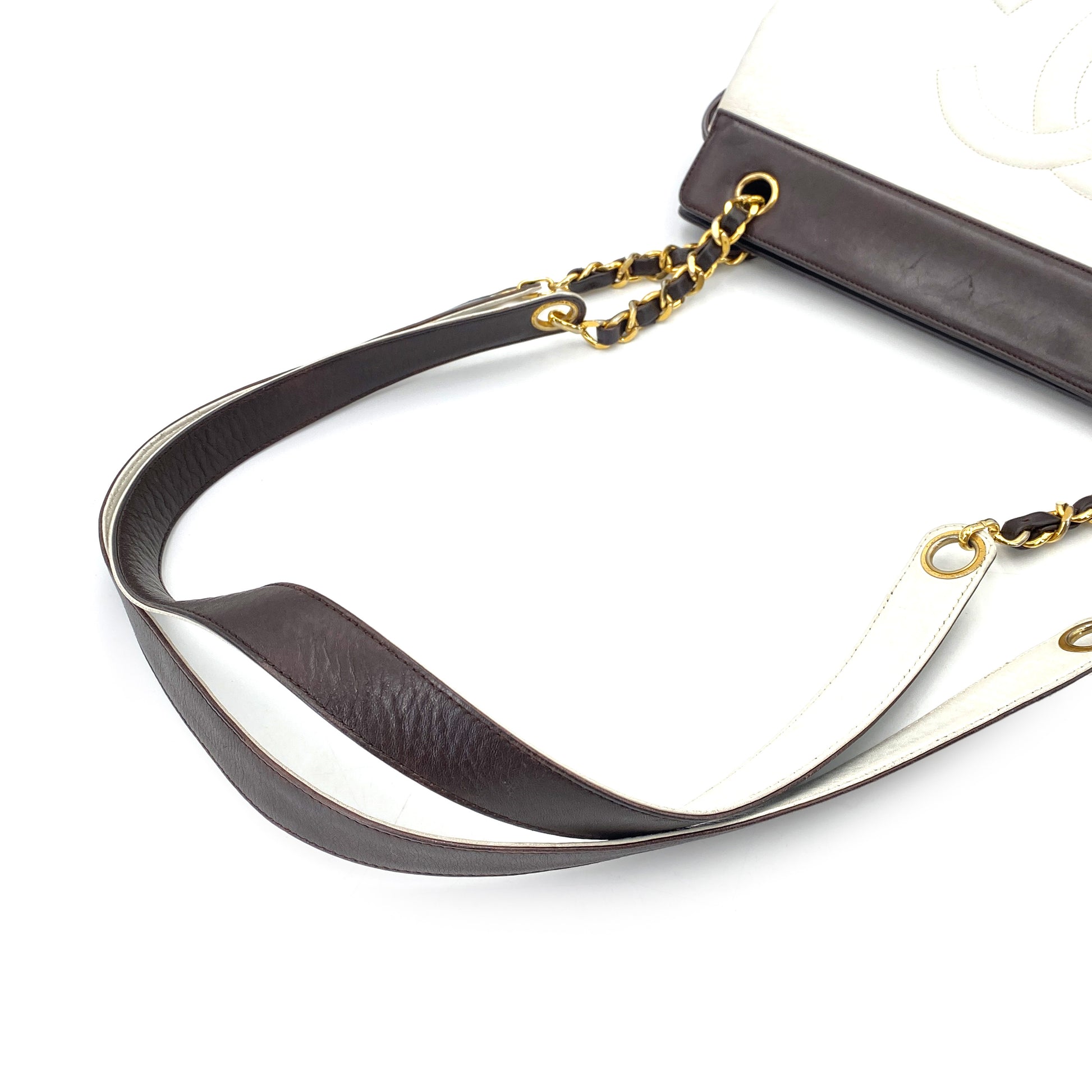 CHANEL VINTAGE BIG COCO CHAIN TOTE BAG BROWN WHITE LAMB SKIN 90245798
