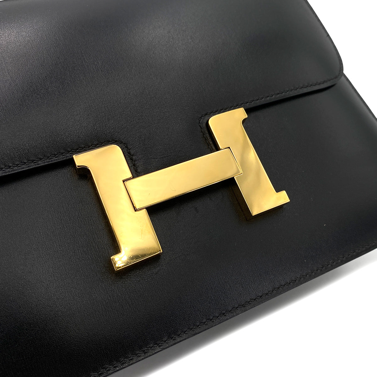 HERMES CONSTANCE 24 BLACK BOXCALF SHOULDER BAG □E 90246343