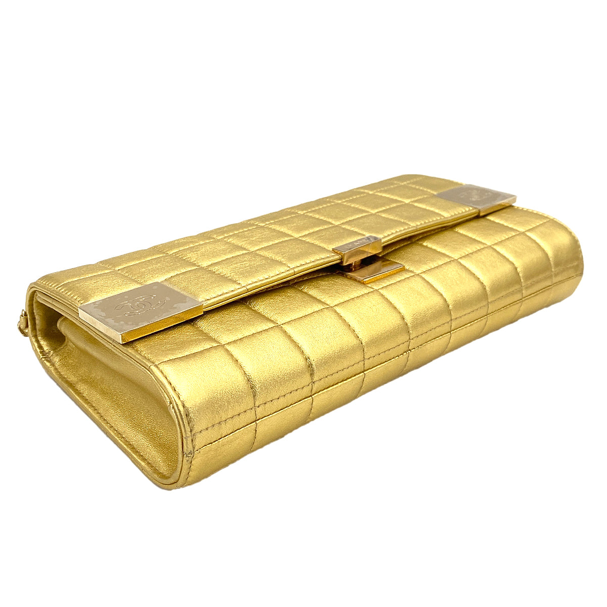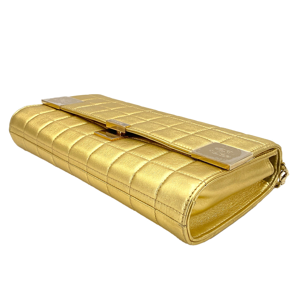CHANEL VINTAGE CHOCOLATE BAR CHAIN SHOULDER BAG GOLD LAMB SKIN 90246916