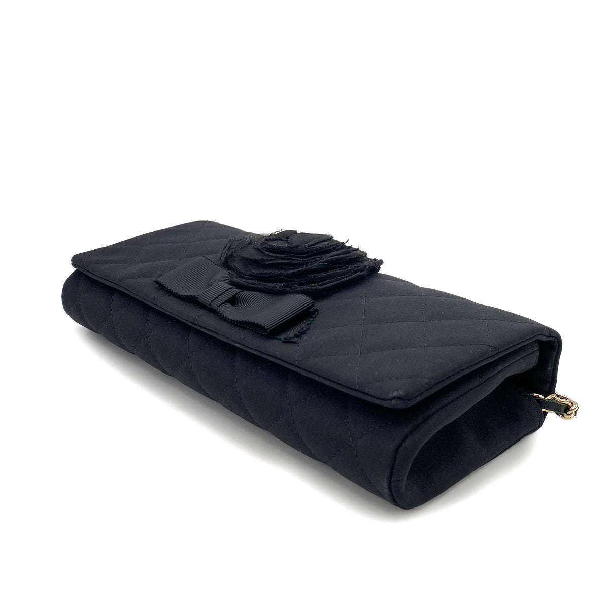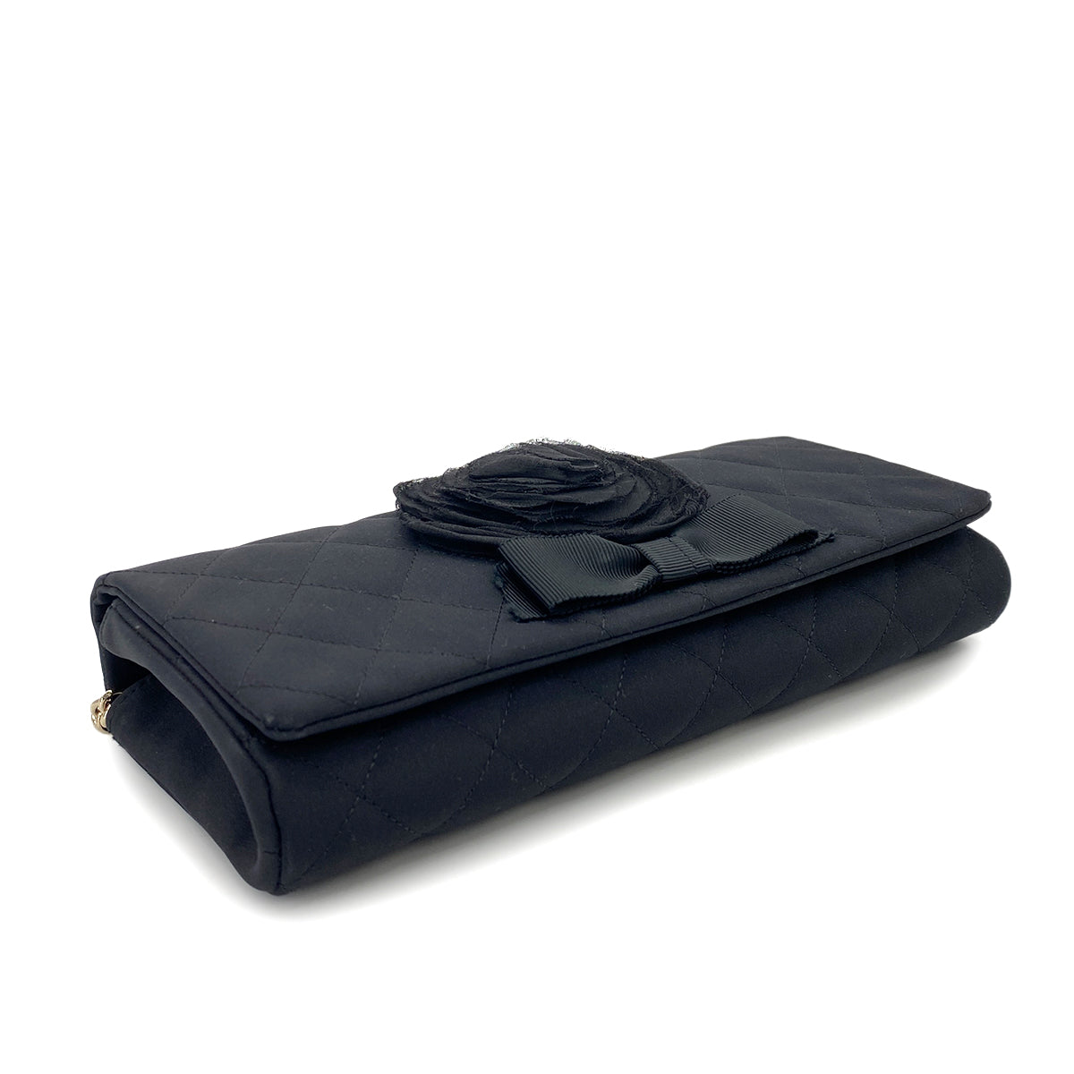 CHANEL VINTAGE CAMELLIA FLOWER CHAIN SHOULDER BAG BLACK SATIN 90247103