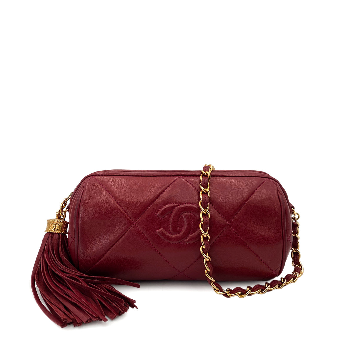 CHANEL VINTAGE FRINGE CHAIN SHOULDER BAG RED LAMB SKIN 90247183