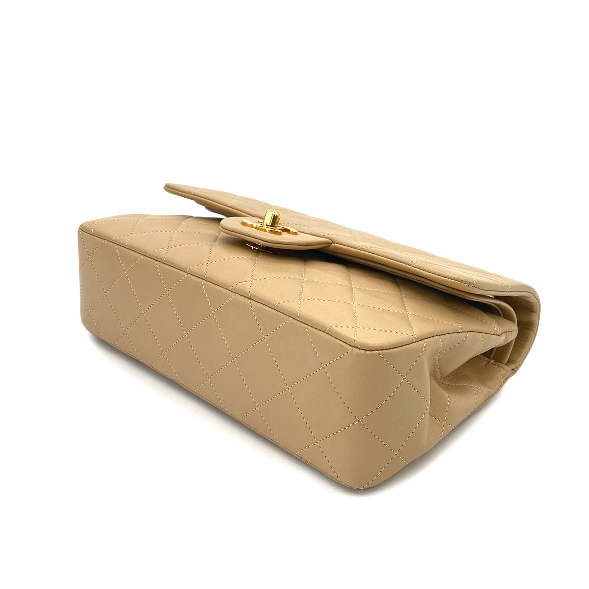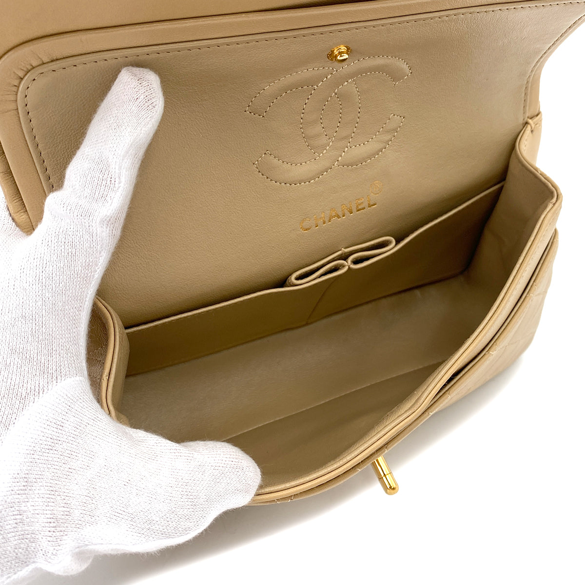CHANEL VINTAGE CLASSIC FLAP SMALL CHAIN SHOULDER BAG BEIGE LAMB SKIN 90247299