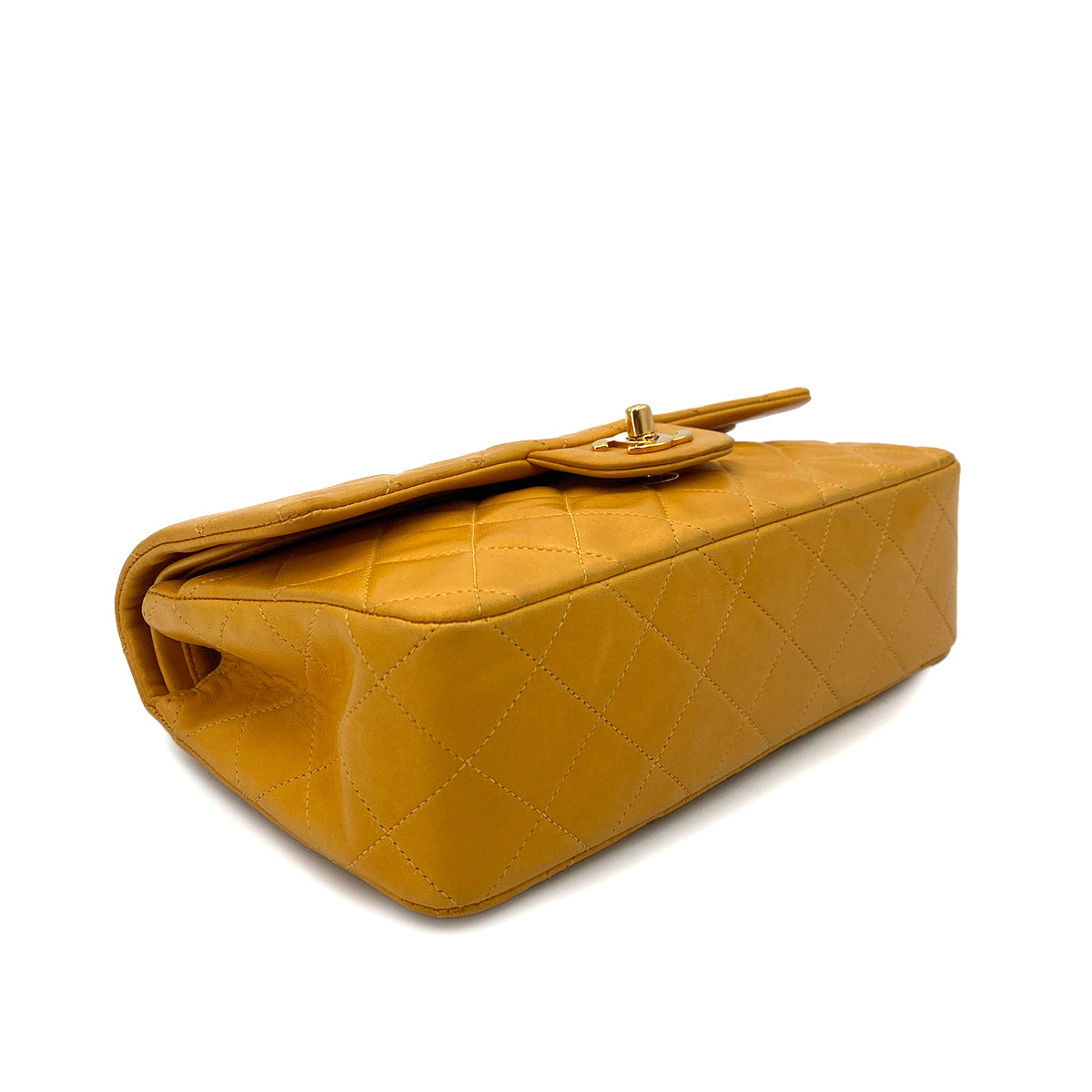 CHANEL VINTAGE CLASSIC FLAP SMALL CHAIN SHOULDER BAG YELLOW LAMB SKIN 90247320