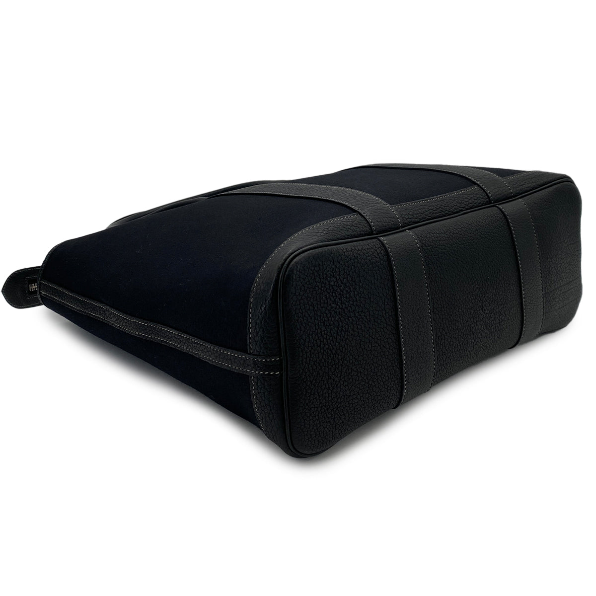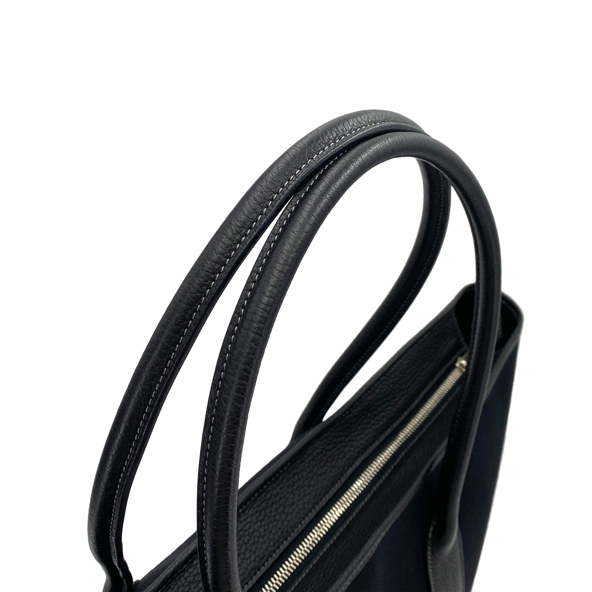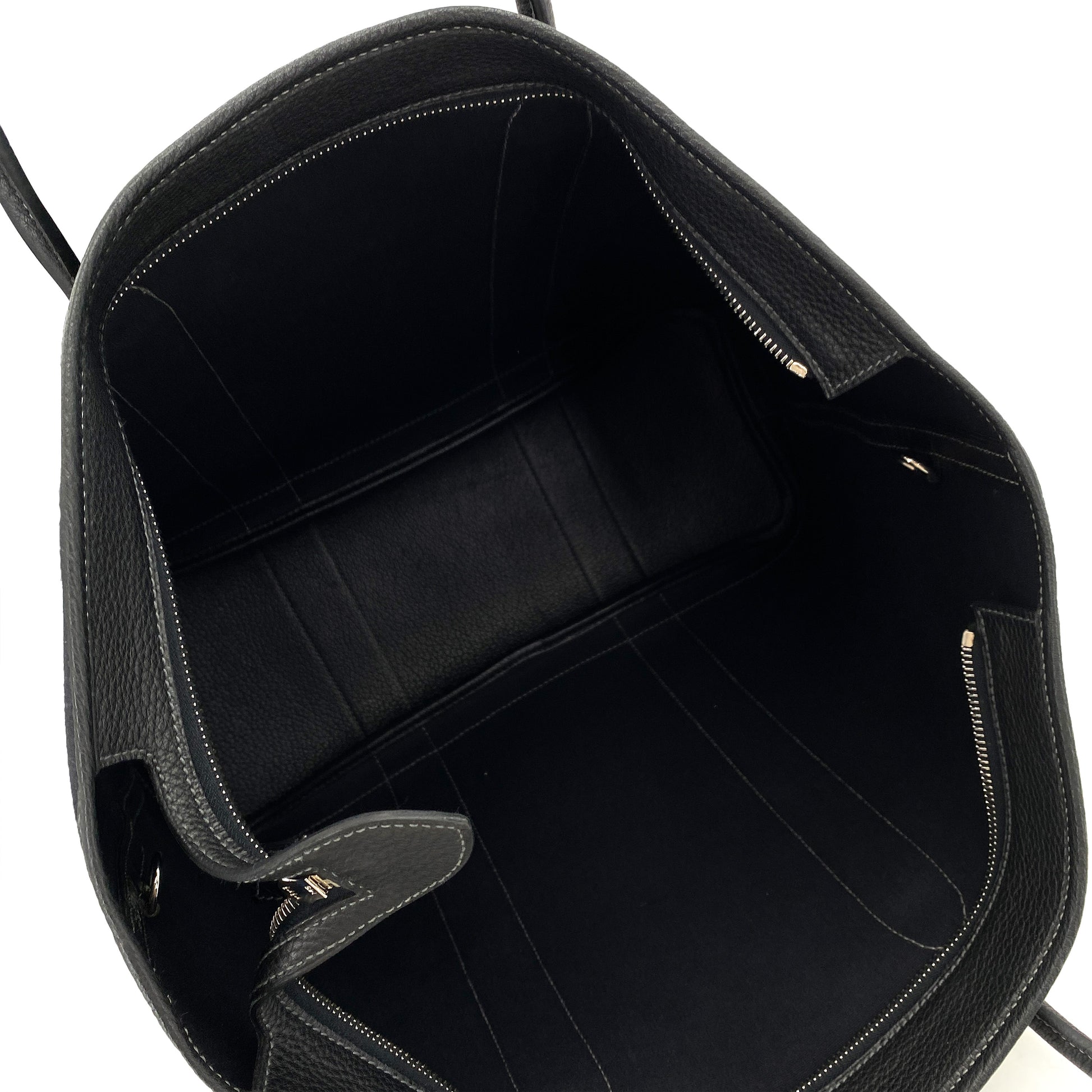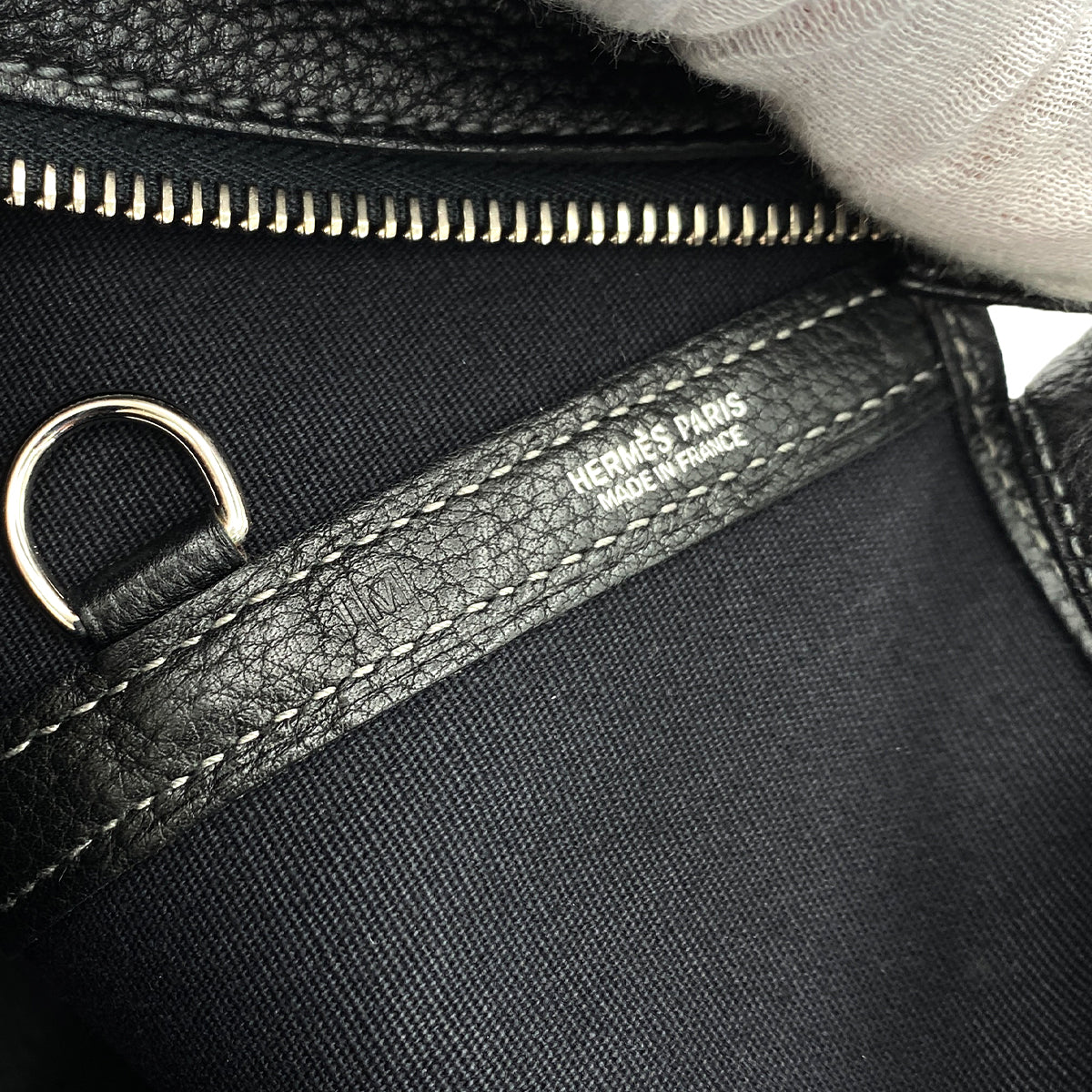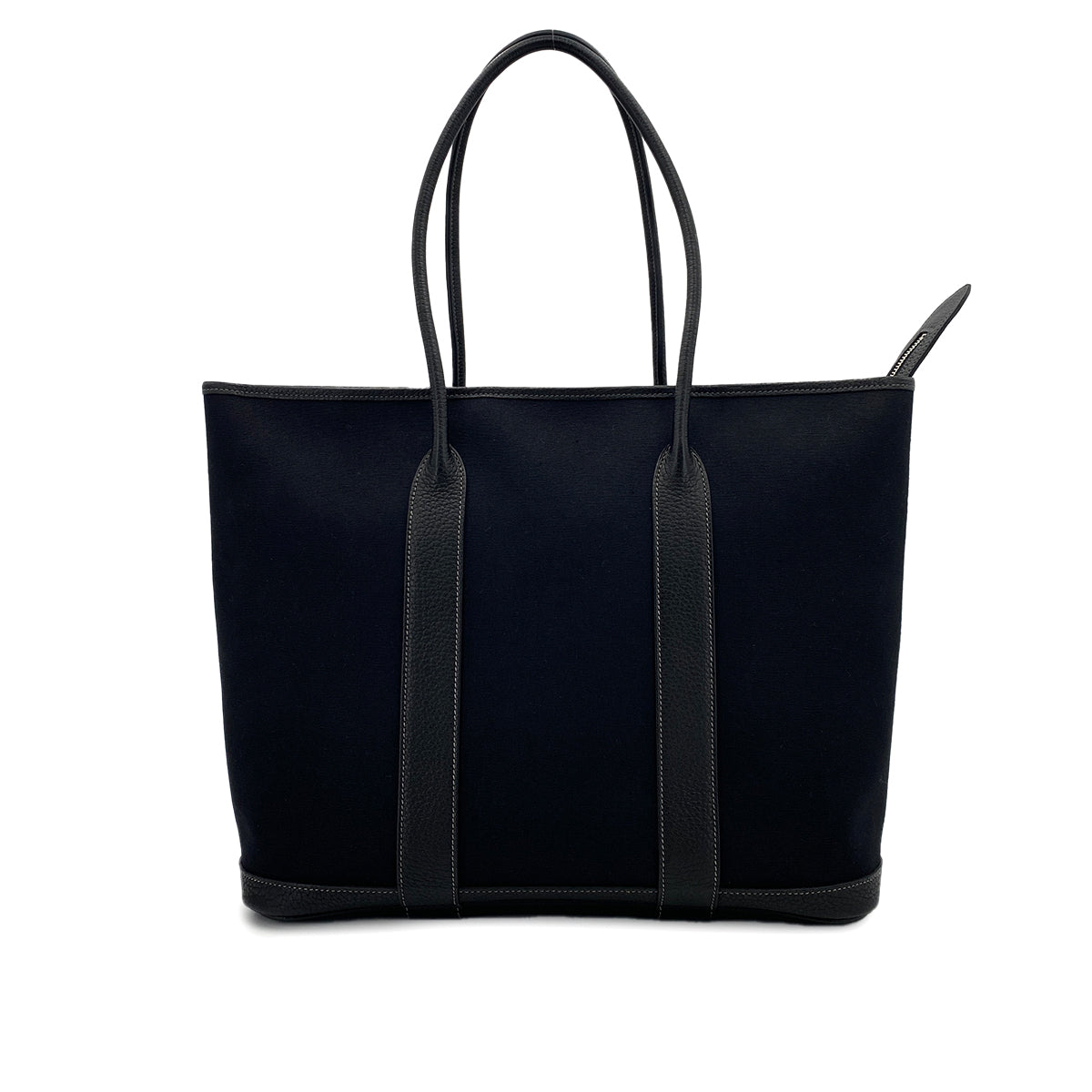 HERMES GARDEN ZIP MM BLACK TOILE OFFICIER LEATHER TOTE BAG □M 90247940