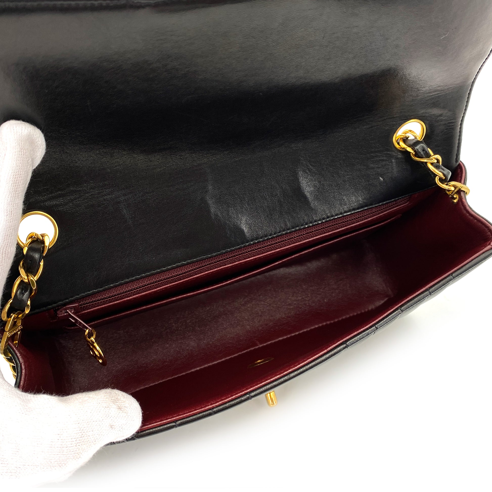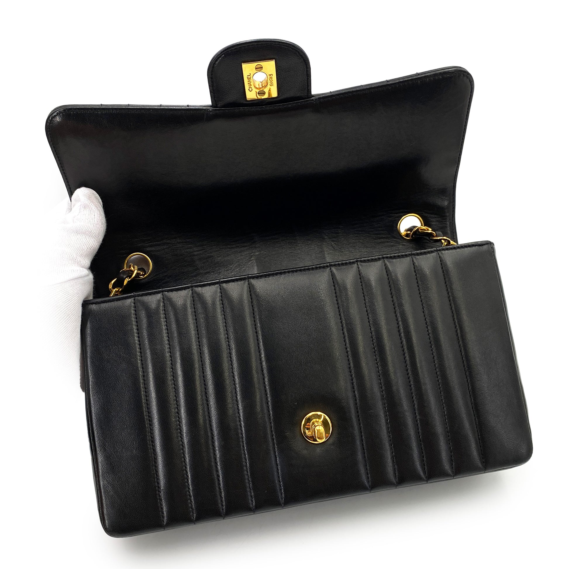 CHANEL VINTAGE MADEMOISELLE CHAIN SHOULDER BAG BLACK LAMB SKIN 90247992