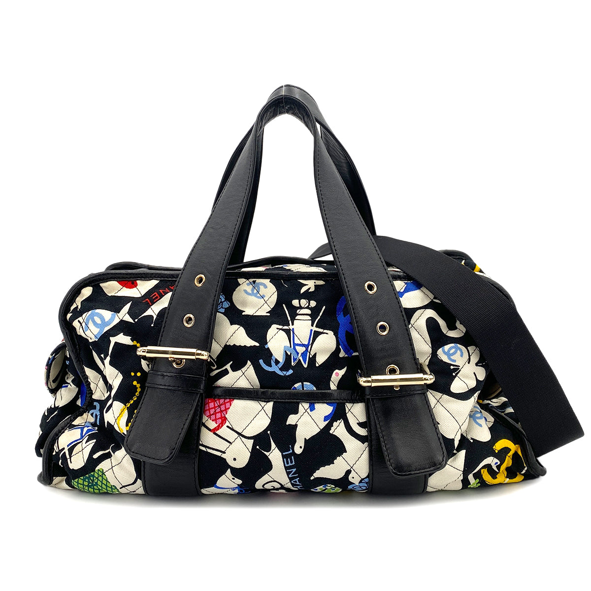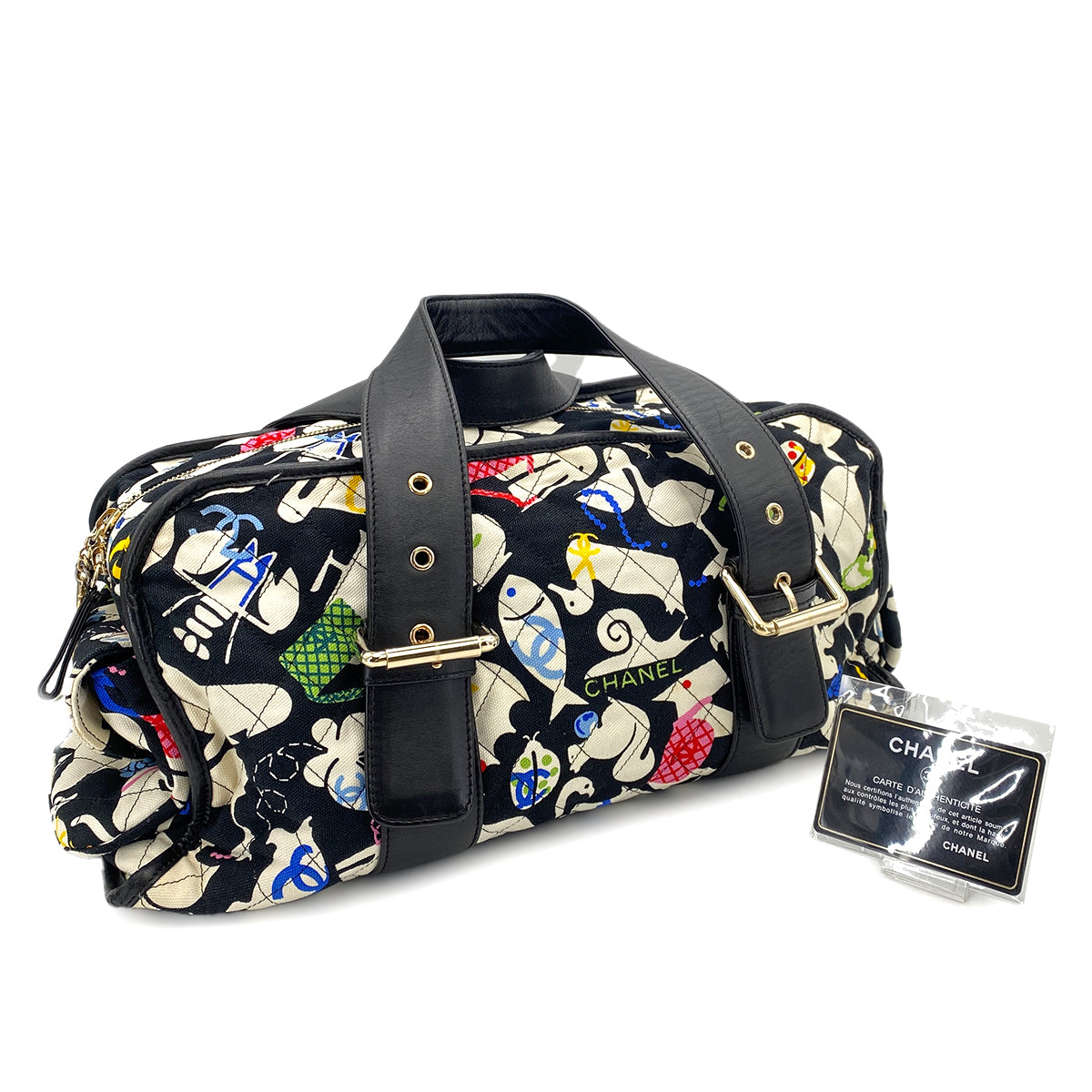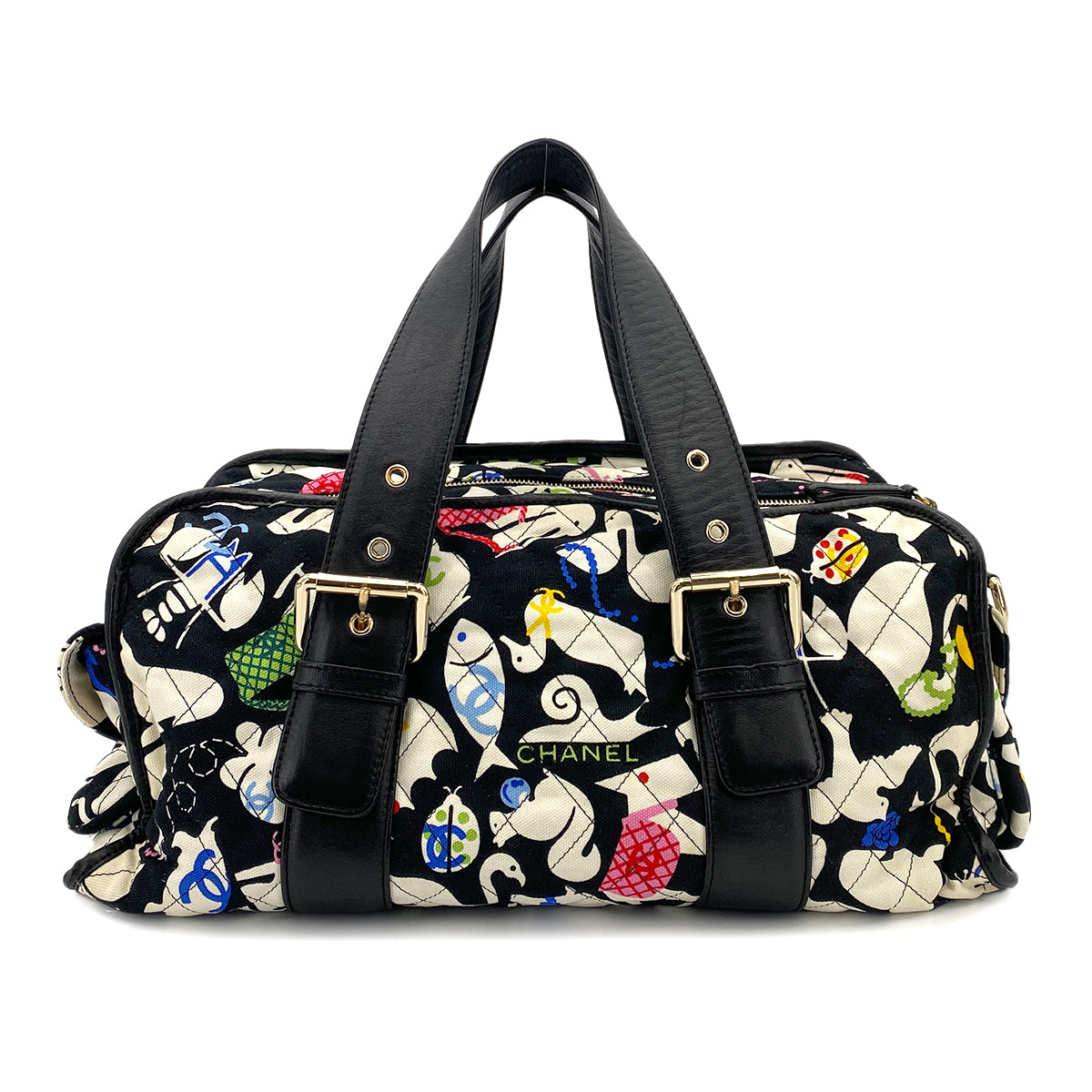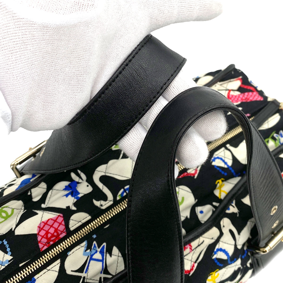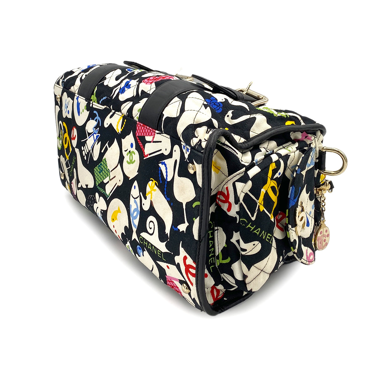CHANEL VINTAGE BABY ANIMAL BOSTON BAG MULTICOLOR CANVAS LEATHER 90248000