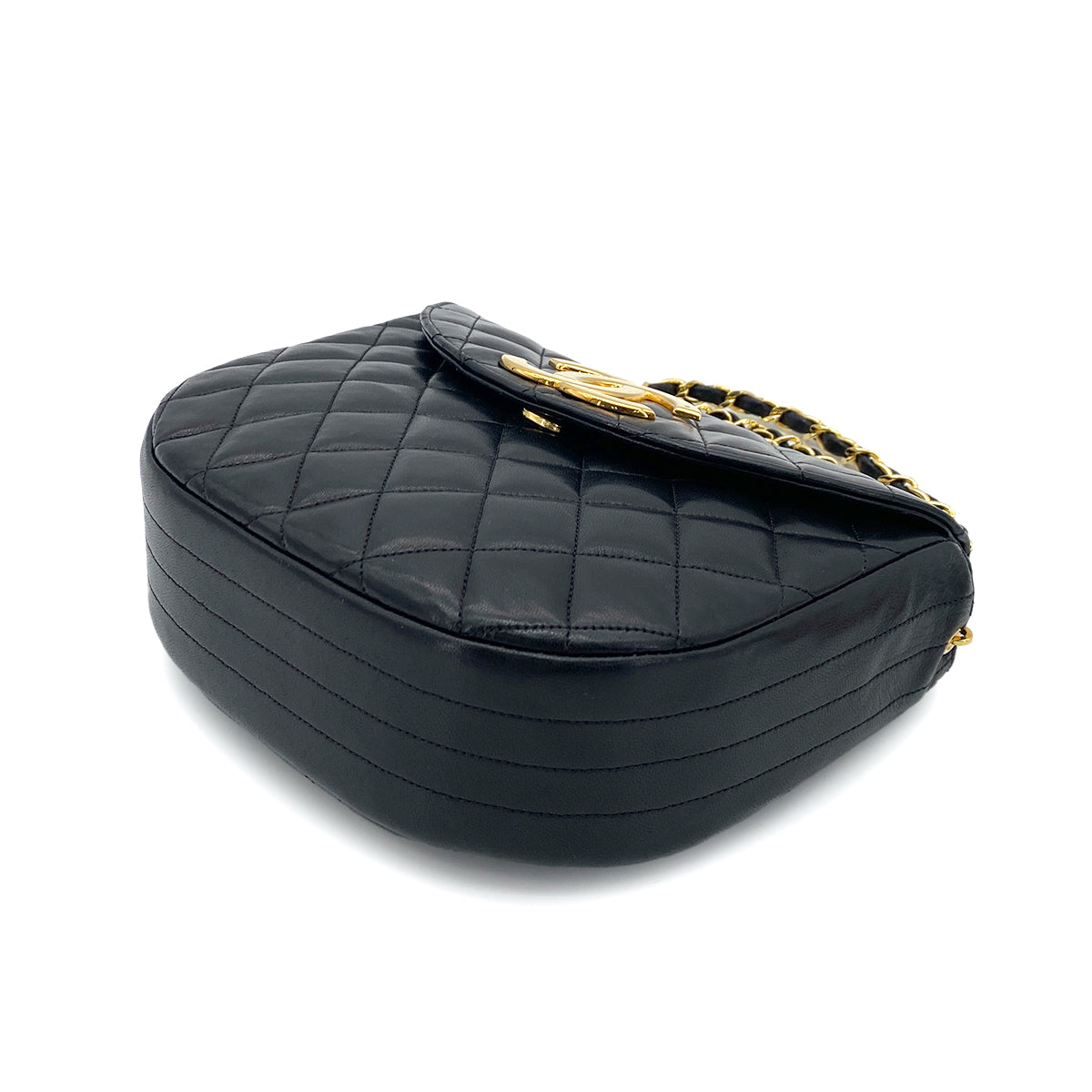 CHANEL VINTAGE BIG COCO HALF MOON CHAIN SHOULDER BAG BLACK LAMB SKIN 90248123