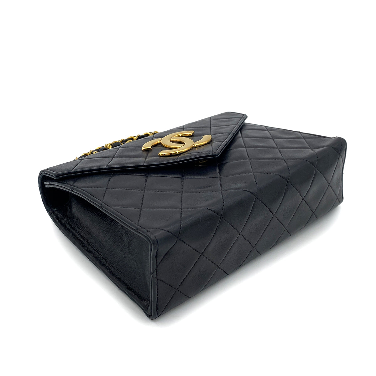 CHANEL VINTAGE MATELASSE BIG COCO CHAIN SHOULDER BAG BLACK LAMB SKIN 90248125