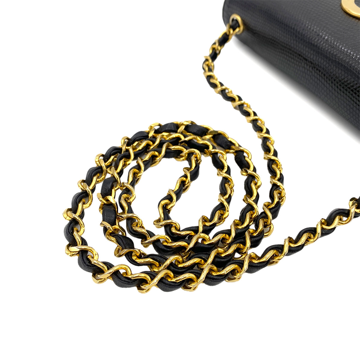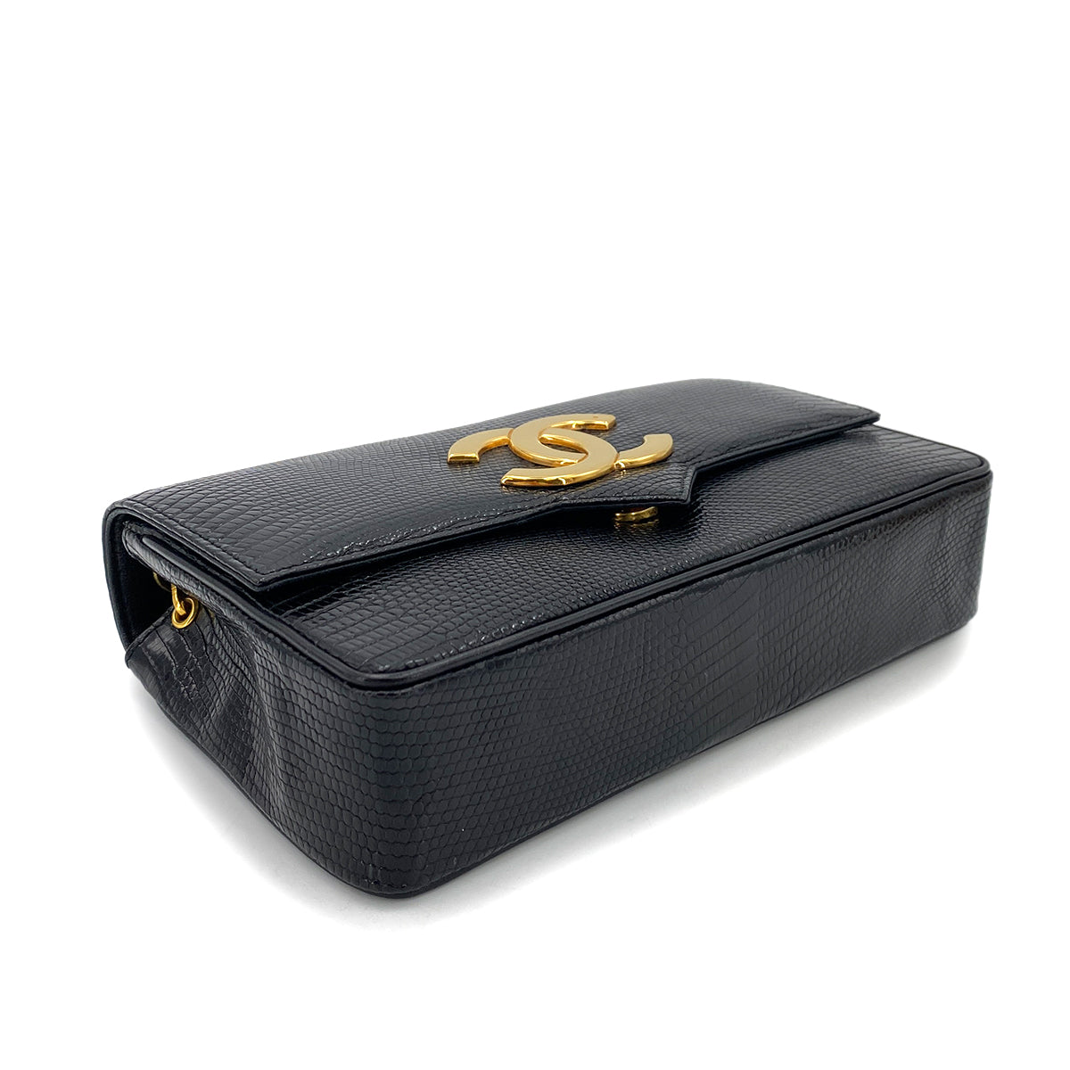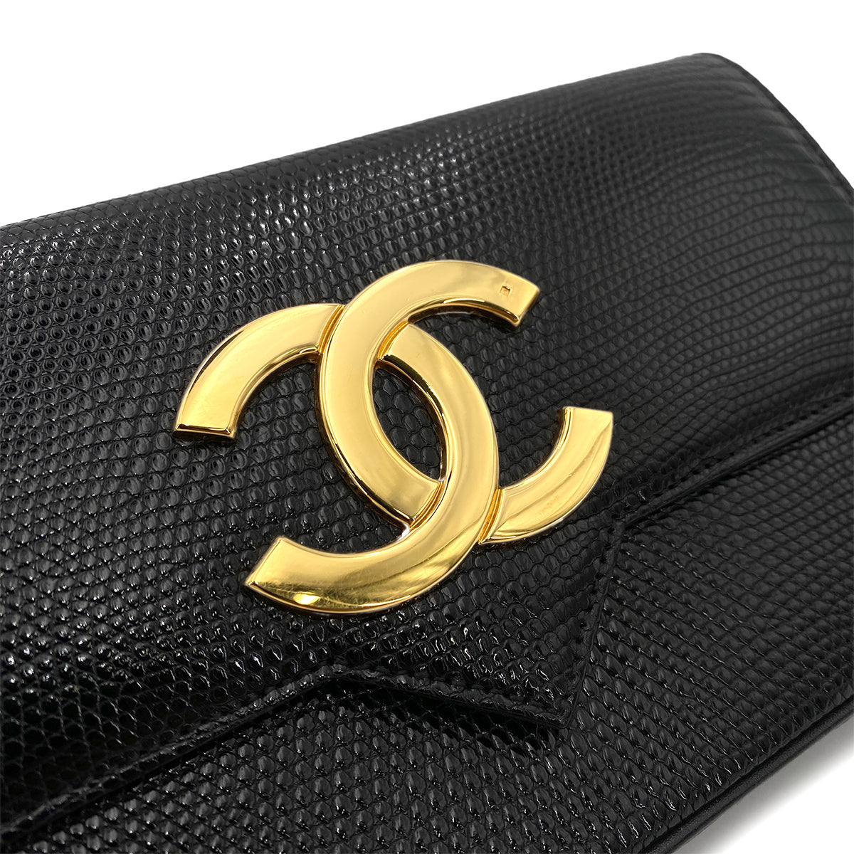 CHANEL VINTAGE BIG COCO CHAIN SHOULDER BAG BLACK LIZARD 90248130