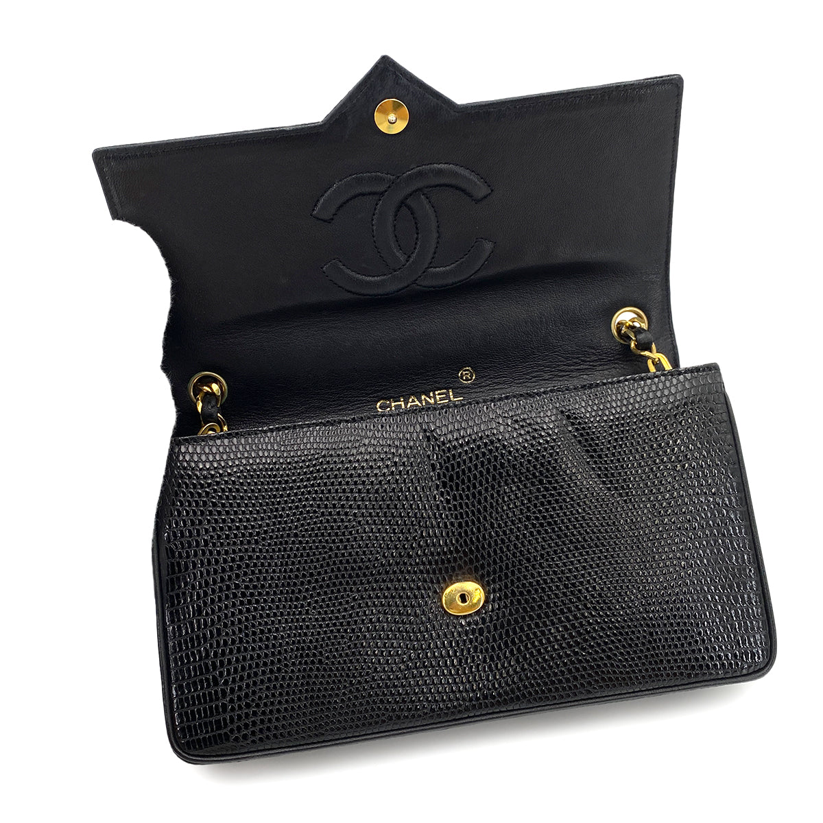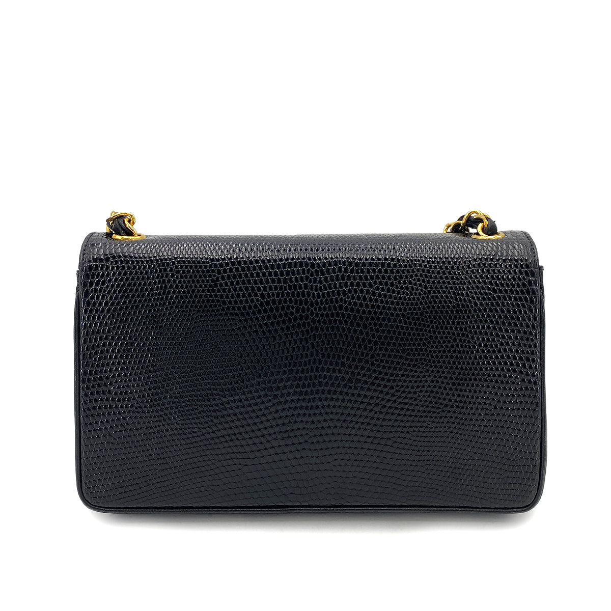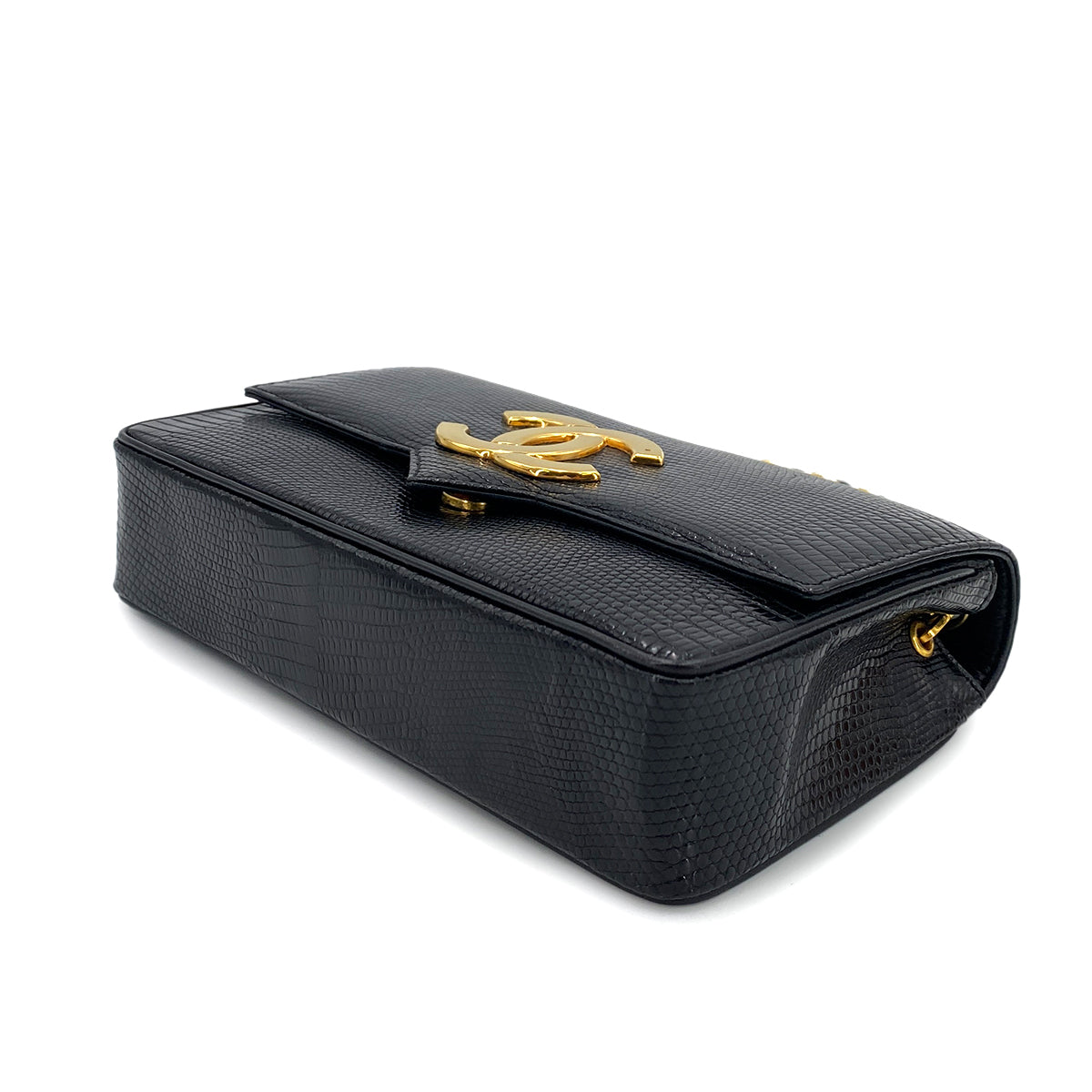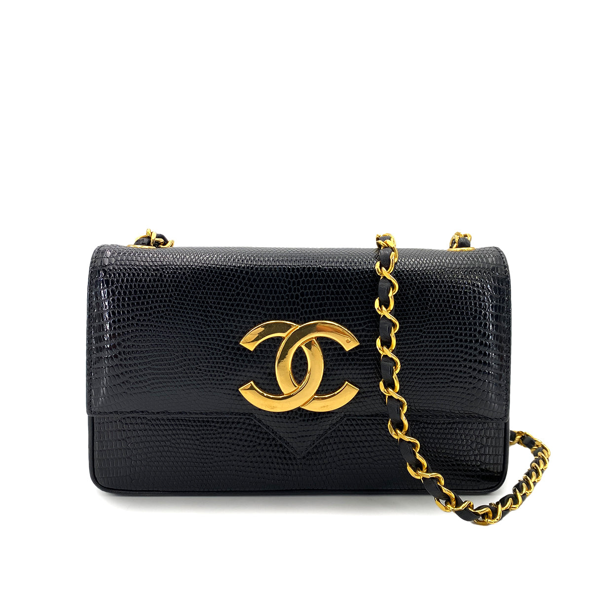 CHANEL VINTAGE BIG COCO CHAIN SHOULDER BAG BLACK LIZARD 90248130