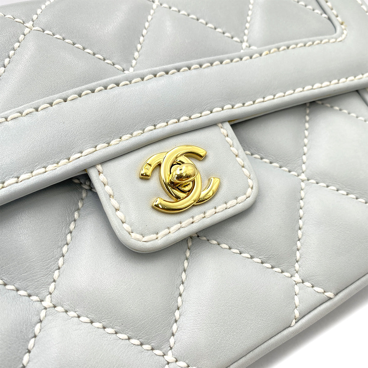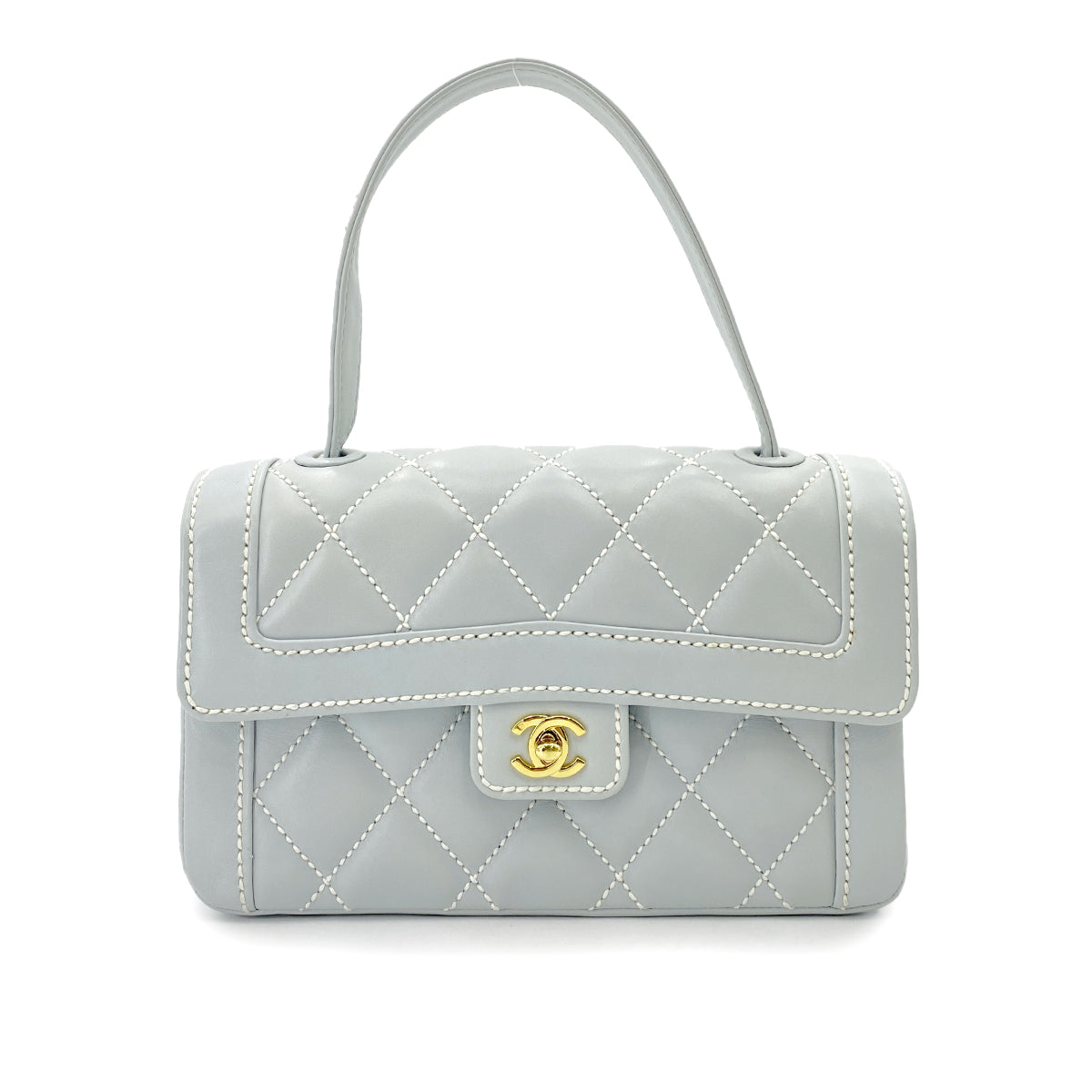 CHANEL VINTAGE WILD STITCH HAND BAG LIGHT BLUE LAMB SKIN 90248814